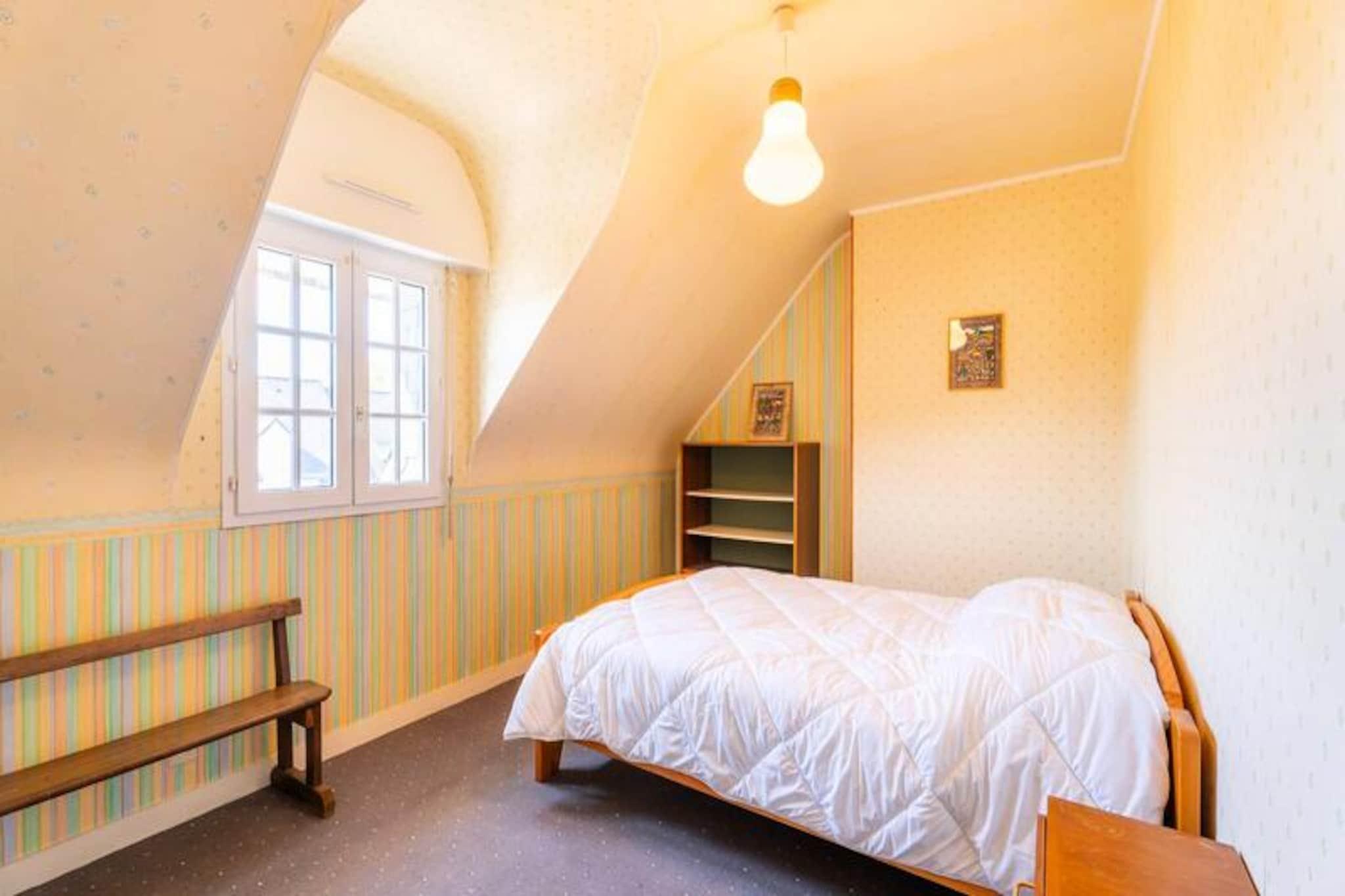 I den rolige boligenklave Clos de Kervégan, kun 1 km fra Carnacs charmerende bymidte og 2,5 km fra den fantastiske hovedstrand, tilbyder dette hus i neo-bretonsk stil et roligt tilflugtssted for op til 9 gæster. Omgivet af en lukket have er denne ejendom med 6 værelser perfekt til familier eller grupper, der søger komfort og afslapning i hjertet af Bretagne. Træd ind i et indbydende opholdsrum, hvor spisepladsen og den hyggelige stue med sofa, lænestole og tv åbner ud til en solbeskinnet sydvendt terrasse. Terrassen strækker sig problemfrit ind i den private have, komplet med havemøbler til udendørs spisning eller rolige morgener med en bog. Det åbne køkken er fuldt udstyret med moderne apparater, herunder en 4-brænder keramisk kogeplade, ovn, mikrobølgeovn og køleskab/fryser, hvilket sikrer, at du har alt, hvad du behøver for at tilberede lækre måltider. Stueetagen har også et soveværelse med to enkeltsenge, et badeværelse og et separat toilet. Ovenpå finder du tre rummelige soveværelser med dobbeltsenge og et fjerde soveværelse med en enkeltseng, alle omhyggeligt designet til afslappende nætter. Et brusebad og et ekstra toilet fuldender den øverste etage. Ejendommen inkluderer også en garage med vaskemaskine og privat parkering i gården, hvilket sikrer bekvemmelighed under hele dit ophold. Udforsk Carnacs rige historie og naturlige skønhed, kendt for sine ikoniske megalitiske linjer, sandstrande og pulserende lokale markeder. Uanset om du slentrer gennem byens centrum, dyrker vandsport langs kysten eller blot slapper af i den fredelige have, tilbyder dette hjem en ideel base for at skabe uforglemmelige minder i Bretagne.