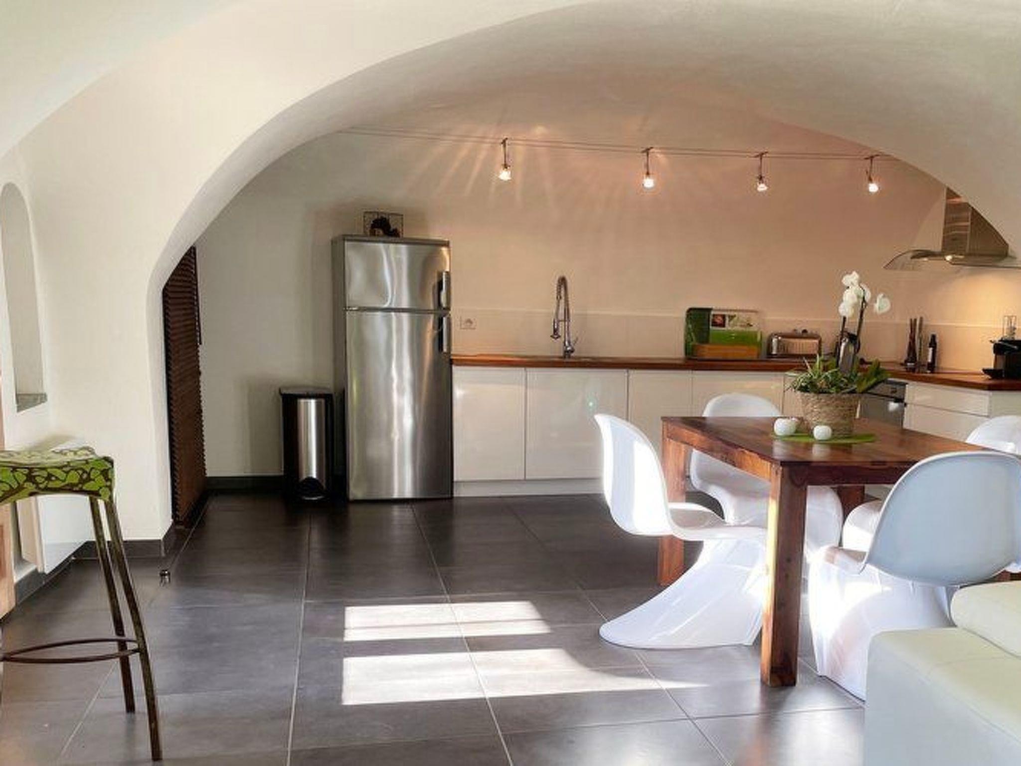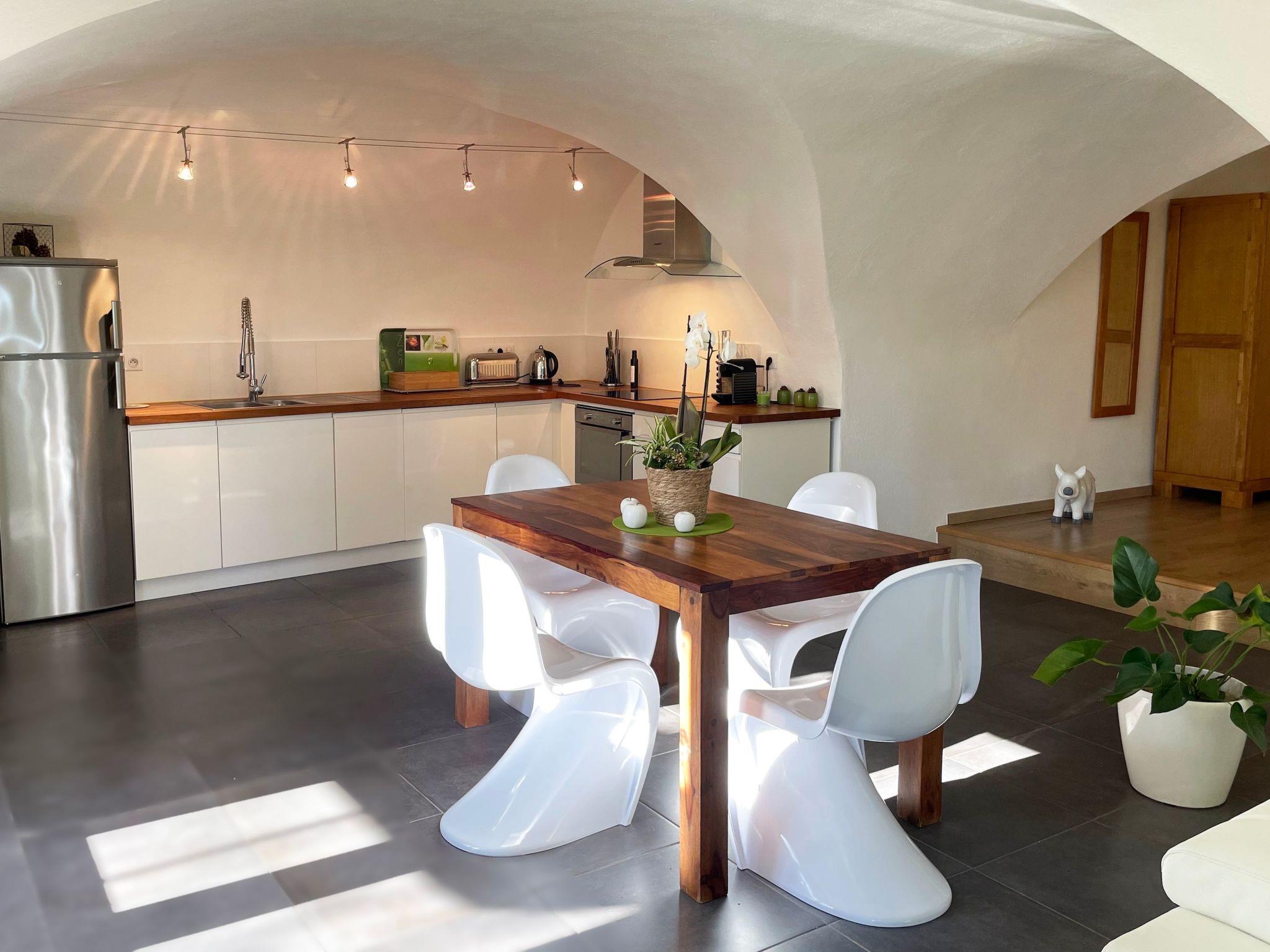 In the heavenly setting of Domaine de Monteils, a former priory that has been completely renovated, this 105 m2 loft-style flat has a lovely view over the estate's grounds. The estate and its grounds are located in Carnas, between Nîmes and Montpellier near Sommières, surrounded by vineyards in a heavenly setting.