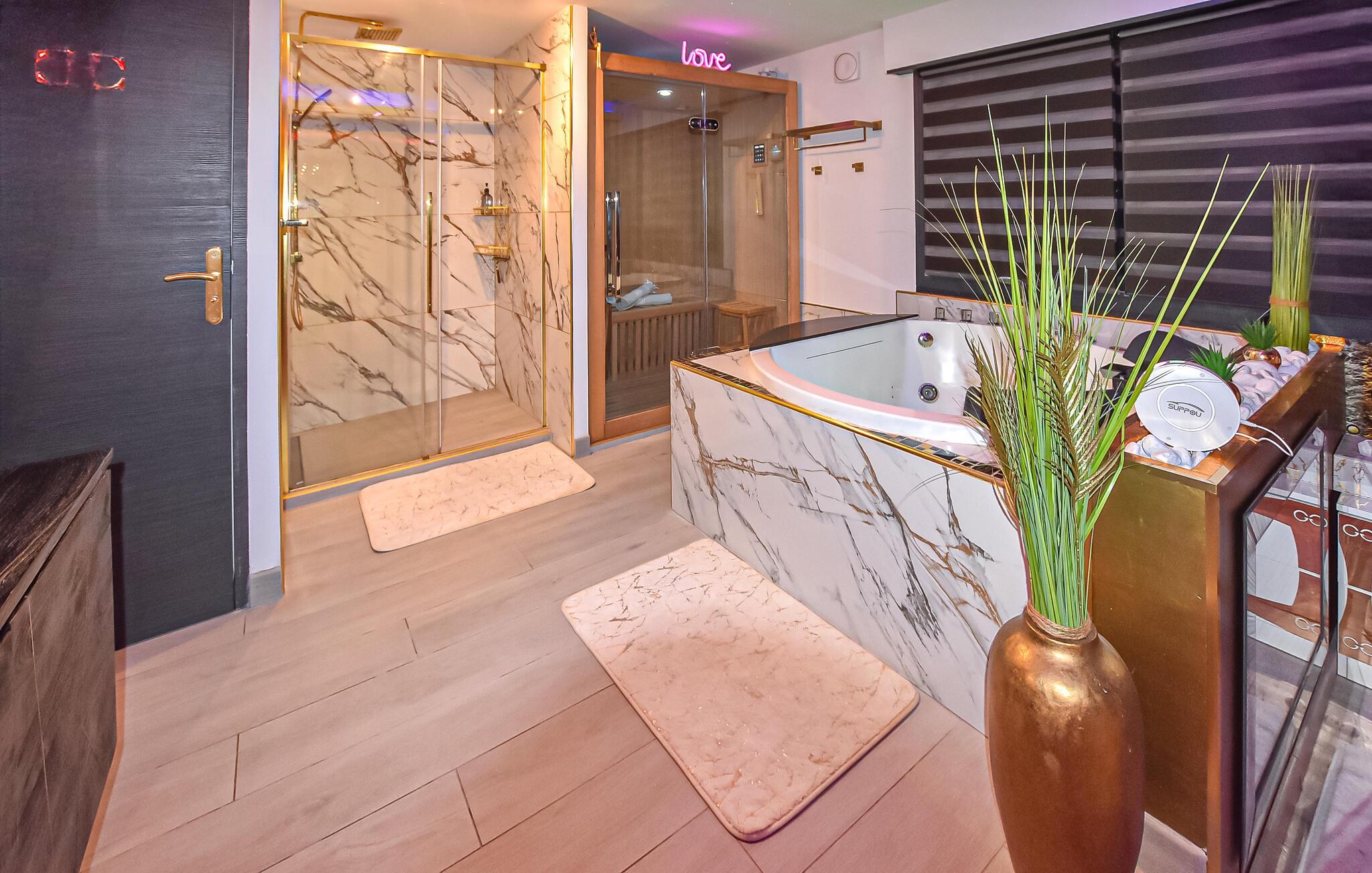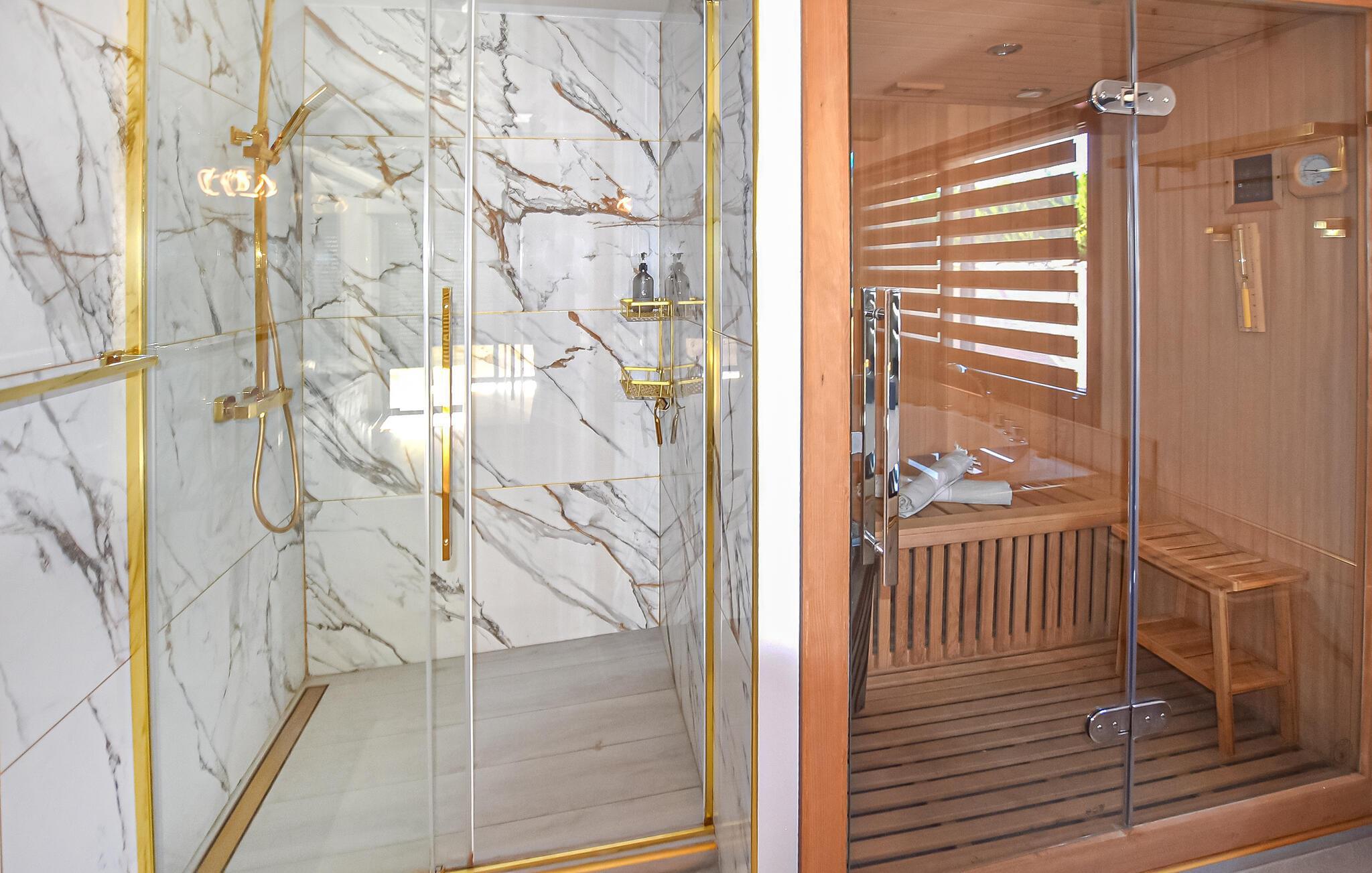 Nyd en romantisk ferie i dette komfortable feriehus med pool, spabad og sauna.