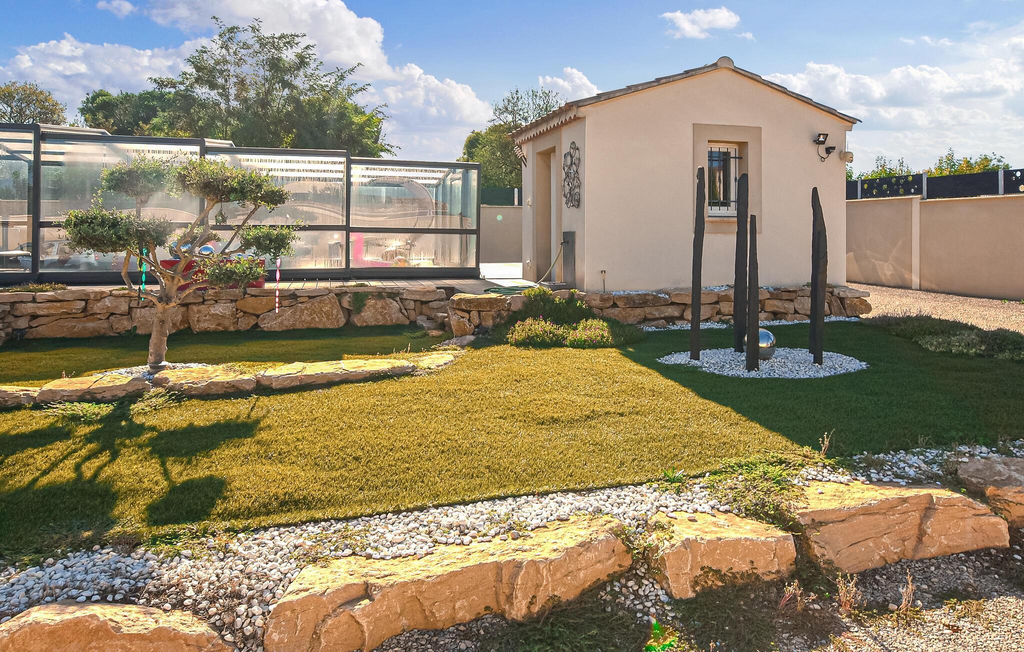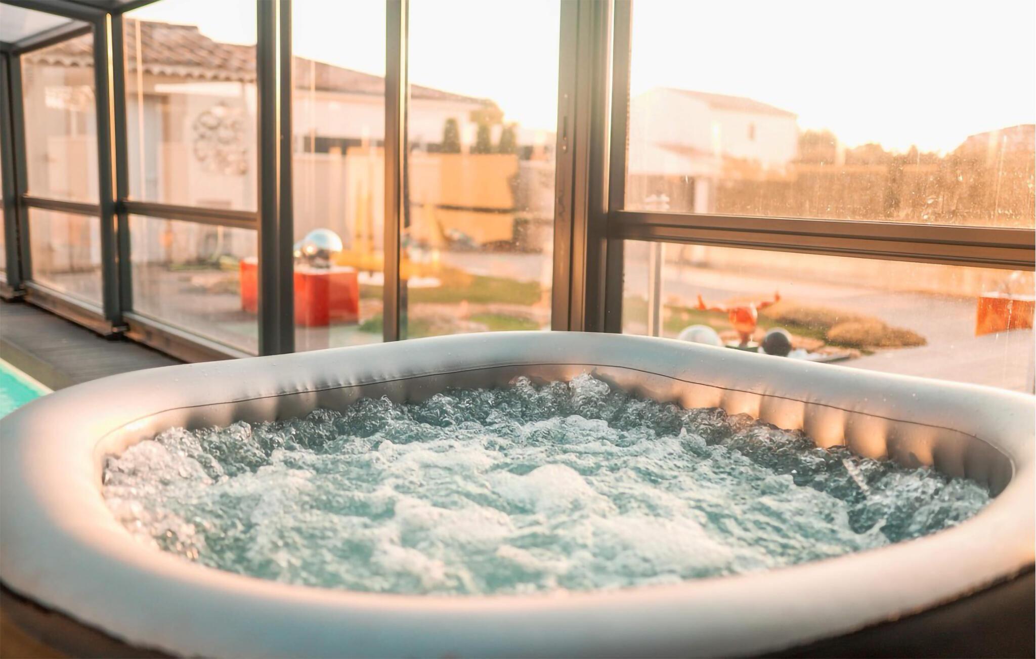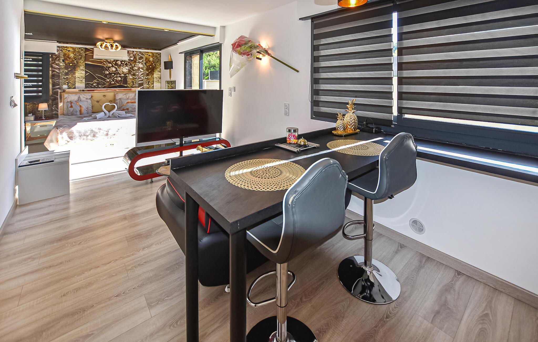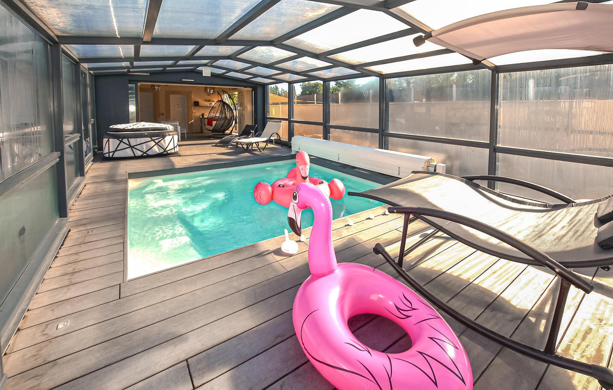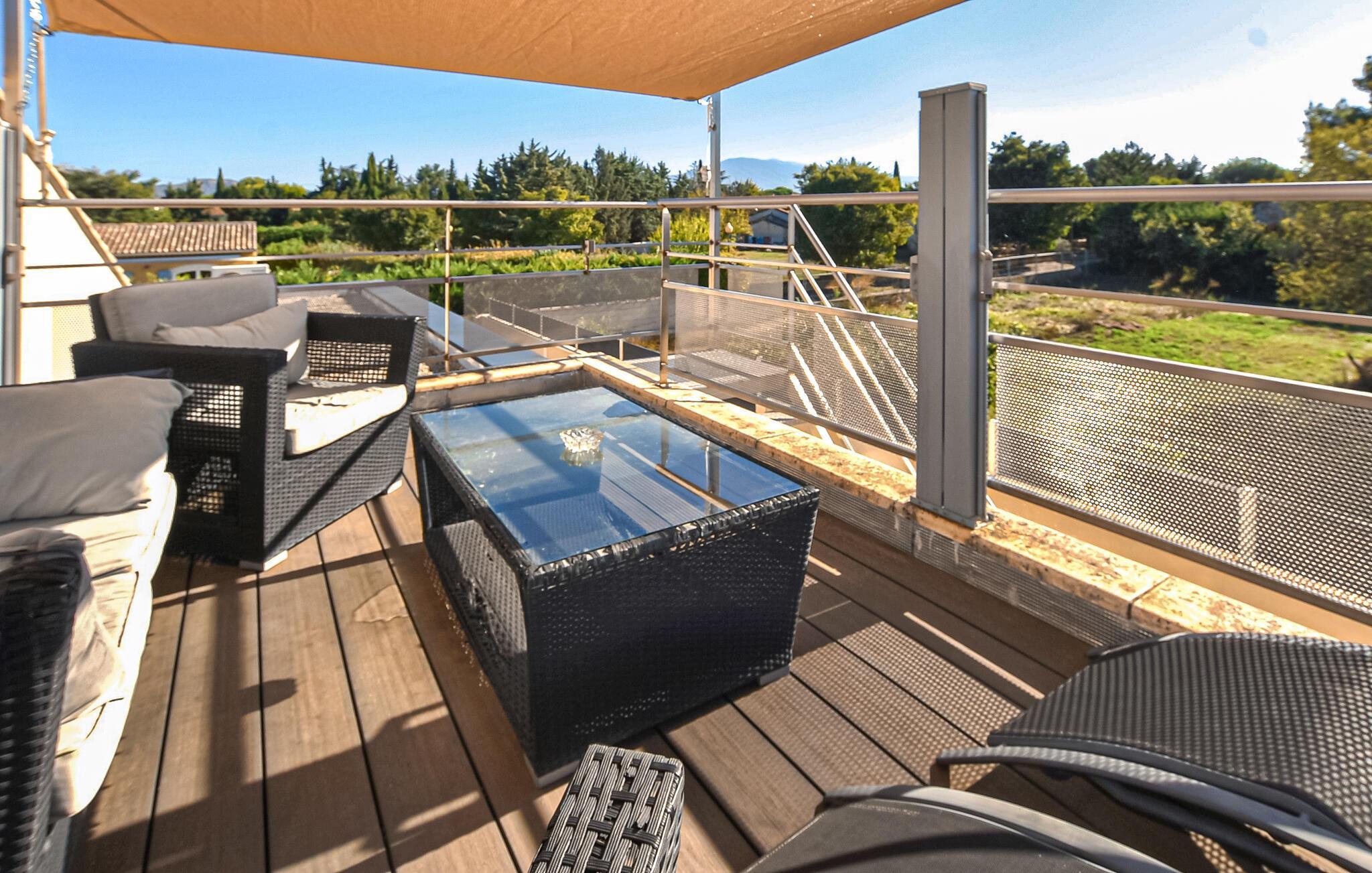 I kan bruge jeres private pool indendørs eller udendørs, afhængigt af vejret. Slap af på de behagelige liggestole og lad udsigten over Mont Ventoux fortrylle jer med et glas vin på tagterrassen.