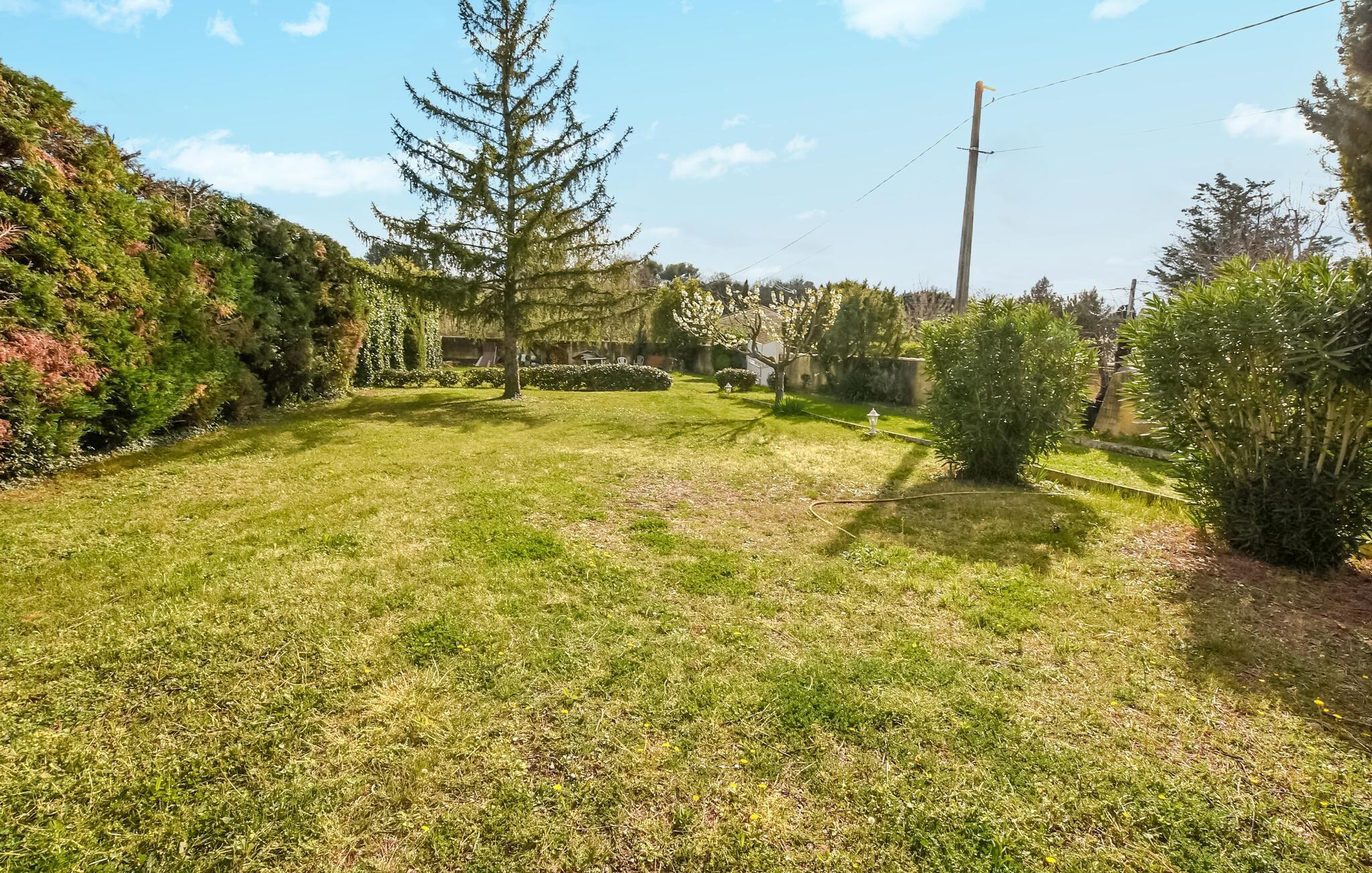 Huset er omgivet af en stor og fuldt indhegnet grund med træer og buske, hvor I kan finde sol og skygge efter behov og lade børnene gå på opdagelse. På en smuk sommeraften er der intet, der slår et godt glas vin under den sene sol, mens I lægger planer for de kommende dage.