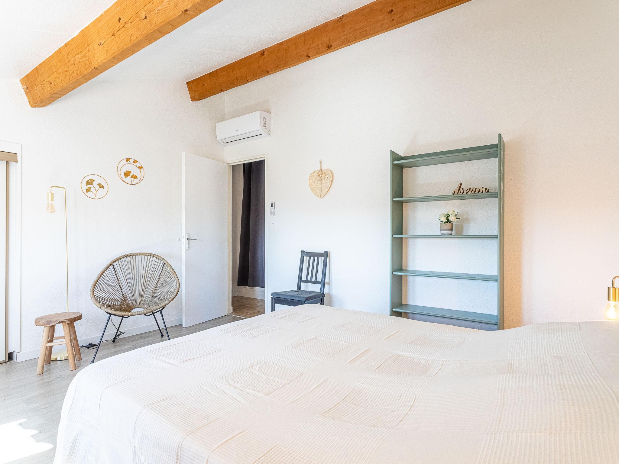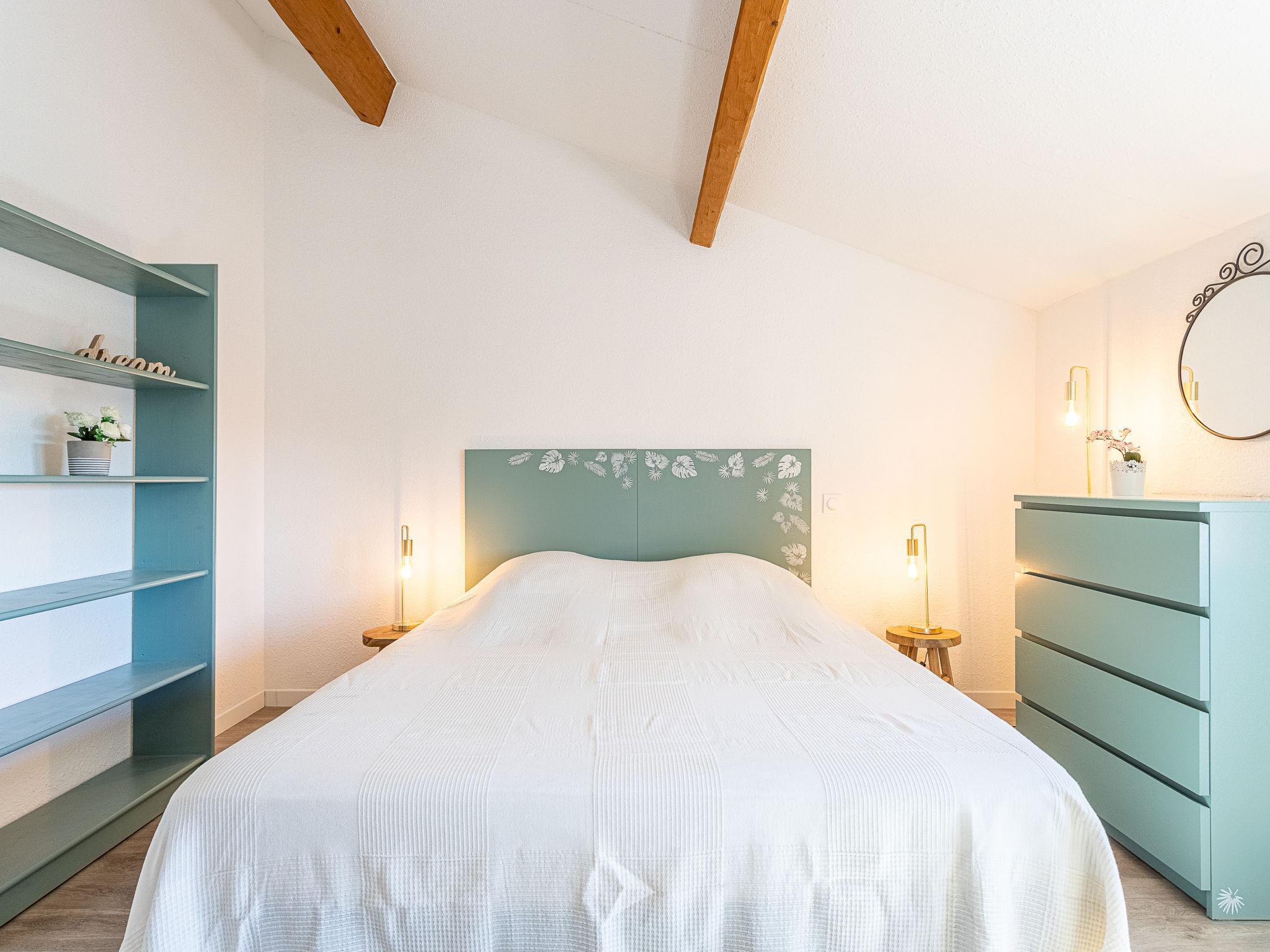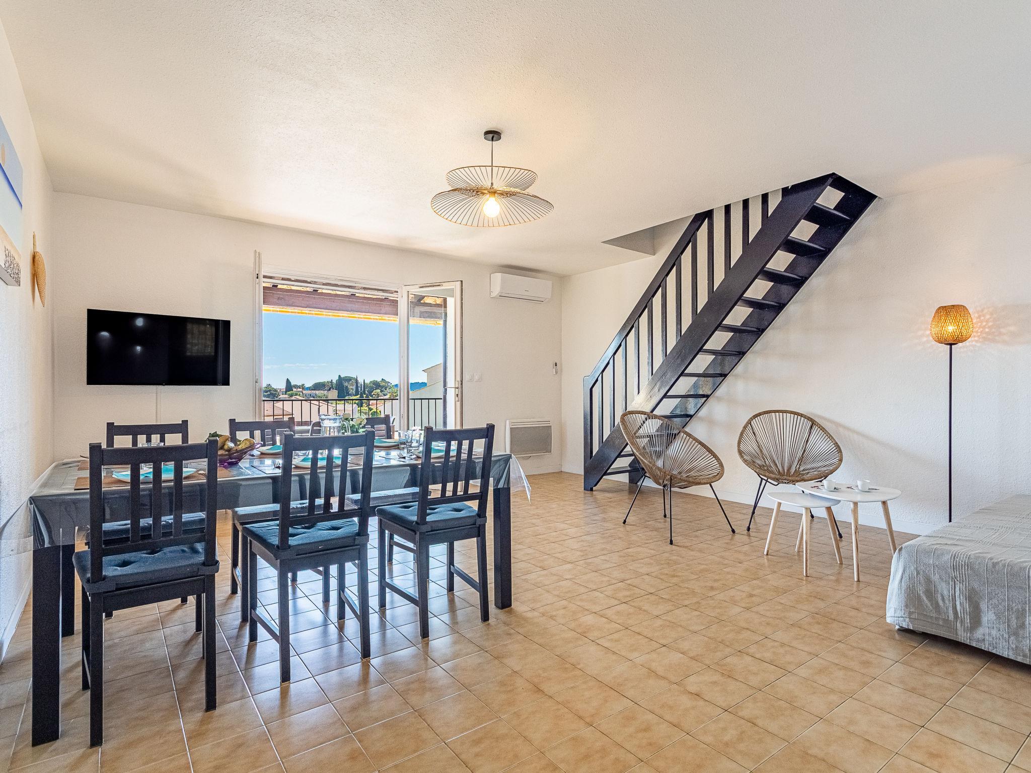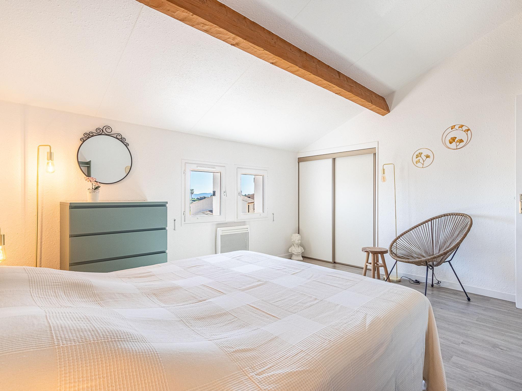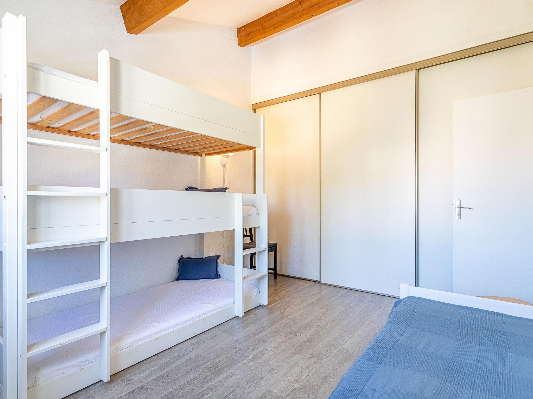 3-room apartment 76 m2 on 2 levels on 1st floor. Spacious and bright, comfortable and beautiful furnishings: living/dining room with TV (flat screen), air conditioning. Exit to the terrace. Kitchen (4 ceramic glass hob hotplates, toaster, kettle, microwave, freezer, electric coffee machine). Upper floor: 1 room, south facing position with 1 french bed (160 cm, length 200 cm), air conditioning. 1 children's room with 1 bed (90 cm, length 190 cm), 1 x 3 bunk beds (90 cm, length 190 cm). Shower. Terrace 10 m2, south facing position. Terrace furniture. Very beautiful view of the sea. Facilities: washing machine, safe, iron, hair dryer. Internet (WiFi, free). Parking. Please note: suitable for families. Non-smokers only. TV only FR. Smoke alarm, no lift. Offer by a private individual according to Art. 155, IV of CGI.
