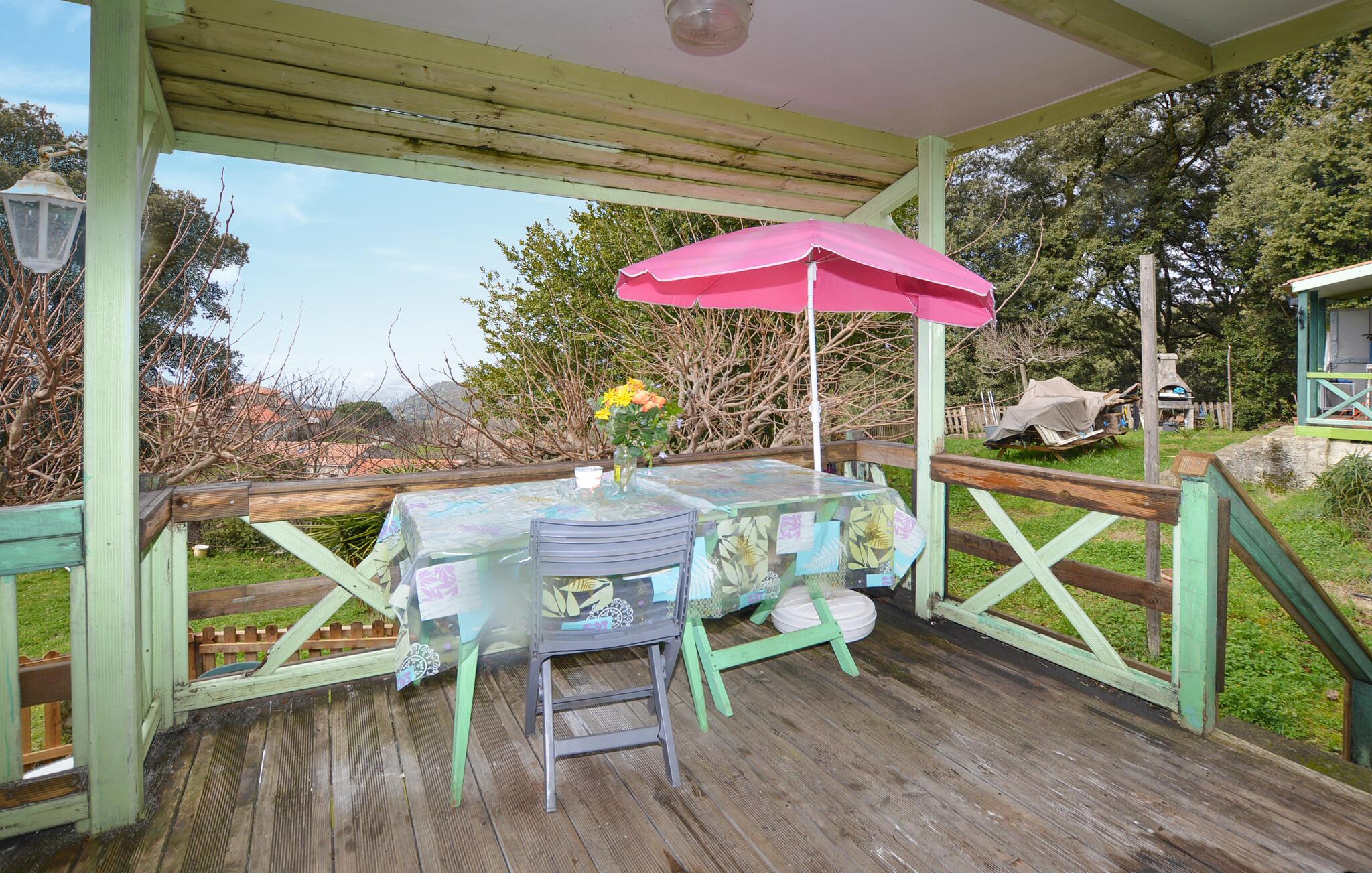 Velkommen til dette venlige og velindrettede feriehus, som tilbyder hele familien et hyggeligt hjem på Korsika. Tilbered enkle, friske måltider i det kompakte køkken og tag plads ved det indbydende spisebord. Planlæg jeres aktiviteter sammen her eller afslut dagen med en spilleaften.