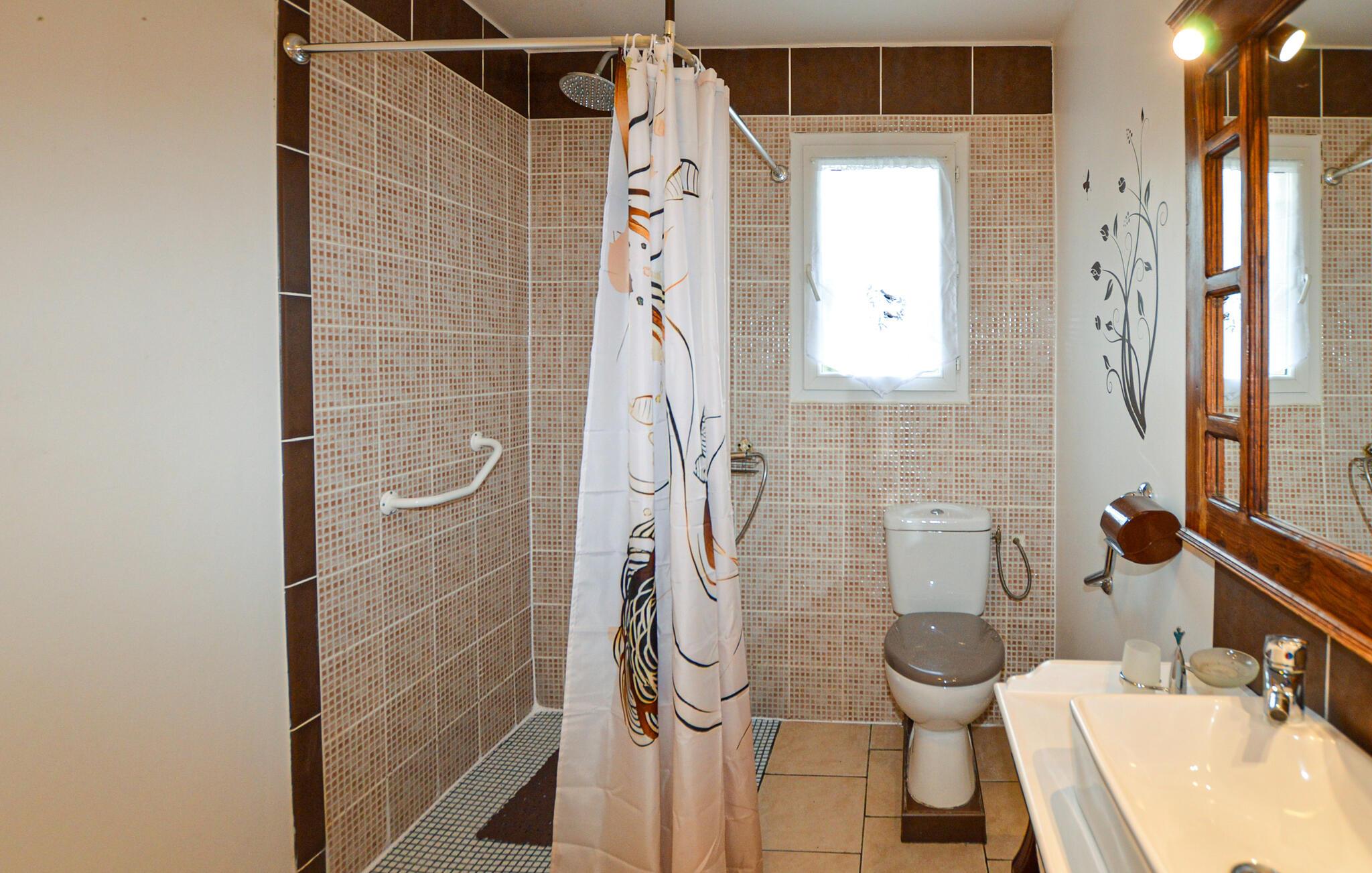 Tilbring en ubekymret pause i dette roligt beliggende hus på Korsika, kun få minutters kørsel fra Bastia Lufthavn. Det dobbelthus tilbyder masser af privatliv og er ideelt for par eller små familier. Slap af i den enkelt designede opholdsstue med praktiske møbler, en komfortabel sofa og et tv. Tilbered dagens måltider i det åbne køkken med den store arbejdsplads. Nyd udsigten over de grønne områder gennem vinduerne, eller brug den lyse spiseplads til fælles morgenmad.
