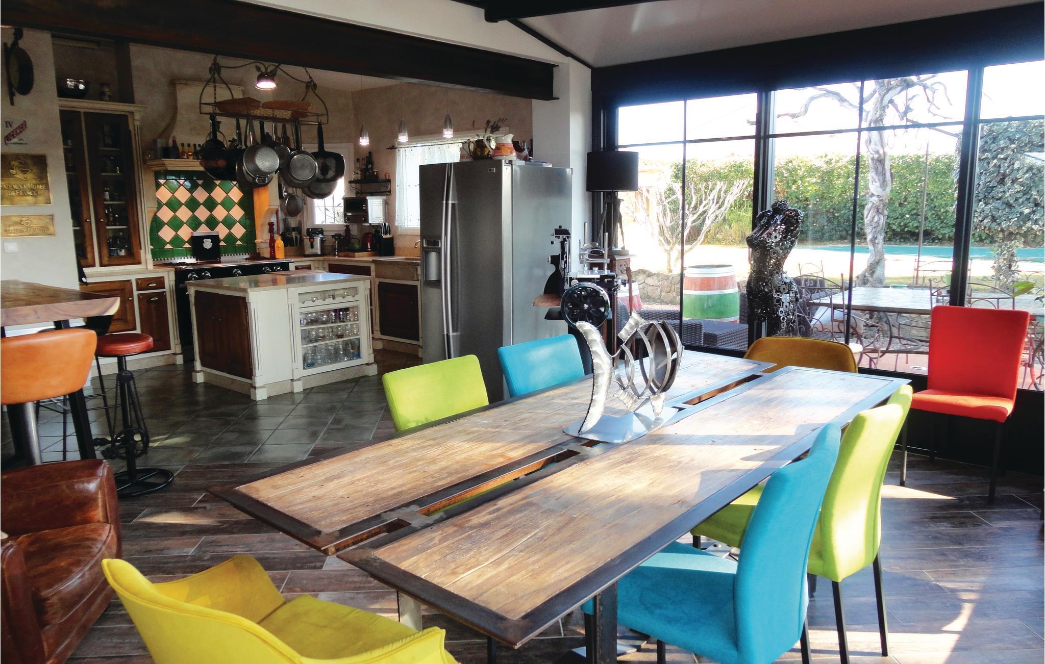 Charmerende og rummelig ferievilla med privat pool i Caux, 34 km fra middelhavets strande. Huset ligger på en stor indhegnet grund og ligger kun 24 km fra de skønne strande ved Etang de Thau og 8 km fra Pezenas. Der er 30 km til Salagousøen, hvor I kan dyrke mange former for vandsport eller bare tage madkurven med og nyde at spise den i smukke omgivelser. Medbring godt fodtøj og gå skønne ture med panoramaudsigt på Cirque de Mourèze eller besøg de indbydende fiskerlejer som Mèze, Bouzigues eller Marseillan med gastronomiske specialiteter som fisk og skaldyr og andre lækkerier. Udflugter kan være til regionens mange slotte og klostre samt til vinproducenter hvor I kan smage på Grand Cru-vine. Denne region vil fortrylle jer.