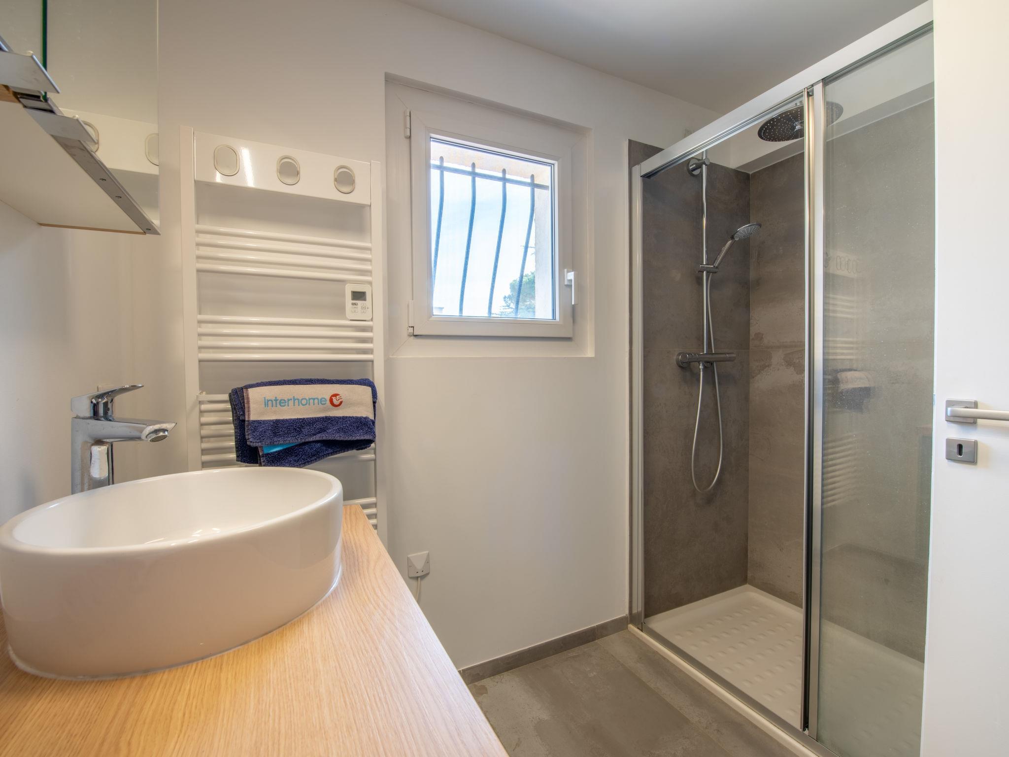 2-room apartment 55 m2, on the ground floor, south facing position. Renovated in 2023, comfortable and modern furnishings: living room with 1 double sofabed (140 cm, length 200 cm), TV (flat screen). Exit to the terrace. 1 room with Dressing room with 1 french bed (160 cm, length 200 cm). Exit to the terrace. Kitchen-/living room (oven, dishwasher, 4 gas rings, toaster, kettle, microwave, freezer, electric coffee machine, Capsules for coffee machine (Dolce Gusto) extra). Shower, sep. WC. Electric heating, air-conditioning, boiler (250 litres). Terrace 25 m2, south facing position, large garden. Terrace furniture, deck chairs (4). Beautiful view of the swimming pool and the garden. Facilities: washing machine, iron, hair dryer. Internet (WiFi, free). Parking (fenced 3 cars). Please note: TV only FR. Smoke alarm. Offer by a private individual according to Art. 155, IV of CGI.