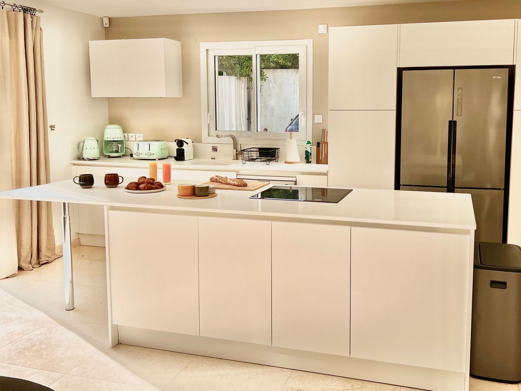 Outside, you can relax in the sun or in the shade of the trees in the private garden. The fully-equipped terrace and private swimming pool invite you to relax and enjoy the water without leaving the comfort of this house. Ideal for families with a little four-legged friend, this home accepts small pets and guarantees their safety with a fully fenced garden.