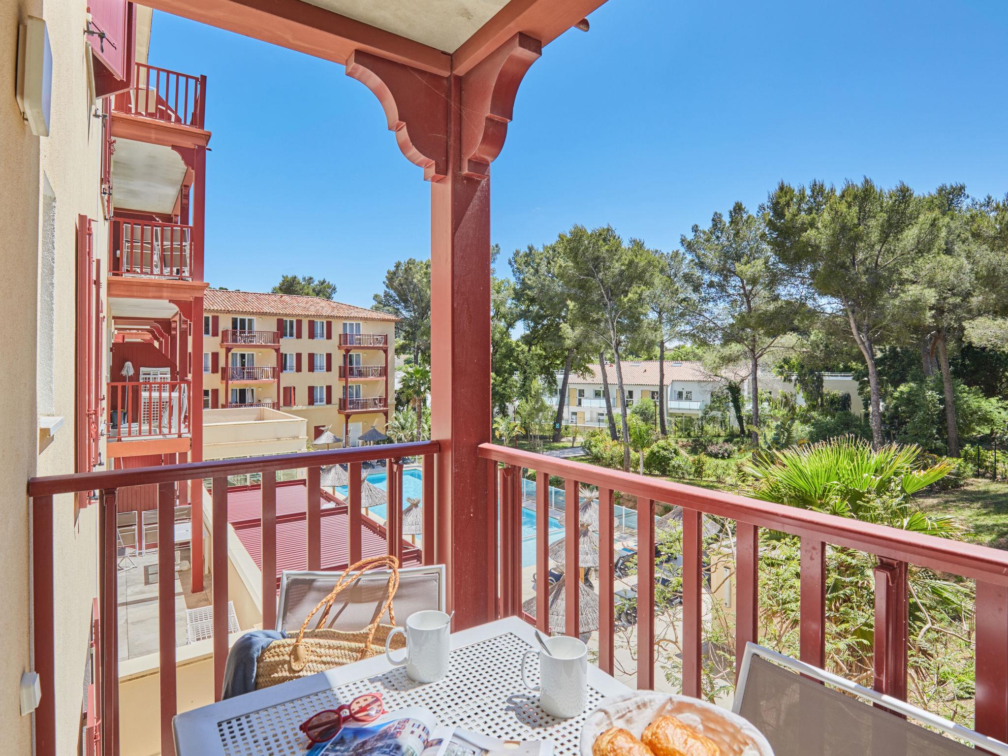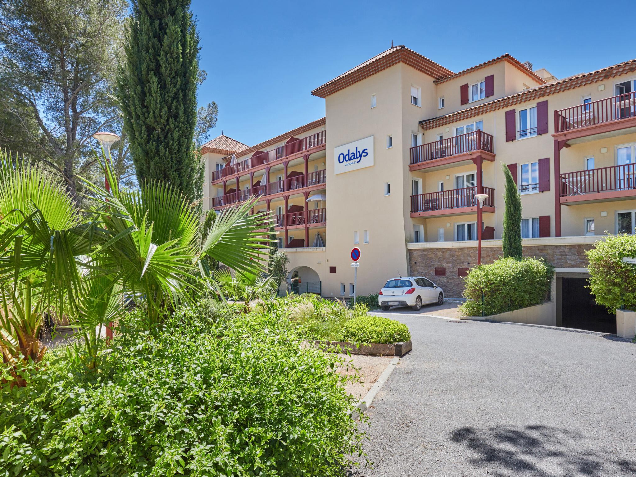 Resort "Les Canissons", built in 2019. 95 apartments in the residence. 800 m from the centre of Cavalaire, 20 km from the centre of St. Tropez, 59 km from the centre of Toulon, 700 m from the sea. For shared use: property (fenced), swimming pool heated (7 x 20 m, depth 140 cm, seasonal availability: 15.Apr. - 15.Oct.). Children's pool, outdoor shower, boccia. In the complex: reception, breakfast room, sauna, fitness room, massage (extra). Steam room, washing machine, tumble dryer (for shared use, extra). Breakfast (extra). Parking (limited number of spaces), communal covered parking. Shop 300 m, restaurant, sandy beach "Bonporteau" 700 m. Please note: residence with electric gates. The photograph shows a typical example. The holiday properties may differ in living space, floorplan, equipment and furnishing.