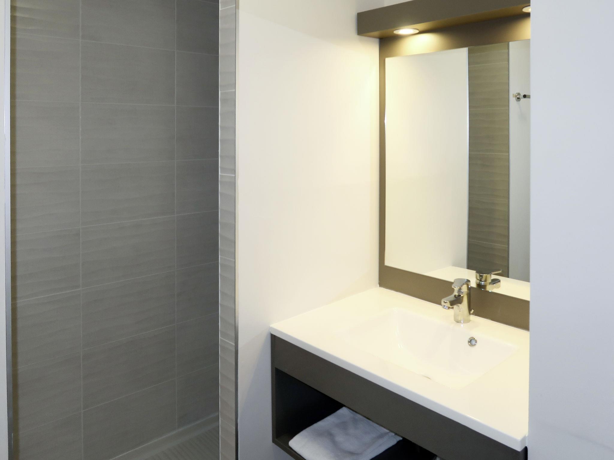 "Résidence Odalys Collection Les Canisson", 2-room apartment 36 m2. Bright, modern furnishings: living/sleeping room with 1 double sofabed, dining table and satellite TV. Exit to the balcony, to the terrace. 1 room with 2 sleeping facilities (80 cm, length 190 cm). Alcove with 1 x 2 bunk beds. Kitchenette (dishwasher, 4 ceramic glass hob hotplates, toaster, kettle, electric coffee machine, combination microwave). Shower, sep. WC. Electric heating, air-conditioning. Small balcony or small terrace. Terrace furniture, balcony furniture. Facilities: children's high chair, baby cot (extra). Internet (WiFi, free). Please note: non-smokers only. Maximum 1 pet/ dog allowed. Smoke alarm. Instead of an enclosed bedroom, some sleeping areas are located in an open-plan area (gallery, alcove, etc.).
