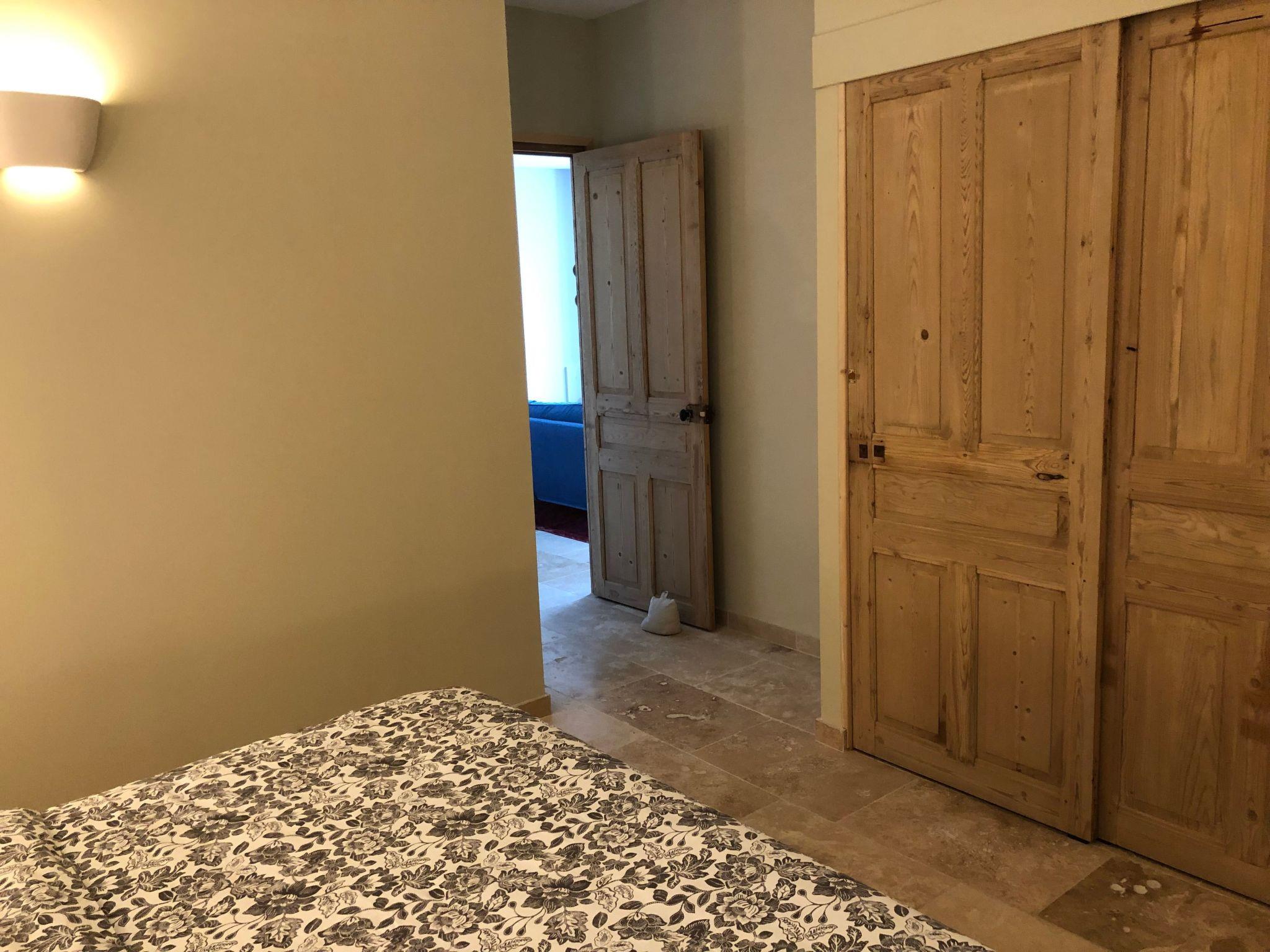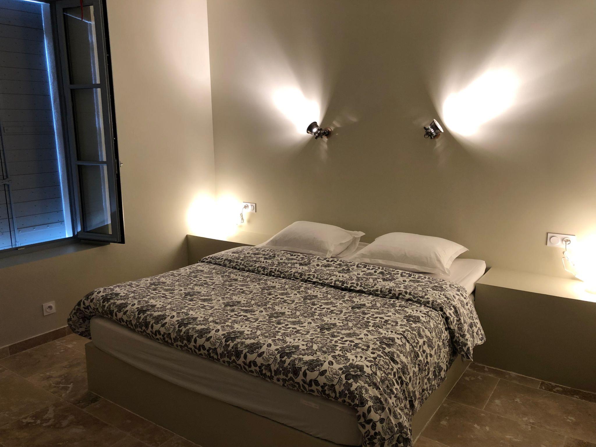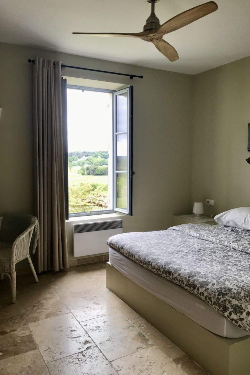 The gîte was thoroughly renovated in 2021, it has a cosy living room with wood burner & air conditioning and an open kitchen equipped with an induction hob, oven, fridge/freezer, dishwasher, nespresso machine and of course plates/cutlery/glasses etc. It has a spacious bedroom with a king-size bed (180×200) and two wardrobes, an en-suite bathroom with spacious walk-in shower, two sinks and a separate toilet.