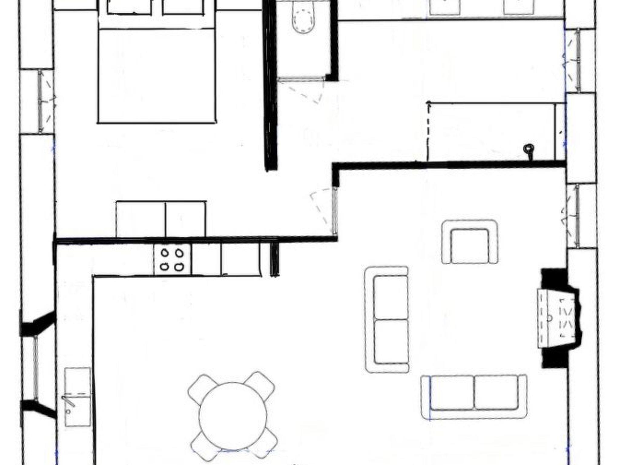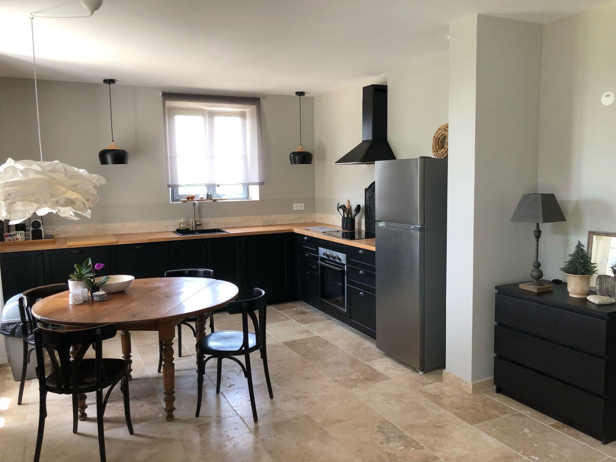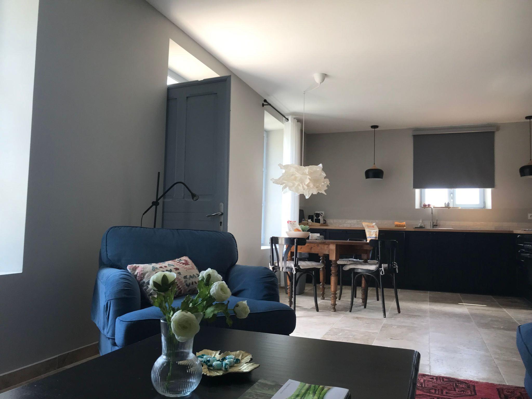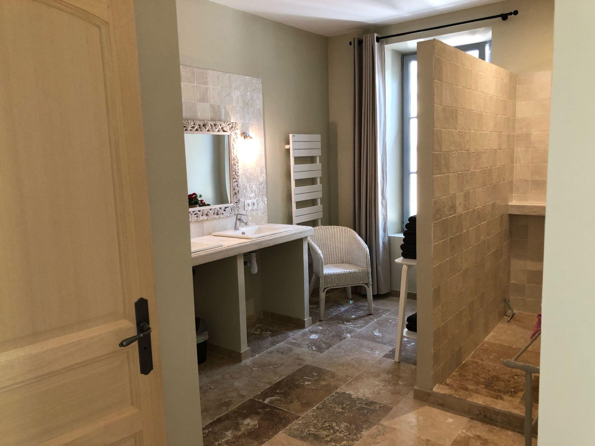The gîte was thoroughly renovated in 2021, it has a cosy living room with wood burner & air conditioning and an open kitchen equipped with an induction hob, oven, fridge/freezer, dishwasher, nespresso machine and of course plates/cutlery/glasses etc. It has a spacious bedroom with a king-size bed (180×200) and two wardrobes, an en-suite bathroom with spacious walk-in shower, two sinks and a separate toilet.