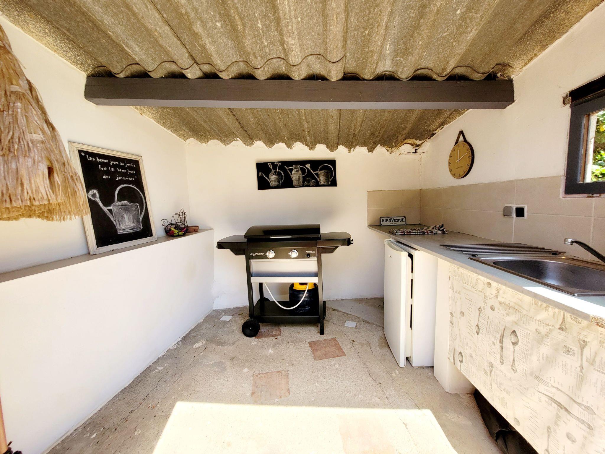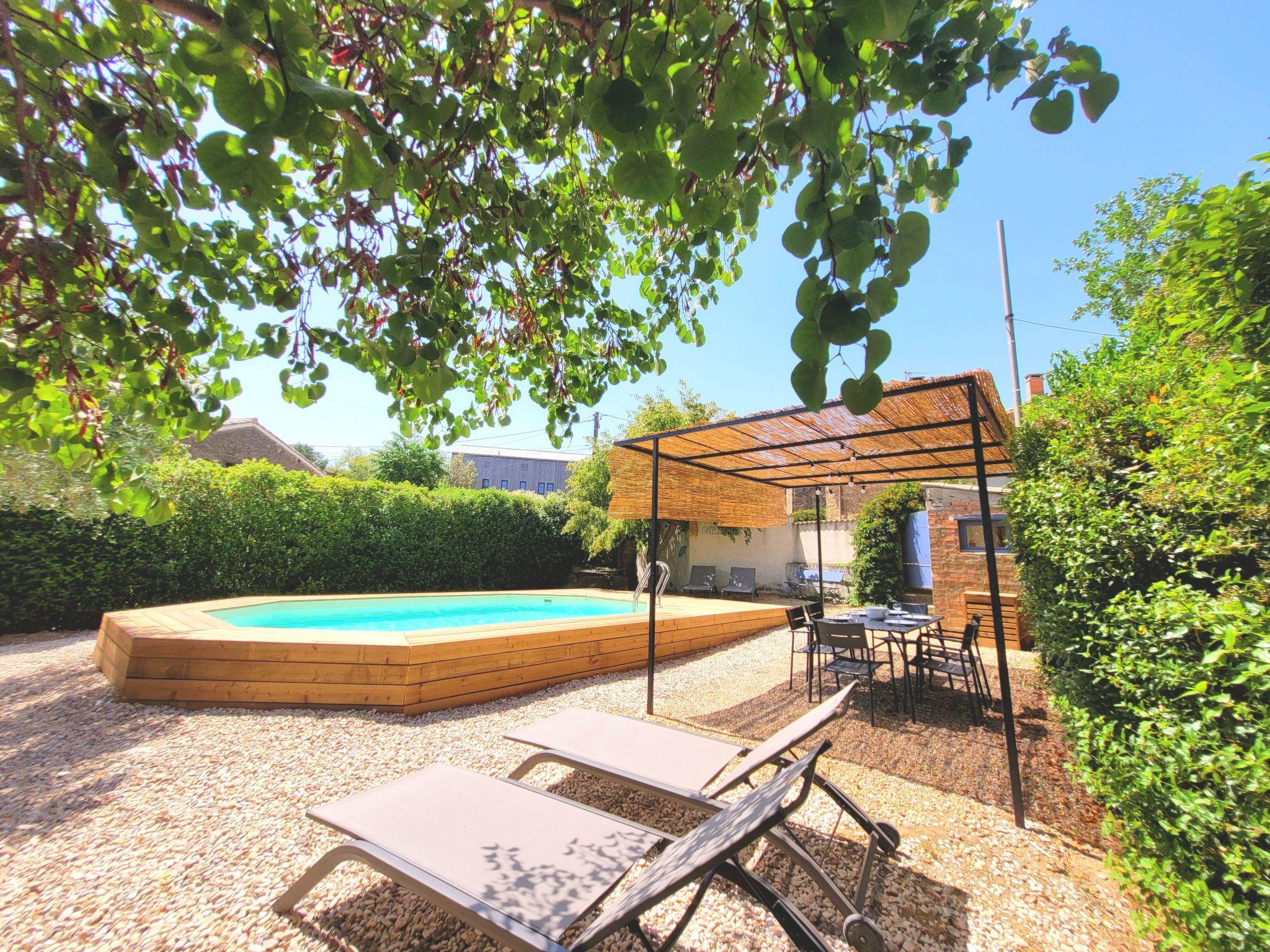 The garden in front of the house has a private, alarmed swimming pool. The 5m x 3m semi-underground pool is surrounded by a solarium with sun loungers and garden furniture. For safety reasons, the barbecue has been replaced by a plancha.