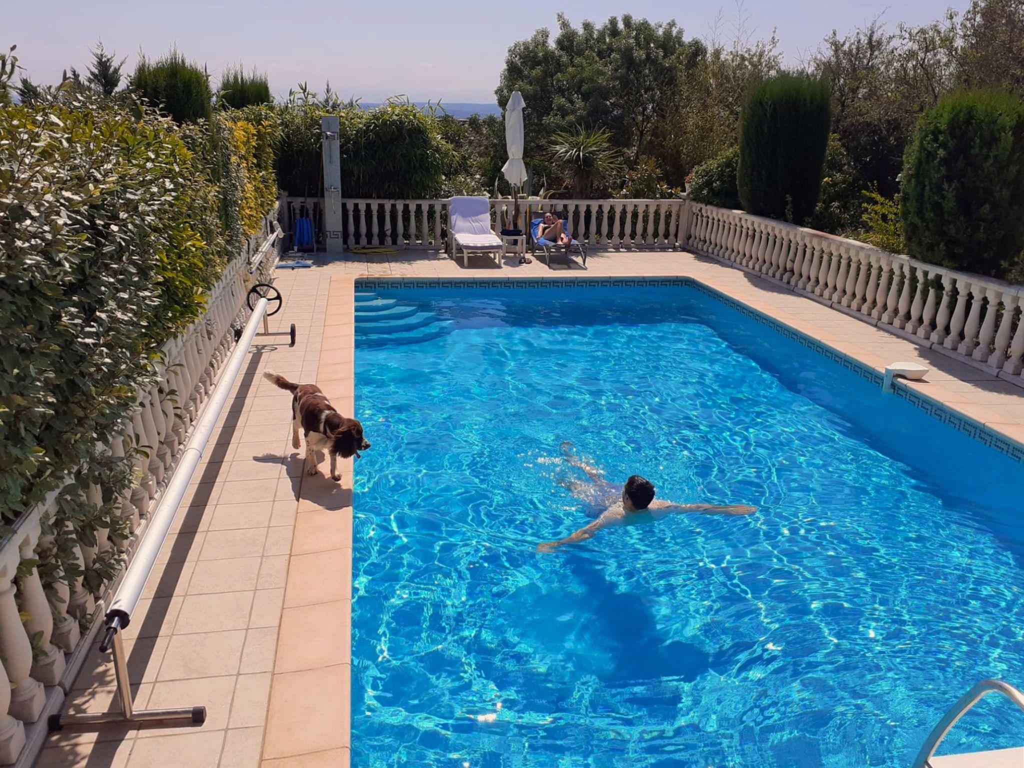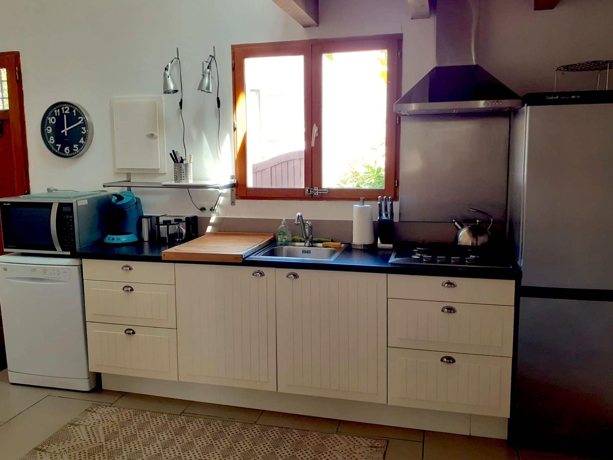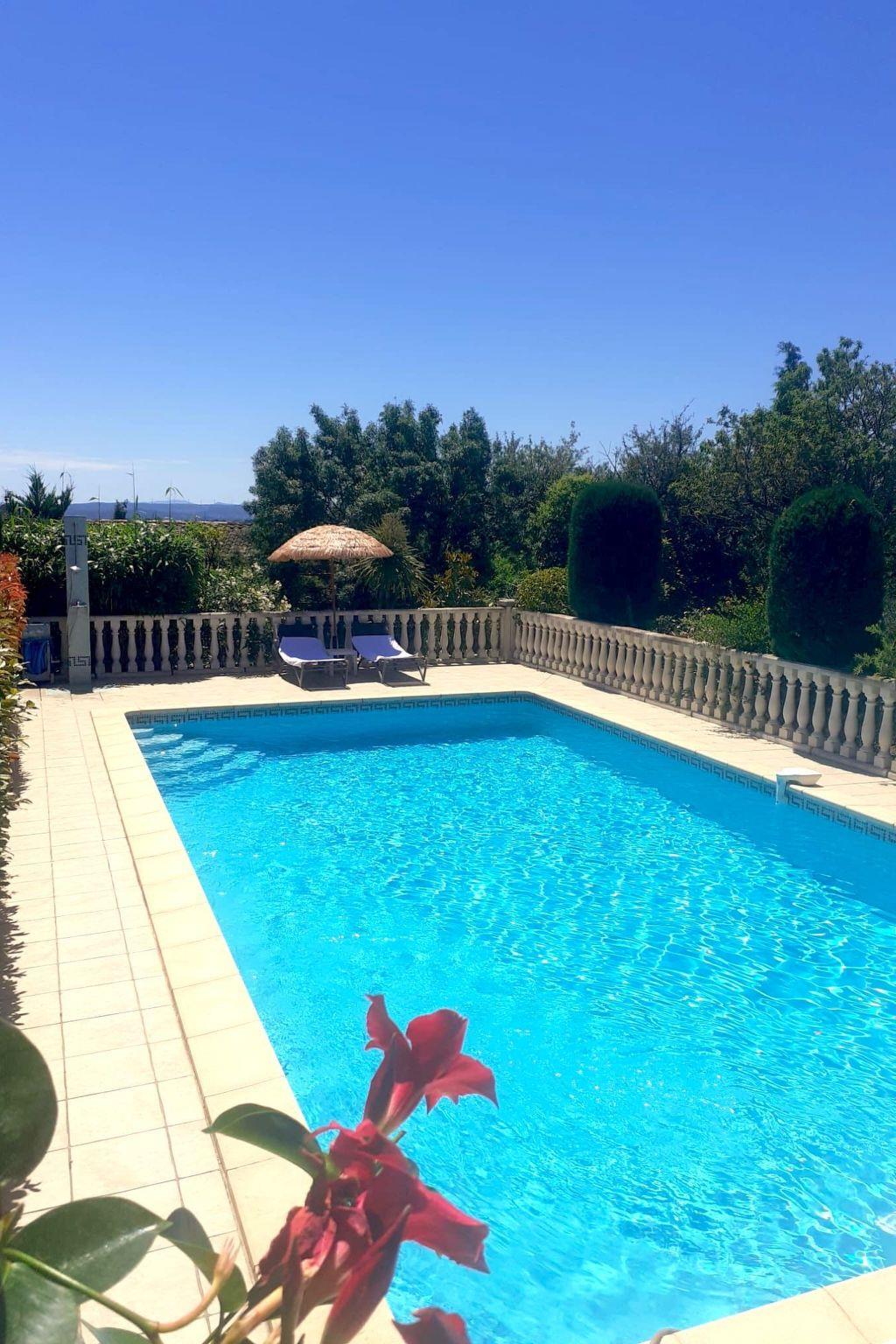 Large terrace with garden and small summer kitchen, boules court with balls and access to the swimming pool (from approx. mid-May) for shared use. The property is fenced, offers several parking spaces and security for children and dogs.