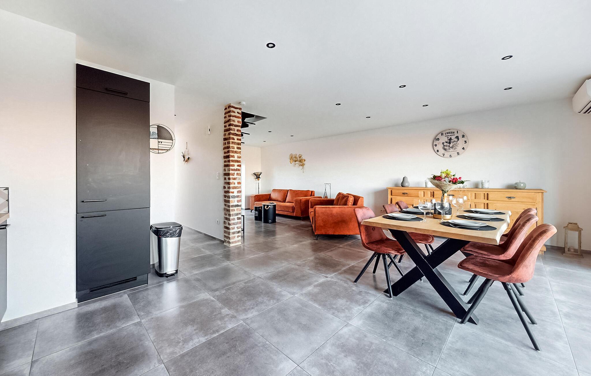 Tæt på Meuse og naturreservatet Pointe de Givet er dette moderne feriehus ideelt til at tilbringe en afslappende ferie med venner eller familie. Glæd jer til at lave madaftener sammen i det veludstyrede, åbne køkken og hyggelige måltider ved det stilrene spisebord med udsigt til det grønne. Om aftenen indbyder et rummeligt sofaområde i stuen til gode samtaler i velkendt selskab eller til at nyde uforglemmelige spilleaftener.