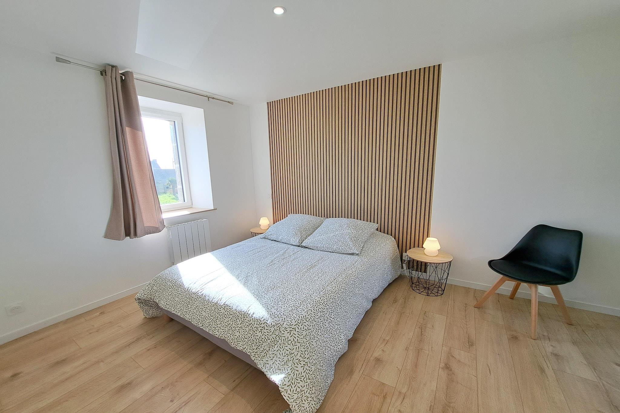 Den fantastiske, uhindrede udsigt over landet helt til havet er højdepunktet i dette meget smagfuldt indrettede feriehus. En sand panoramaudsigt, som du vil nyde fra både den 35 kvm store terrasse og den rummelige opholdsstue med sine brede vinduesfronter. Med sit veludstyrede køkken, rummelige soveværelser og 2 badeværelser er boligen ideel til en familie eller en lille gruppe venner. De smukke strande i Plouescat (Keremma, Porsmeur) og den hvide sandstrand i Les Amiets i Cleder er næsten samme afstand (ca. 4 km). Et ideelt sted for din ferie i Bretagne! Meget tæt på ligger den maleriske by Roscoff med dens livlige havn, et spa-kompleks kendt i hele Frankrig og dets talrige creperier og fiskerestauranter. Du kan tage båden til offshore-øen Batz, hvor der blandt andet er en frodig palmehave. Ud over Morlaix-bugten ligger den smukke lyserøde granitkyst, som bestemt er en tur værd.