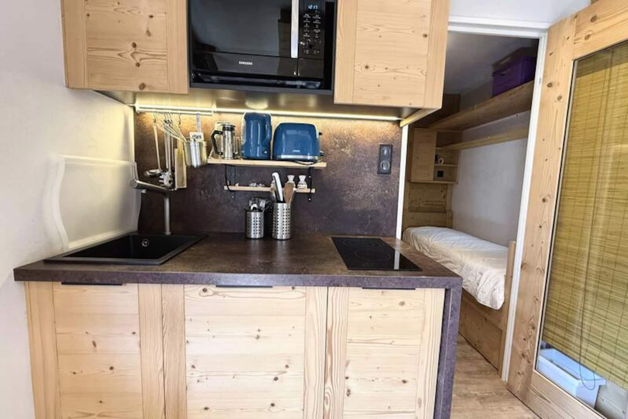 Midt i den fredfyldte alpine charme i Le Cernix tilbyder dette hyggelige 18 m² store feriestudie et indbydende tilflugtssted for rejsende, der søger både eventyr og afslapning. Studiet ligger på første sal i en charmerende bolig, kun 300 meter fra skiløjperne og de lokale butikker, hvilket gør det til en ideel base for din bjergferie. Uanset om du er her for spændingen ved skiløb eller roen i de omkringliggende landskaber, placerer denne ejendom dig lige i hjertet af det hele. Indenfor er studiet omhyggeligt designet til at maksimere komfort og funktionalitet. Entréen har en enkeltseng, mens den primære opholdsstue har en sovesofa til to, et veludstyret køkken og en spiseplads. Et separat brusebad og toilet sikrer bekvemmelighed under dit ophold. Gå ud på den private balkon for at nyde den friske bjergluft og den maleriske udsigt. Yderligere faciliteter inkluderer privat parkering med en udpeget plads, et skiskab til dit udstyr og valgfrie tjenester såsom sengelinned, håndklæder, Wi-Fi og et babykit, hvilket sikrer en problemfri ferieoplevelse. Le Cernix er et paradis for friluftsentusiaster med skiløjper kun en kort gåtur væk og uendelige muligheder for vandreture, sneskovandring og udforskning af de betagende landskaber i de franske alper. Efter en dag med eventyr tilbyder de nærliggende butikker og restauranter alt, hvad du behøver for at slappe af og nyde de lokale smagsoplevelser. Boligens nærhed til vigtige attraktioner og dens rolige omgivelser gør den til et perfekt valg for par, små familier eller solorejsende. Uanset om du kører ned ad uberørte pister eller nyder en fredelig aften på balkonen, tilbyder denne charmerende studiolejlighed den perfekte blanding af komfort, bekvemmelighed og alpin skønhed. Book dit ophold i dag og fordyb dig i magien i Le Cernix.