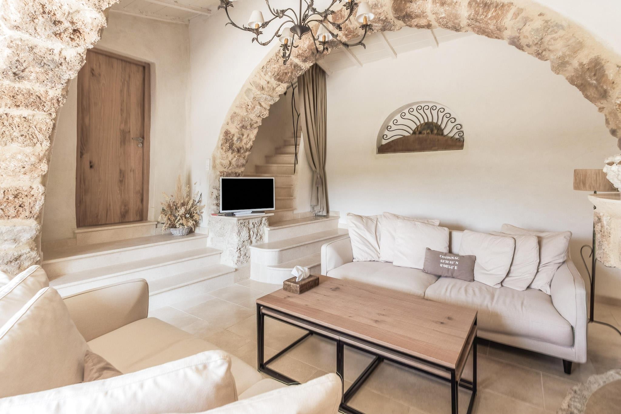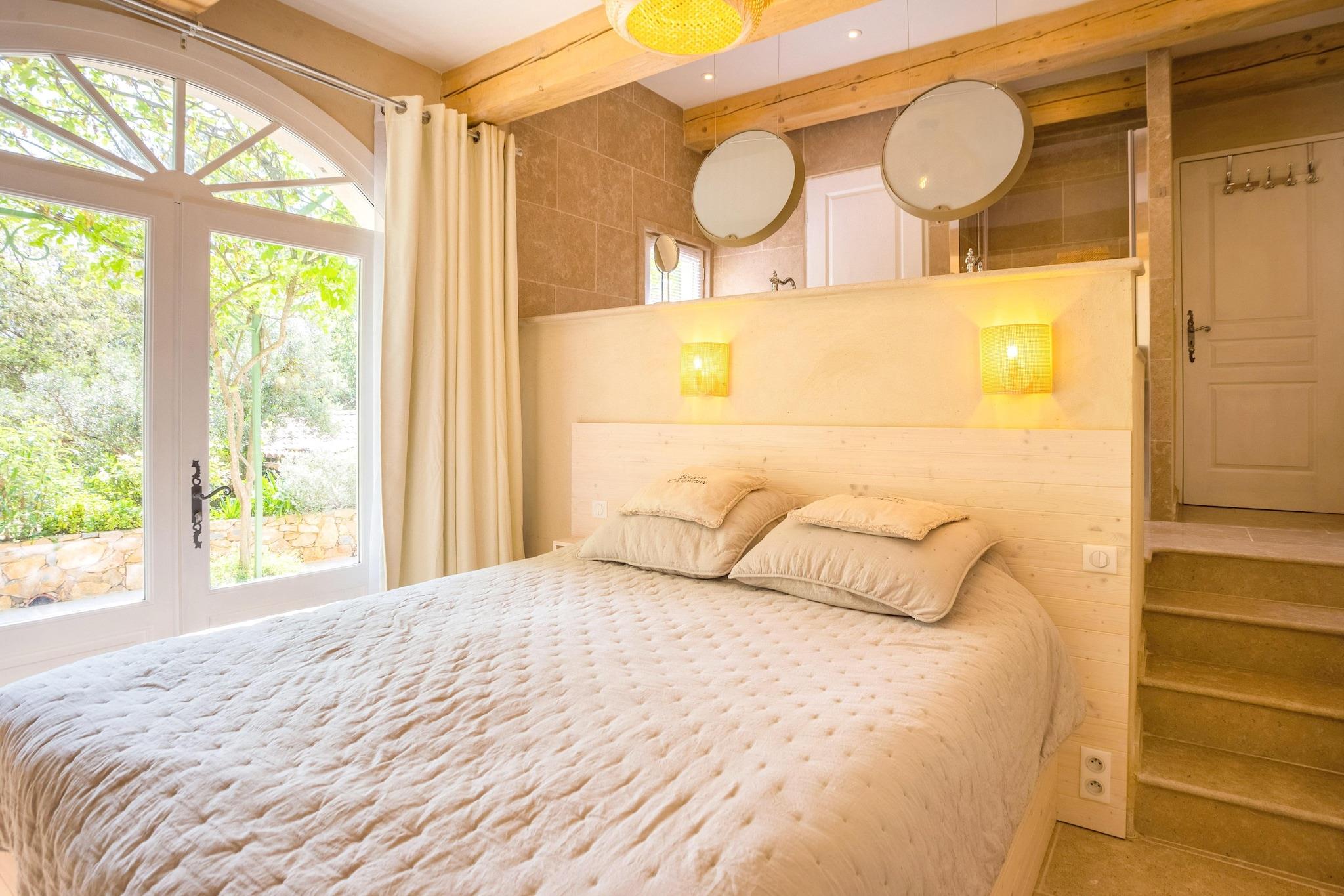 Dette fritliggende feriehus ligger på en 4 hektar stor ejendom, 4 km fra landsbyen Cotignac (i Var). Det er omgivet af egetræer, fyrretræer og oliventræer, og du kan bo komfortabelt med familie og venner. Der er masser at lave i regionen. Du kan sejle i kano, vandcykel og surfe ved søen Sainte Croix og den berømte Gorges du Verdon. Det luksuriøse Saint Tropez og forskellige middelhavsstrande ligger 65 km fra overnatningsstedet, og et besøg i umiddelbar nærhed byder på interessante seværdigheder, såsom vandfaldene i Sillan (6 km) og det smukke Salerne (15 km) med sine karakteristiske terracotta-fliser. Denne tidligere fårefold fra det 18. århundrede blev restaureret i 2000 og tilbyder gæsterne en kombination af en autentisk atmosfære med moderne komfort. Slap af i swimmingpoolen og tilbered dine yndlingsretter omgivet af natur i det udendørs køkken.