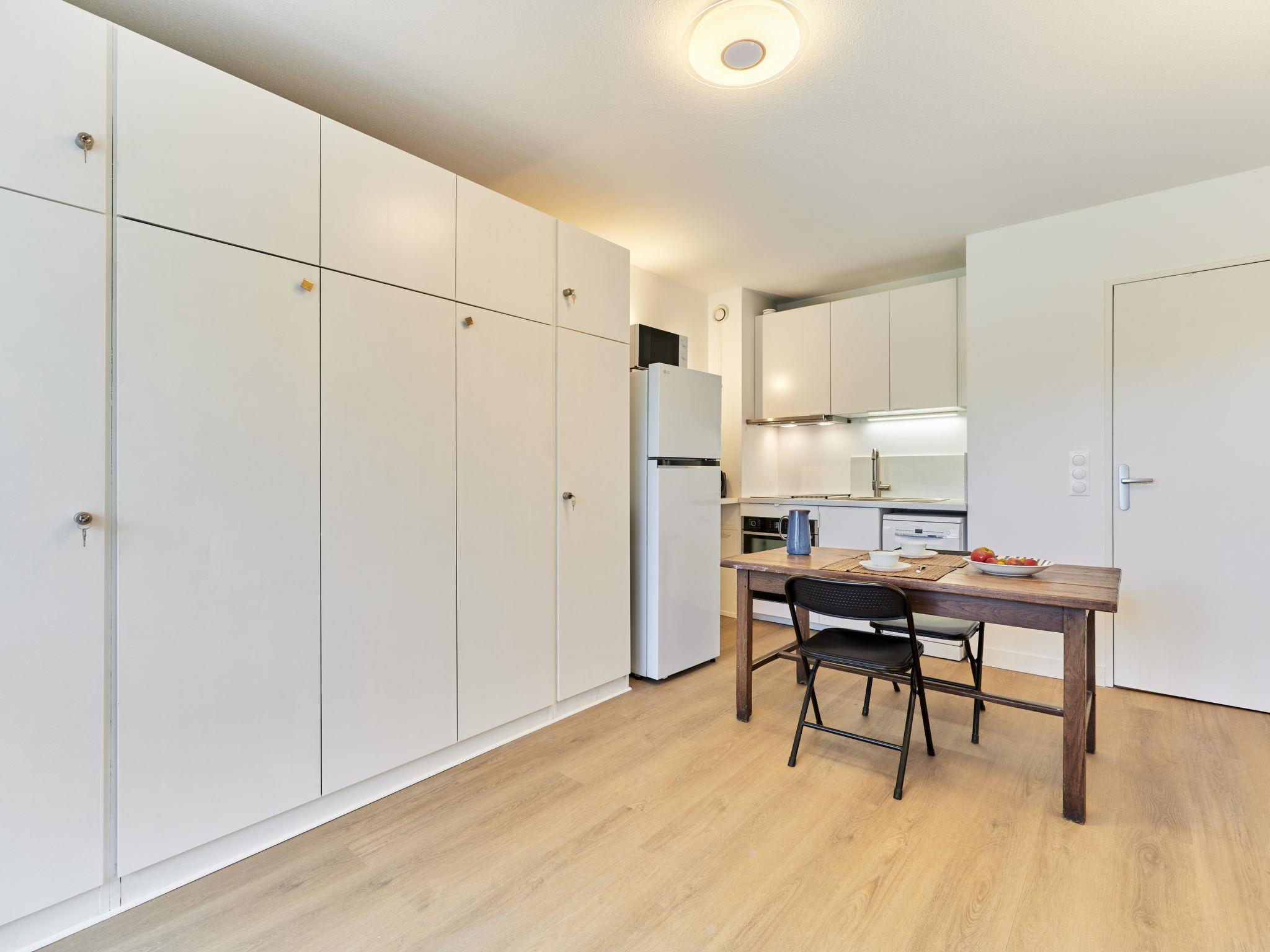"Le Patio", 1-room studio 25 m2. Comfortable and beautiful furnishings: living/sleeping room with 1 french bed (140 cm, length 190 cm). Kitchenette (oven, dishwasher, 2 induction hot plates, toaster, kettle, microwave, electric coffee machine) with TV (flat screen). Shower/WC. Electric heating. Covered balcony. Facilities: washing machine. Internet (WiFi, free). Please note: non-smokers only. Smoke alarm. Offer by a private individual according to Art. 155, IV of CGI.