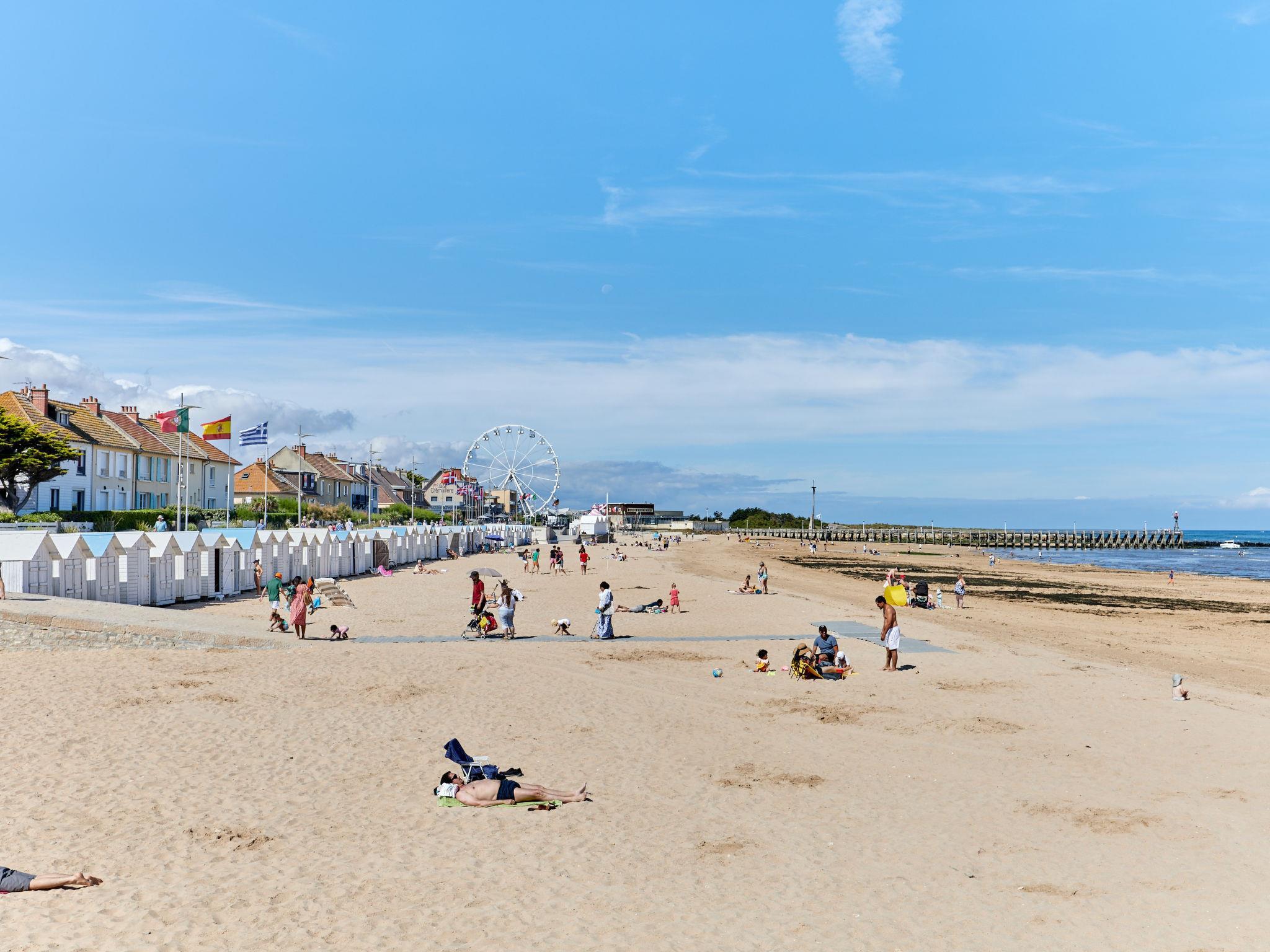 Residence, 4 storeys. In the resort, in a central, quiet position, 100 m from the sea, 100 m from the beach. Public parking on the road. Grocery 600 m, supermarket 1200 km, restaurant 300 m, bakery 500 m, bus stop 50 m, outdoor swimming pool 100 m. Sports harbour 1 km, tennis 300 m. Nearby attractions: Ouistreham 20 km, British Memorial Normandy 7 km, Bayeux 20 km, Arromanches 13 km.