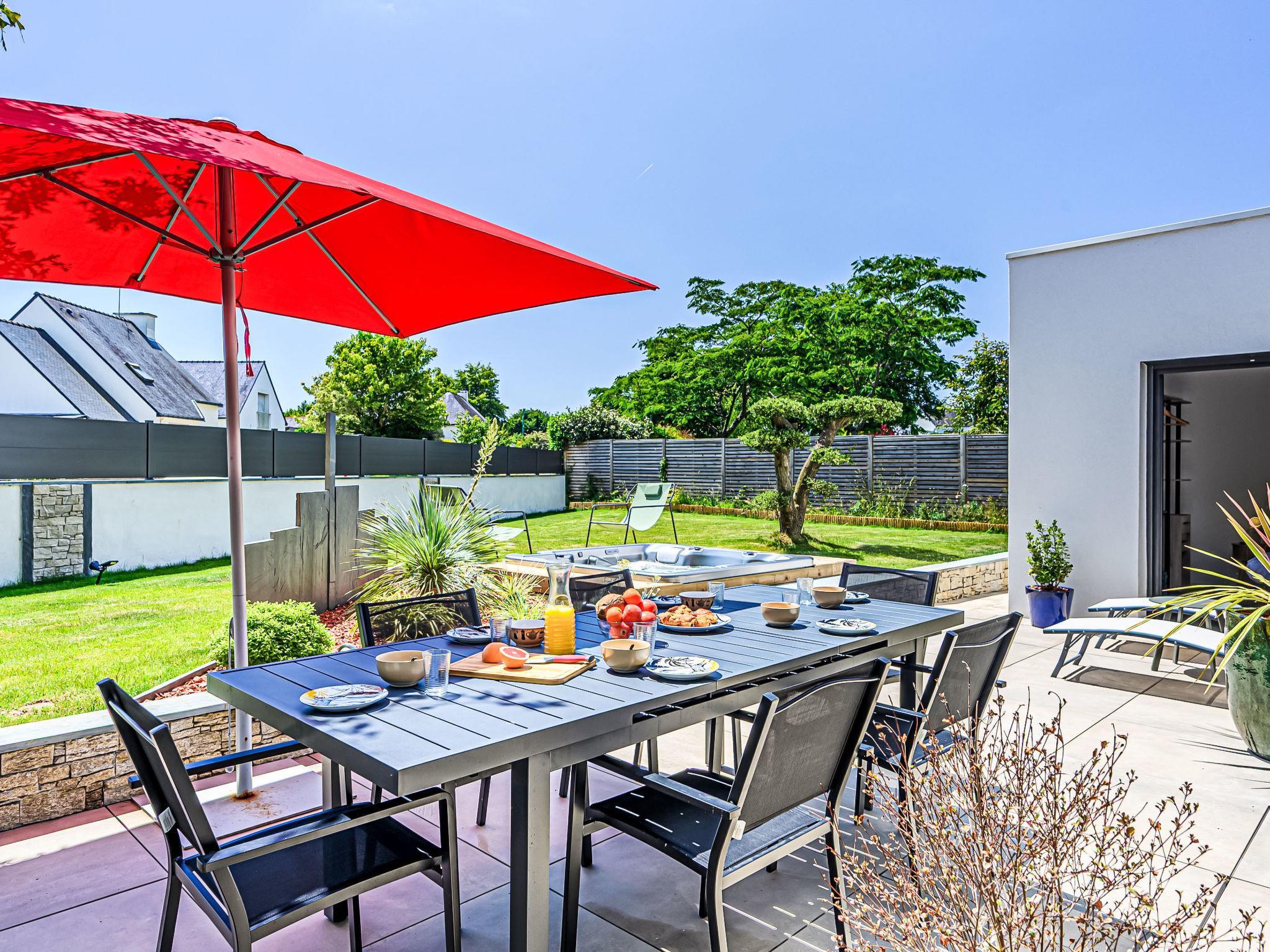 Crac'h 9 km from Carnac: Beautiful house "Villa du Fort Espagnol", built in 2024. In the centre of Crac'h, 3 km from the sea, 6 km from the beach. Private: hot tub, parking. Supermarket 4 km, restaurant 500 m, bar 300 m, bakery 500 m, café 300 m, bus stop "Centre de Crac'h" 400 m, sandy beach "Plage de Saint-Phillibert" 6 km, outdoor swimming pool 10 km. Tennis 6 km. Nearby attractions: Grande plage de Carnac 10 km, La Trinité sur Mer 6 km, Auray et le Port de St Goustan 10 km, Quiberon 28 km, Belle Ile en Mer, Les iles du Golfe du Morbihan.