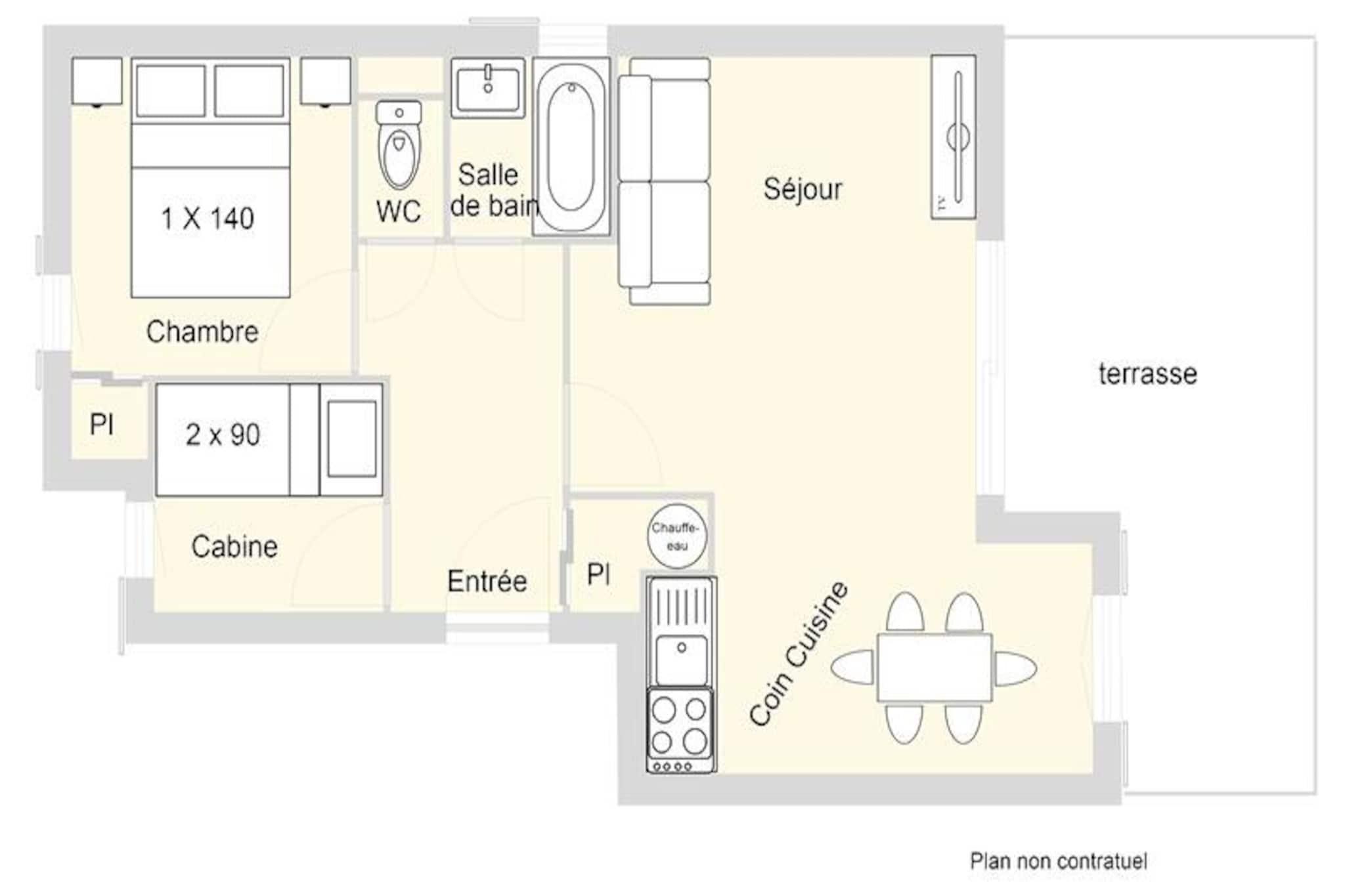 Vågn op til den friske alpeluft og de franske alpers fredfyldte skønhed i denne dejlige lejlighed i stueetagen i Les Arcs 1800. Ejendommen er perfekt beliggende for skientusiaster og tilbyder direkte ski-in/ski-out adgang, hvilket sikrer ubesværet adgang til pisterne. Uanset om du er her for vintereventyr eller sommerferier, inviterer dette charmerende tilflugtssted dig til at fordybe dig i Tarentaise-dalens naturlige pragt. Træd ud på terrassen og lad bjergudsigten inspirere din dag. \n\nIndenfor er den 39 m² store lejlighed omhyggeligt designet til at rumme op til fire gæster. Det hyggelige soveværelse har en komfortabel dobbeltseng, mens kabinen har to køjesenge, ideelt til familier eller små grupper (bemærk: den øverste køjeseng er ikke egnet til børn under 6 år). Stuen er et indbydende sted at slappe af med nem adgang til terrassen til udendørs stunder. Et fuldt udstyret køkken giver dig mulighed for nemt at tilberede måltider, suppleret af et badeværelse og separat toilet for ekstra bekvemmelighed. Gæsterne kan også drage fordel af en privat garage i kælderen og et skirum, hvilket gør dit ophold både praktisk og stressfrit. \n\nBeliggenheden er uovertruffen, med landsbybutikker kun en kort gåtur væk, der tilbyder alt fra friske lokale råvarer til afterski-fornødenheder. Om vinteren lokker pisterne, mens sommeren forvandler området til et paradis for vandreture, cykling og udforskning af den nærliggende Vanoise Nationalpark. Bourg-Saint-Maurice og den ikoniske Aiguille Rouge er kun en køretur væk og lover uforglemmelige alpine eventyr. \n\nUanset om du søger spændende skidage eller rolige aftener omgivet af bjergcharme, er denne lejlighed din port til det bedste af Les Arcs. Skab varige minder i omgivelser, der kombinerer komfort, bekvemmelighed og Alpernes tidløse charme.