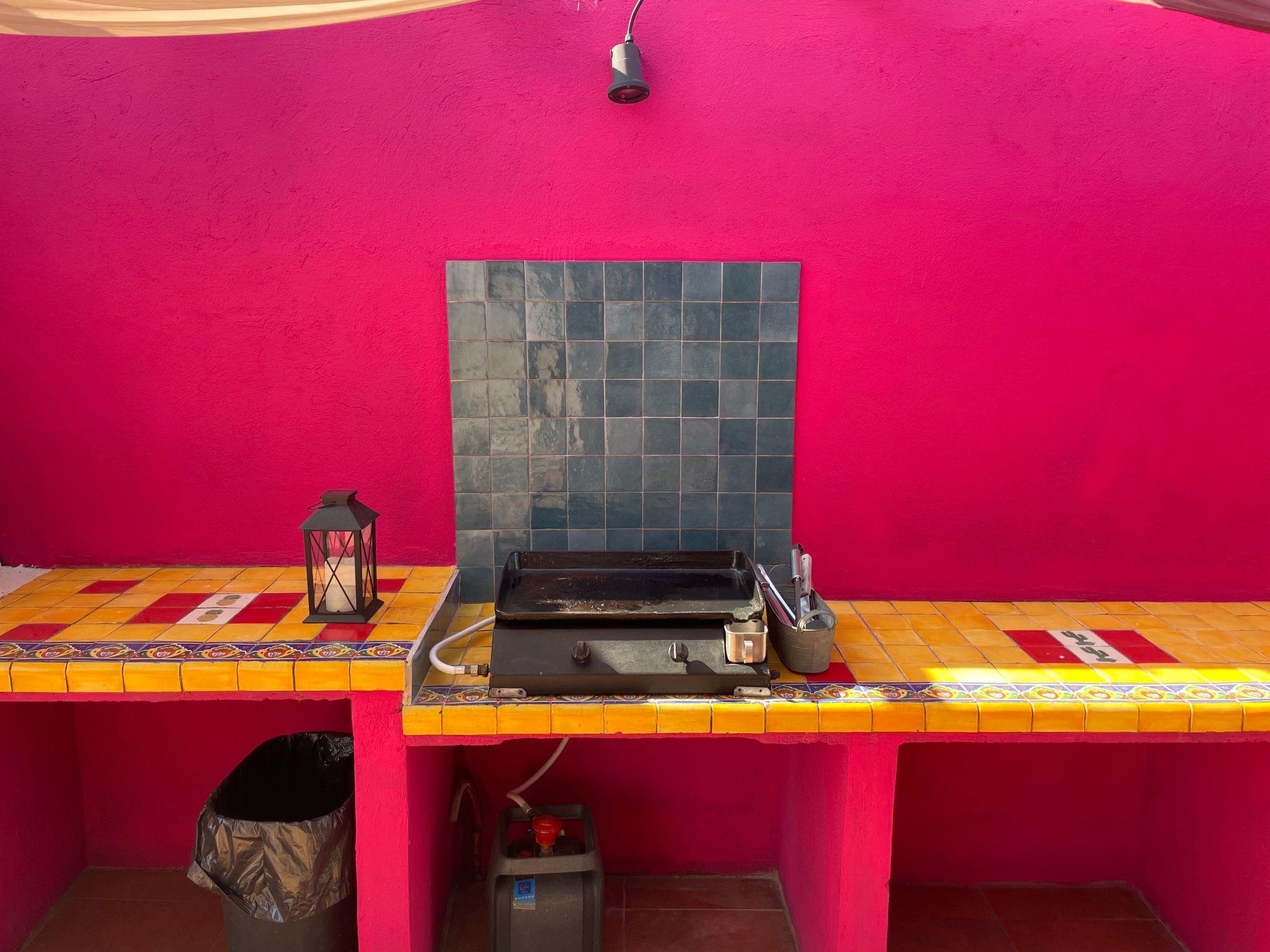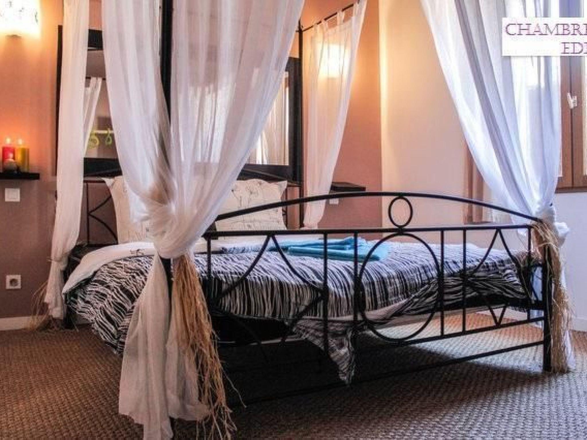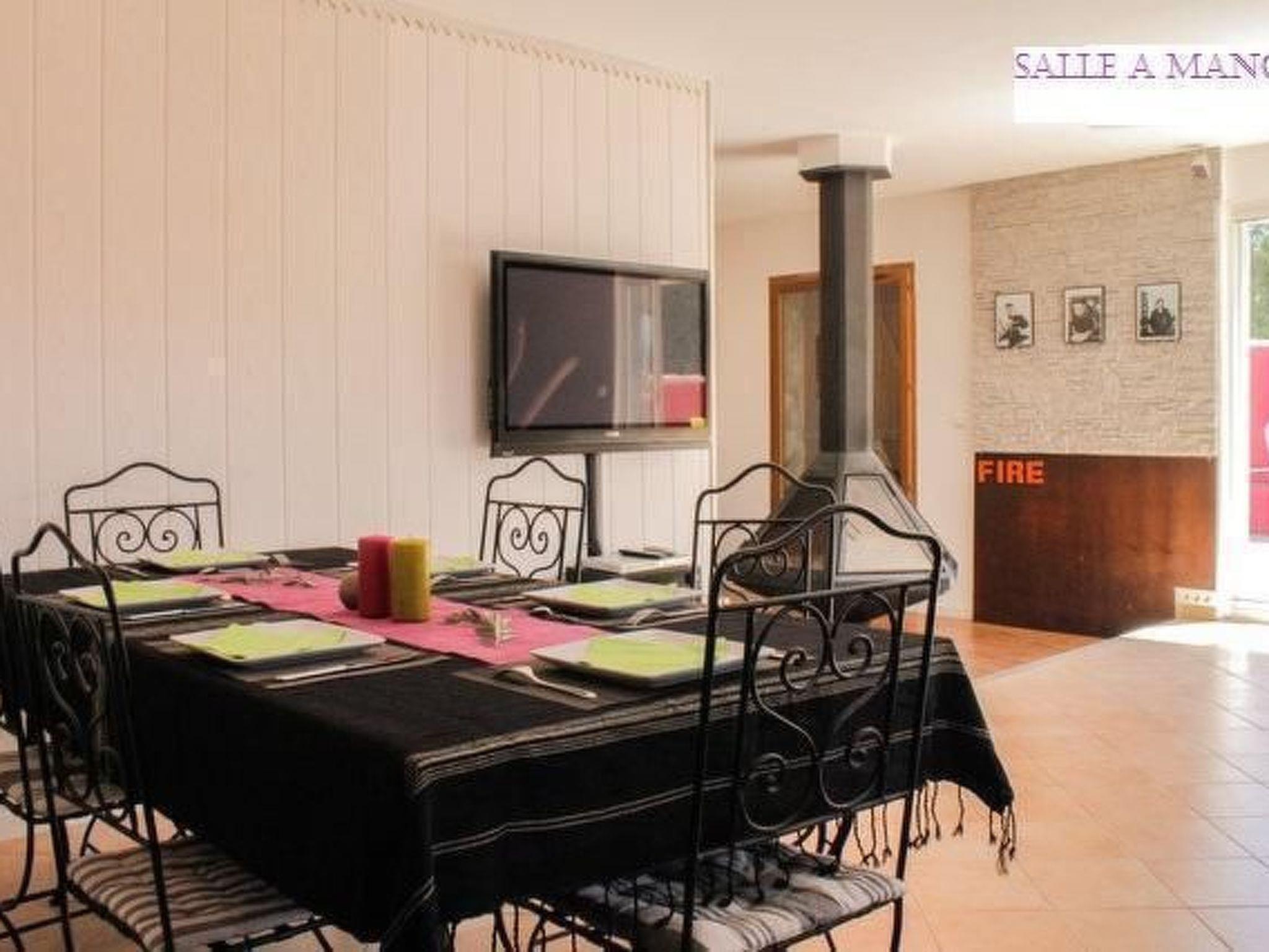 The house is complemented by 400 m² of flat land. A three-metre bay window leads to a tiled terrace with a summer kitchen. This is equipped with a pizza oven and gas griddle. The second wooden terrace is furnished and extends right next to the secure swimming pool (8.5x4 metres) which can be used from April to October. Here you will find sun loungers where you can enjoy a beautiful view of the hilly landscape. The 8.5 x 4.5 m pool is child-friendly, with depths ranging from 30 cm to 2 m. There are two parking spaces in the grounds, and you can also park in front of the house.