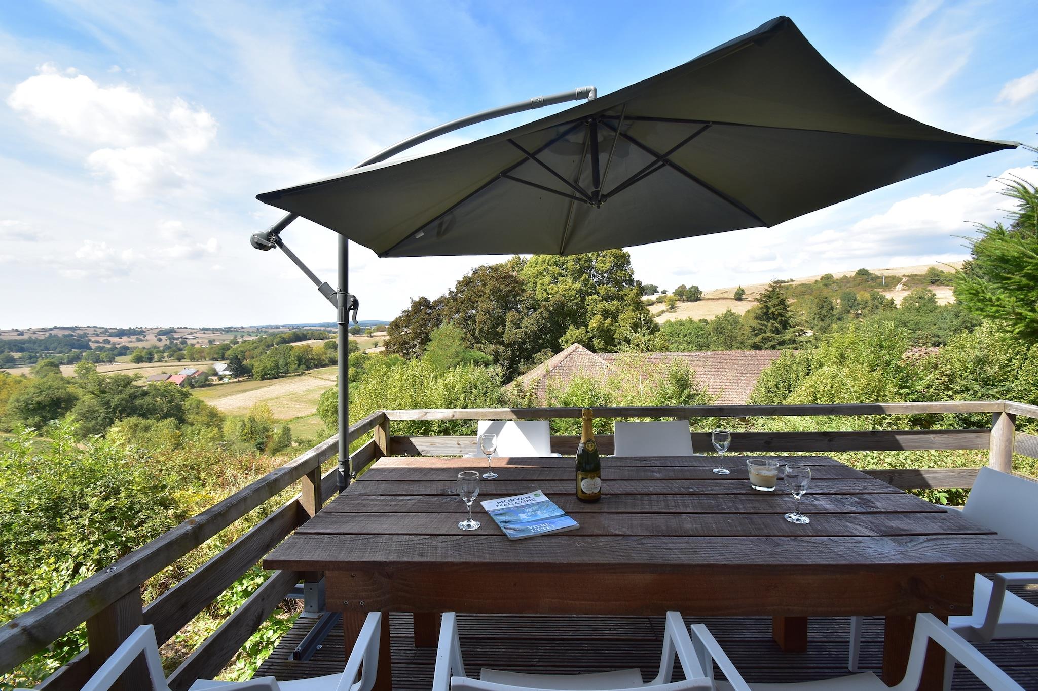 Op til 6 hunde muligt på forespørgsel! Natur- og hundeelskere vær opmærksom på: dette fine feriehus har en fuldstændig indhegnet have (hegn 1 m højt) og ligger på en bakke. Stuen har terrassedøre, der fører ud til den rummelige terrasse med smuk udsigt. Der er to terrasser: en foran huset og en bag huset, så du altid kan finde et dejligt sted i solen eller skyggen at spise eller endelig læse den bog. Ejendommen er fuldt indhegnet og bag huset er en anden separat indhegnet have, der kan aflåses via en låge. Gå en tur i de smukke omgivelser om dagen, besøg et af slottene eller hyggelige byer, brocantes eller markeder. I dit sommerhus finder du masser af information om seværdigheder i området. I den hyggelige by Luzy (7 km) finder du gode restauranter og terrasser. Du kan også gå her til alle dine indkøb i de store supermarkeder eller på det ugentlige marked. Om aftenen tænder du grillen og nyder udsigten og roen i haven med et godt glas Bourgognevin.