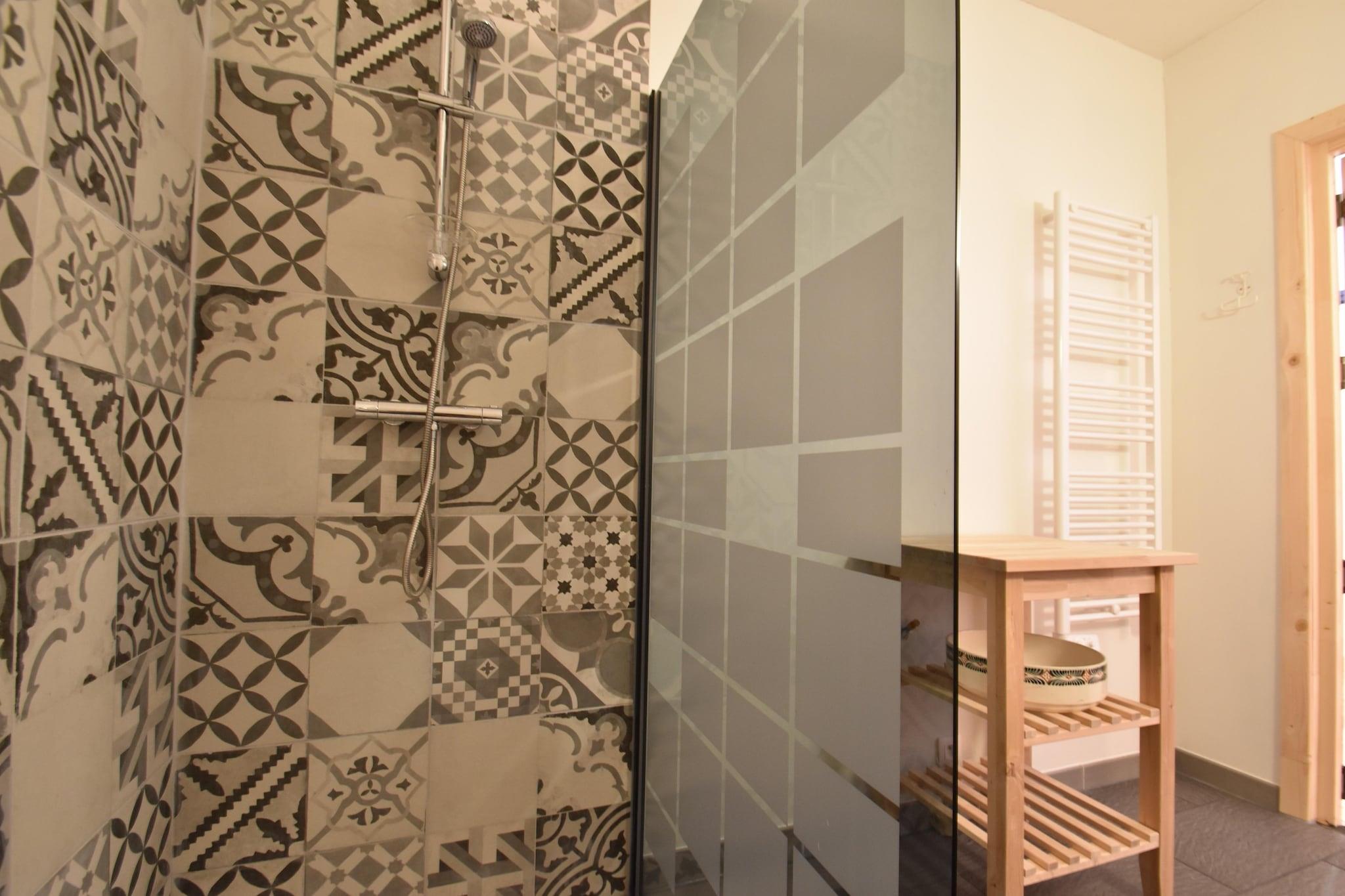 På 1. etage: (Køkken(brødrister, komfur(Komfur med fire kogeplader, induktion), kaffemaskine(kaffepude), ovn, opvaskemaskine , køleskab, fryser), stue / spisestue(Fjernsyn(digital, Hollandske TV-kanaler, Internationale TV-kanaler), spisebord, kakkelovn(pille), sofahjørne), soveværelse(2x enkeltseng(dynebetræk, 90 x 200 cm)), soveværelse(dobbeltseng eller 2 enkeltsenge Senge(dynebetræk, 90 x 200 cm)), badeværelse(bruser, håndvask, toilet), toilet) vaskemaskine, varme(elektrisk), terrasse(18 m2), swimmingpool(deles med andre gæster, opvarmet, 9 x 4 m., opened from May upto and including Sep)