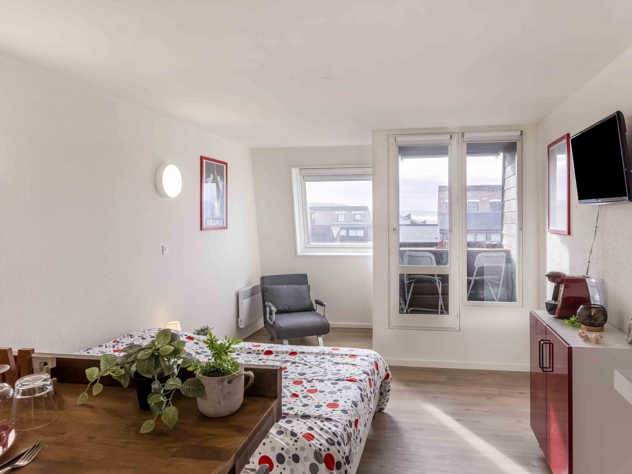 1-room studio 25 m2 on 5th floor. Entrance hall. Living/dining room with 1 french bed (1 x 140 cm, length 190 cm), TV (flat screen). Exit to the balcony. Kitchenette (oven, 2 induction hot plates, toaster, kettle, microwave, electric coffee machine). Bathroom, sep. WC. Electric heating. Small balcony, west facing position. Balcony furniture. Beautiful view of the port. Facilities: Internet (WiFi, extra). Please note: non-smokers only. Maximum 1 pet/ dog allowed. Smoke alarm. Offer by a private individual according to Art. 155, IV of CGI. 14220001106L2