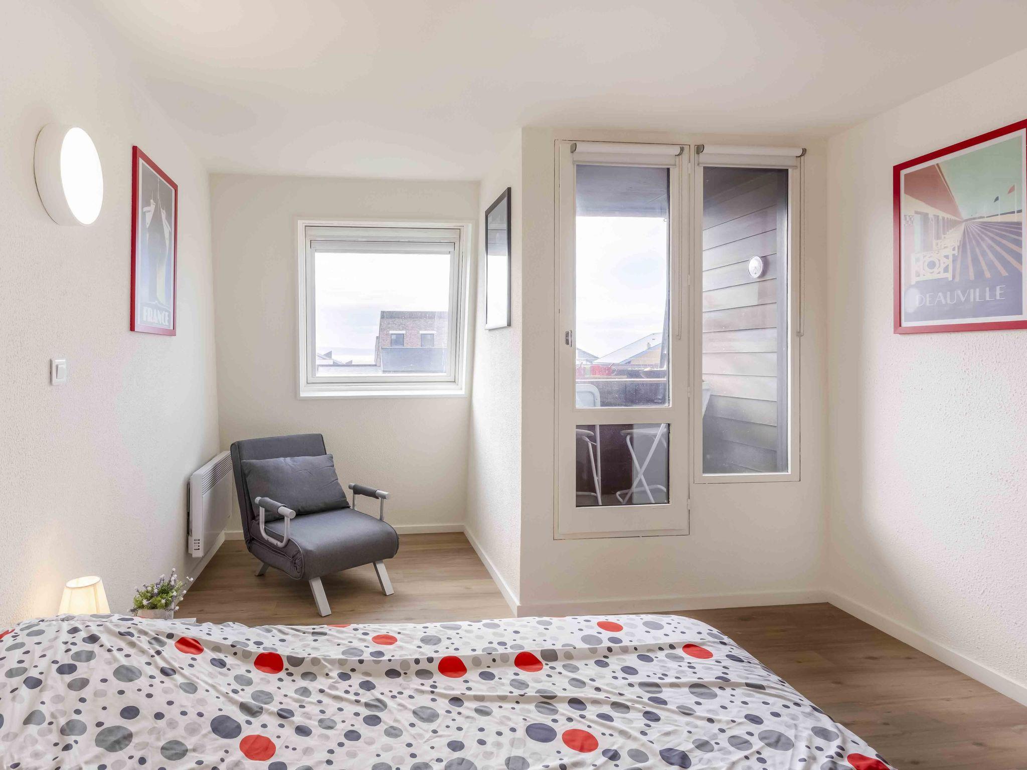 Deauville: Residence "Les Marinas". In the district of Port Deauville, 800 m from the centre, 500 m from the sea, 500 m from the beach. In the complex: lift. (20 steps). Public parking on the road. Shop 650 m, grocery, supermarket 950 m, restaurant 650 m, bus stop 400 m, railway station "Deauville-Trouville" 1.2 km, indoor swimming pool 1.1 km, thermal baths "Deauville" 1.1 km. Golf course (18 hole) 4.1 km, tennis, riding stable 750 m. Nearby attractions: Centre International Deauville - CID 900 m, Hippodrome Deauville-La Touques 1.3 km, Mémorial de Caen 55 km, Plage du débarquement d'Arromanches 87 km. Please note: Additional accommodations can be booked.