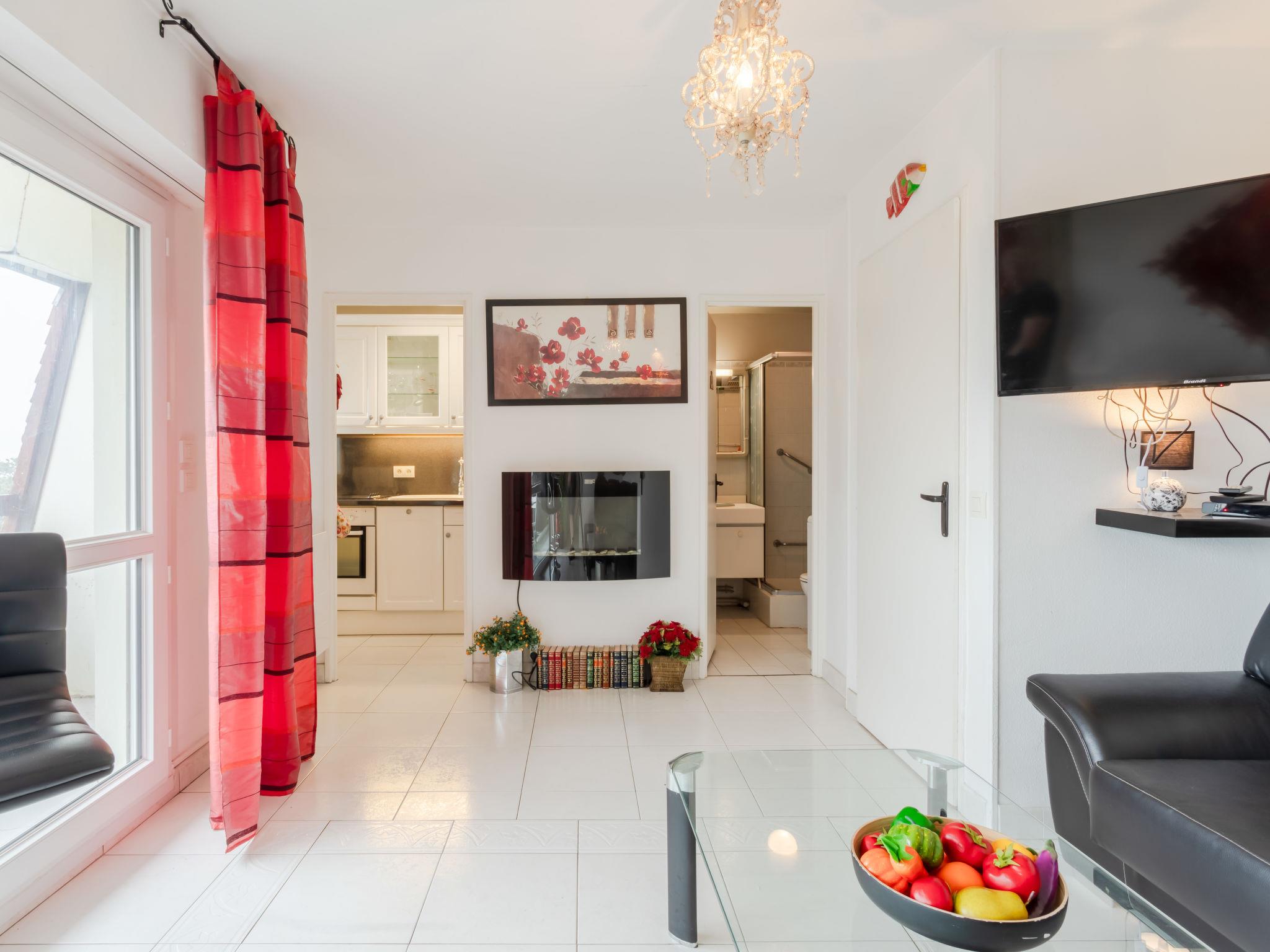 Trouville sur Mer: Residence "Les Flots Bleus", 4 storeys. Outside the resort, on top of a hill, 900 m from the sea, 900 m from the beach. In the complex: lift. (5 steps). Shop 2 km, grocery 2.1 km, supermarket 2.1 km, bus stop "Trouville Prémanoir" 300 m, railway station "Deauville-Trouville" 2.4 km, sandy beach "Trouville-sur-mer" 1 km, indoor swimming pool 2 km, thermal baths "Trouville sur Mer" 2 km. Golf course (18 hole) 6.1 km, sailing school 1.5 km, tennis 1.5 km. Nearby attractions: Honfleur 13 km, Mémorial de Caen 64 km, Plage du débarquement d'Arromanches 97 km. Please note: car recommended. The keys‘ handover takes place by the agency Interhome in Deauville. Additional accommodations can be booked.