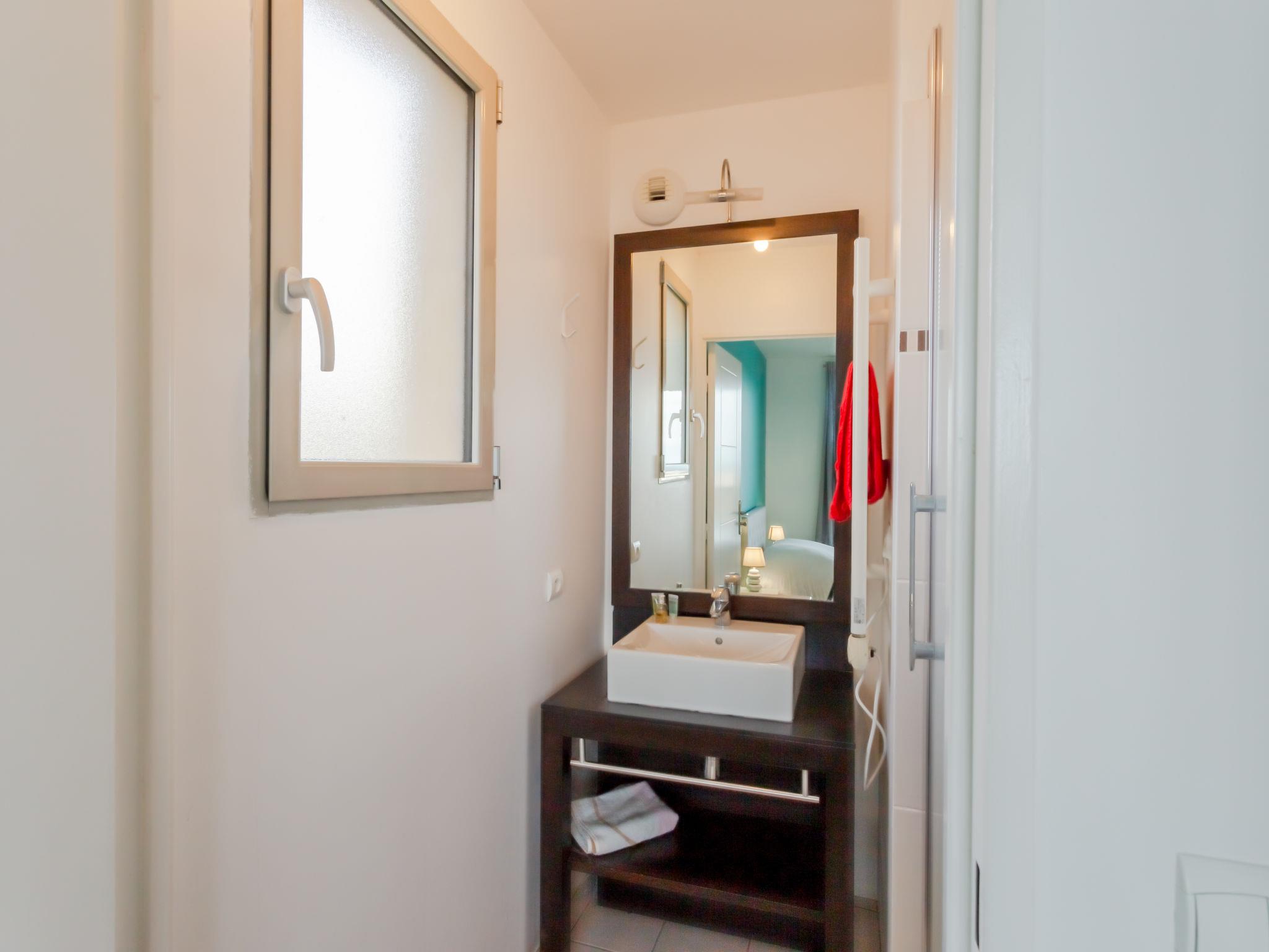 2-room apartment 30 m2 on 1st floor. Entrance hall. Living/dining room with 1 double sofabed (1 x 140 cm, length 190 cm), TV (flat screen). Exit to the terrace, north facing position and west facing position. 1 room with 1 french bed (1 x 140 cm, length 190 cm). Open kitchen (2 hot plates, dishwasher, toaster, kettle, freezer, electric coffee machine, combination microwave). Shower, sep. WC. Electric heating. Terrace 15 m2, roofed, south facing position and west facing position. Terrace furniture. Very beautiful view of the sea. Facilities: washing machine. Internet (WiFi, free). Parking. Please note: non-smokers only. 1 pet/ dog allowed. Smoke alarm. Offer by a private individual according to Art. 155, IV of CGI. 14220 001753 KE