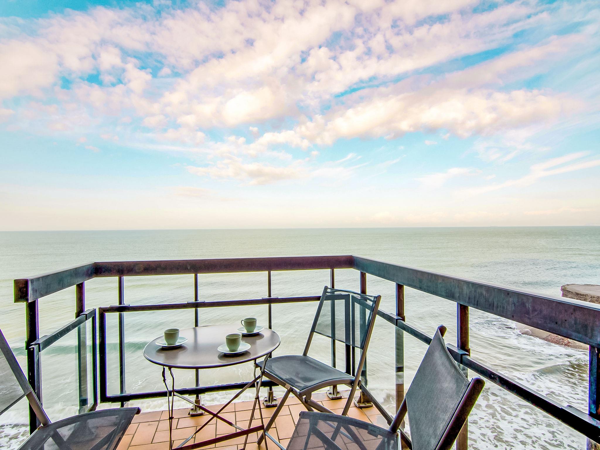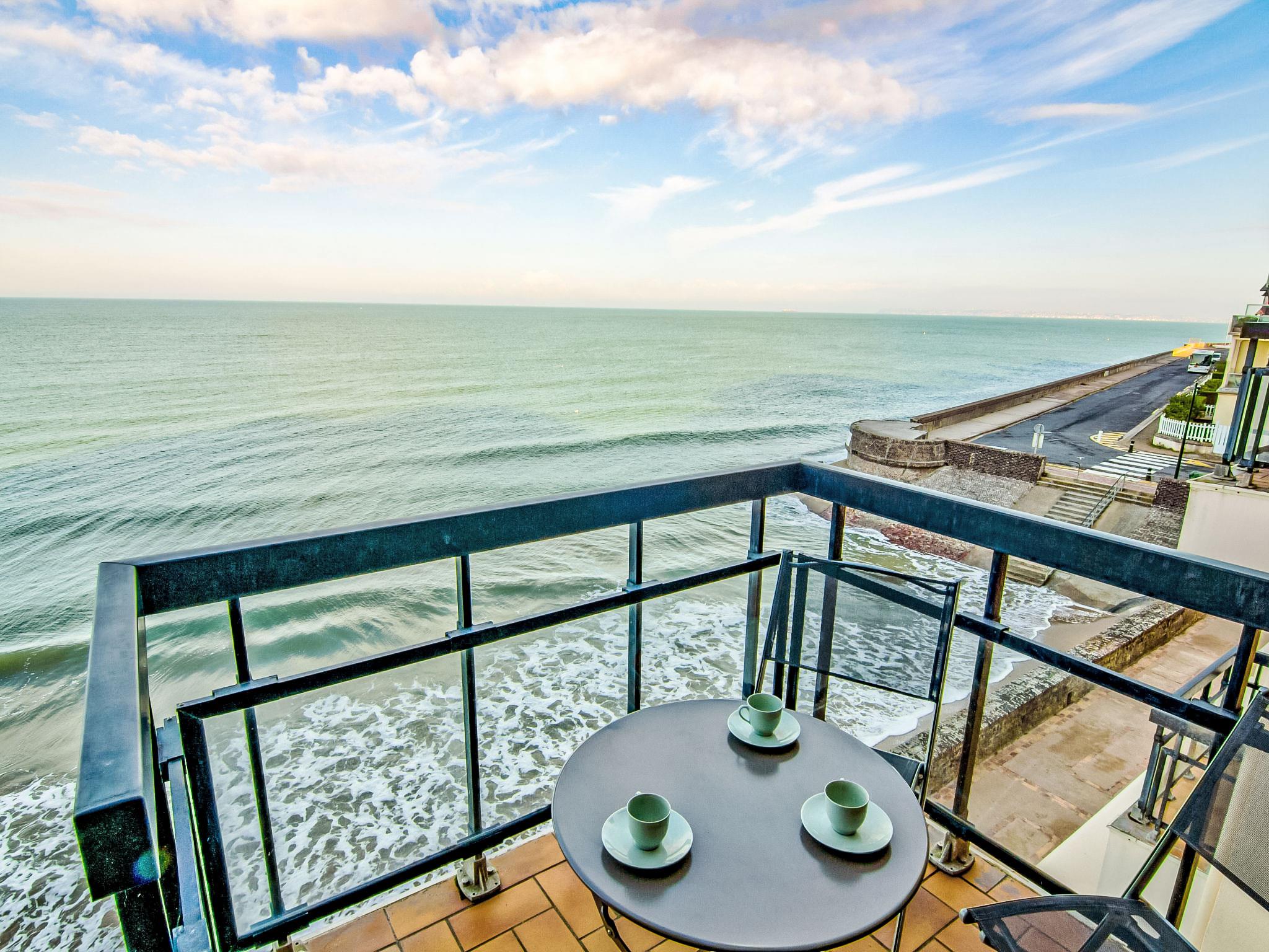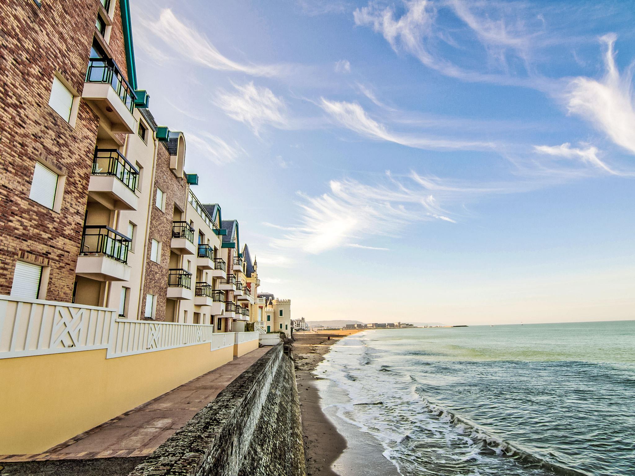 Trouville sur Mer: Residence "Les Flots", 3 storeys. 10 m from the sea, direct access to the beach. In the complex: lift. Shop 850 m, grocery 950 m, supermarket 1.1 km, restaurant 850 m, bus stop "Prémanoir" 1.6 km, railway station "Deauville-Trouville" 1.8 km, indoor swimming pool 1.2 km, thermal baths "Trouville sur Mer" 1.2 km. Golf course (18 hole) 6.4 km, sailing school 250 m, tennis 700 m. Nearby attractions: Hippodrome Deauville-La Touques 4.2 km, Honfleur 14 km, Mémorial de Caen 51 km, Plage du débarquement d'Arromanches 87 km. The keys‘ handover takes place by the agency Interhome in Deauville.