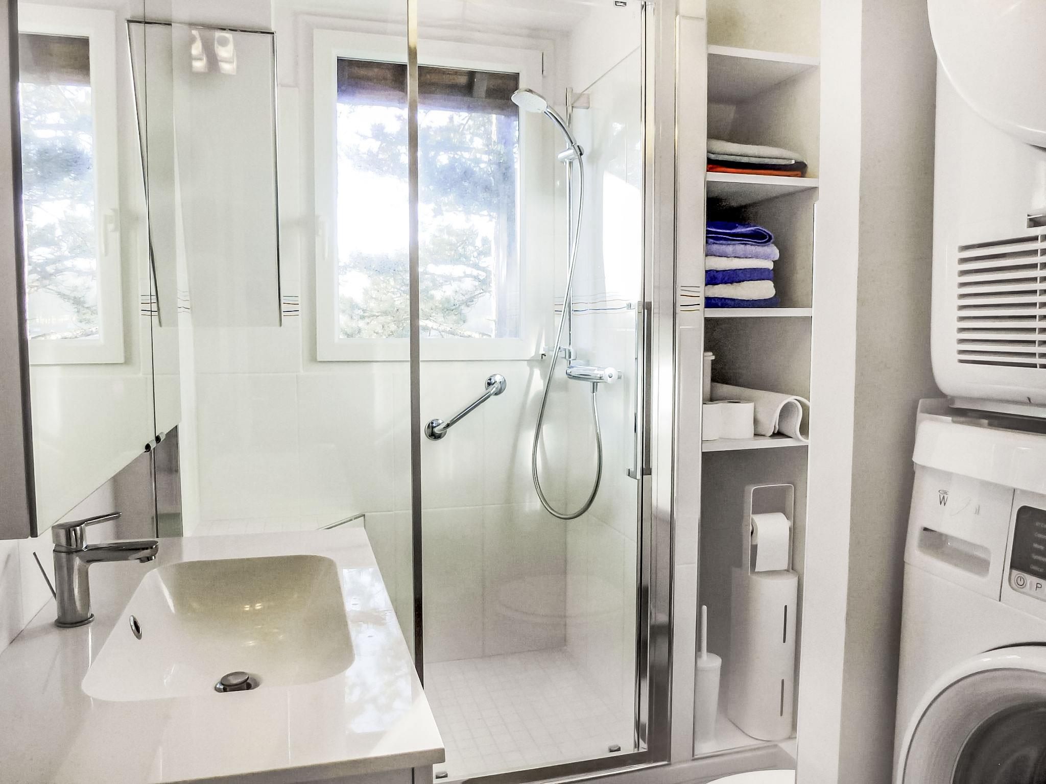 3-room apartment 57 m2 on 3rd floor. Tasteful furnishings: entrance hall with separate WC. Living/dining room with TV (flat screen). Exit to the balcony. 1 room with 2 beds (80 cm). 1 room with 1 double sofabed (140 cm). Kitchen (3 hot plates, oven, dishwasher, toaster, kettle, microwave, freezer, electric coffee machine). Exit to the balcony. Shower/WC. Electric heating. Large balcony 10 m2. Balcony furniture. View of the countryside. Facilities: washing machine, dryer. Internet (WiFi, free). Parking. Please note: non-smokers only. Smoke alarm.