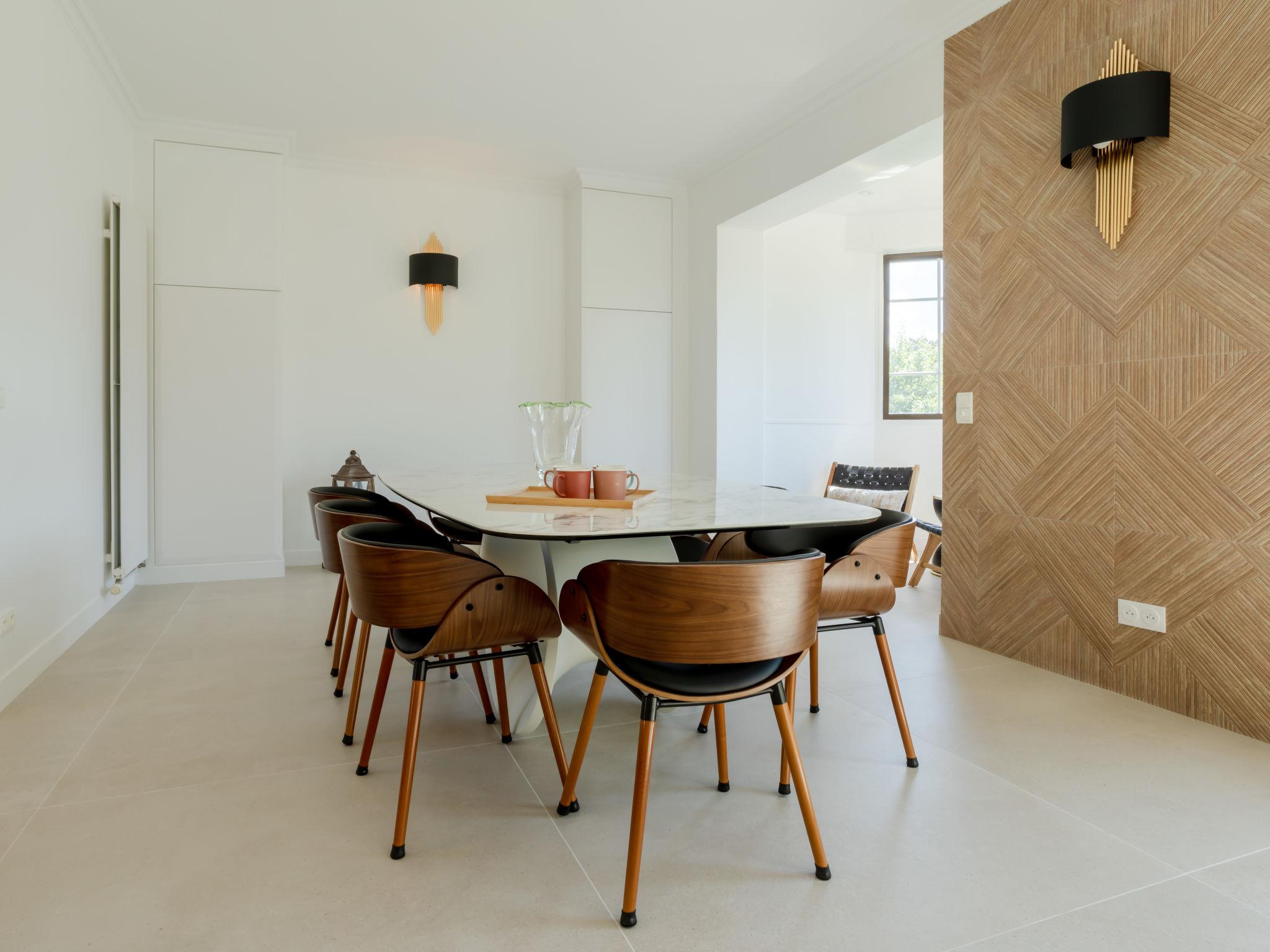 "Villa Deauville", 6-room house 150 m2 on 3 levels. Spacious, fully renovated in 2024, very luxurious furnishings: entrance hall. Large living/dining room. Exit to the garden, to the terrace, south facing position. Lounge with open-hearth fireplace (only for decoration). Exit to the garden. Open kitchen (oven, dishwasher, 4 induction hot plates, toaster, kettle, microwave, freezer, electric coffee machine). Sep. WC. On the lower ground floor: 1 room with 1 french bed (1 x 160 cm, length 200 cm). Exit to the garden, south facing position. Shower, shower/WC, sep. WC. Electric heating, gas heating. Upper floor: 1 room with 1 french bed (1 x 160 cm, length 200 cm). 1 room with 1 french bed (1 x 160 cm, length 200 cm). 1 room with 1 french bed (1 x 160 cm, length 200 cm). Shower/WC. Large garden 300 m2, south facing position. Terrace furniture, deck chairs, conservatory. Facilities: washing machine, dryer, iron, hair dryer. Internet (WiFi, free). Please note: one double bedroom is outside the apartment. Non-smokers only. Smoke alarm. Offer by a private individual according to Art. 155, IV of CGI. 14220001499AD