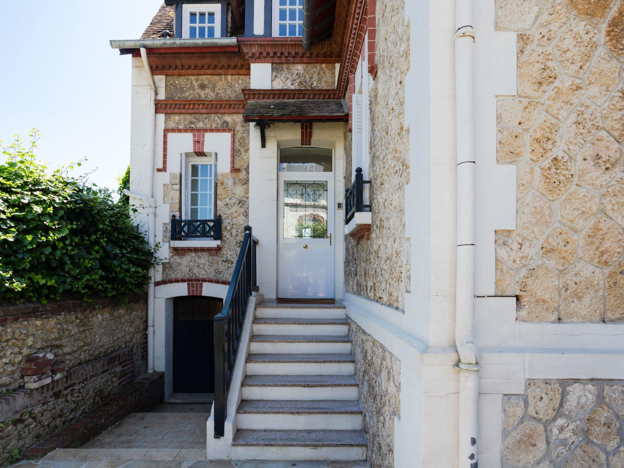 Deauville: Single-family house "Villa Deauville", 3 storeys in 2024. Property composed of main house and outbuilding, in the centre of Deauville, excellent location: right in the centre but still quiet, 900 m from the sea, 900 m from the beach. Public parking 50 m on the road. Shop 50 m, grocery 130 m, restaurant 50 m, bakery 200 m, bus stop "Deauville Art Station" 150 m, railway station "Deauville-Trouville" 1.8 km, sandy beach "Planches de Deauville" 900 m, indoor swimming pool 1.3 km, thermal baths "de Deauville" 1.3 km. Golf course (18 hole) 3.1 km, tennis 800 m, riding stable 650 m. Nearby attractions: Casino de Deauville 650 m, Hippodrome de Deauville La Touques 280 m, CID Centre International de Deauville 650 m, Honfleur - village normand 17 km, Memorial de Caen 54 km. The keys‘ handover takes place by the agency Interhome in Deauville.