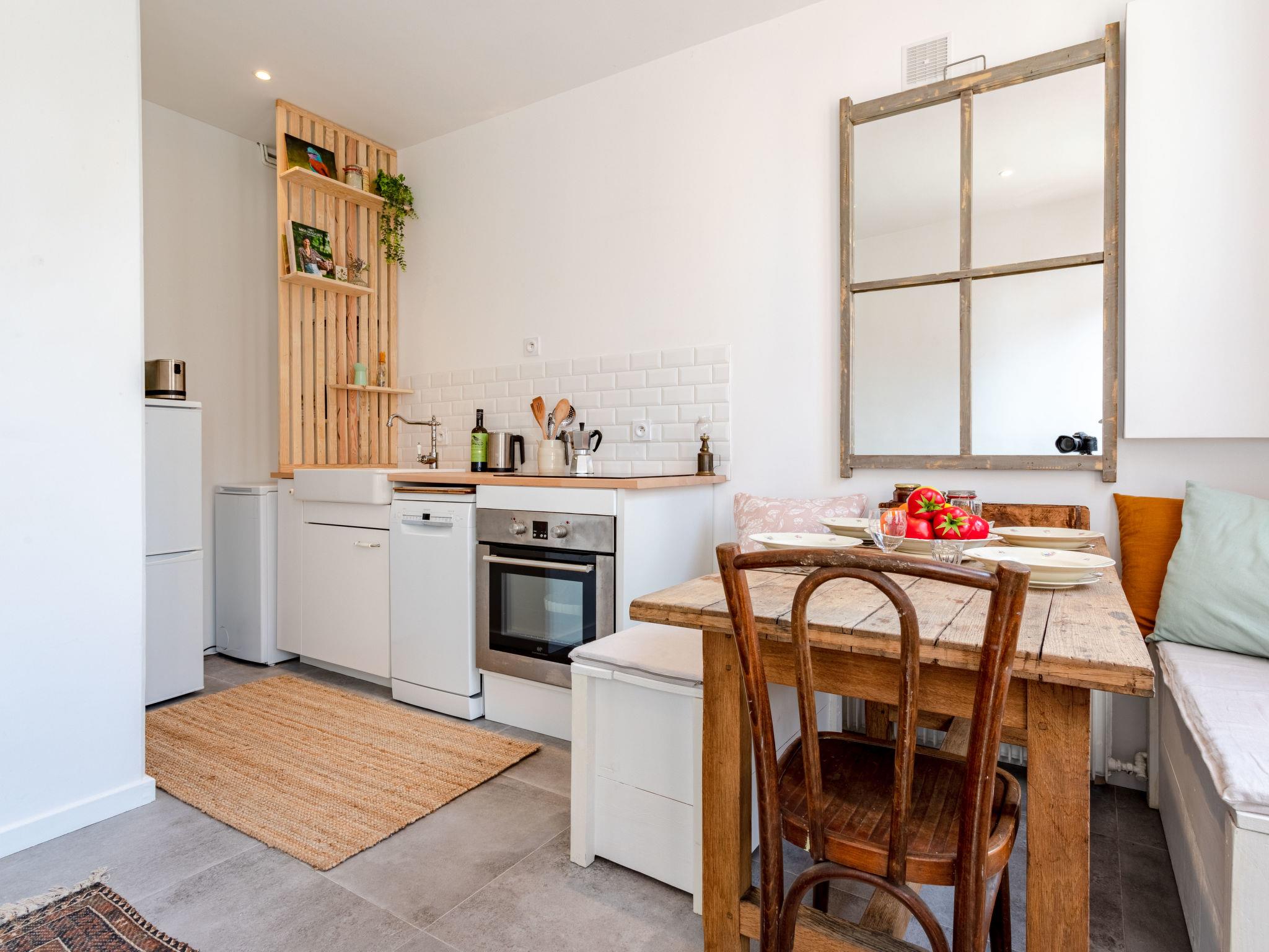 Trouville sur Mer: Terraced house "La Casita", 2 storeys. 400 m from the centre, excellent location: right in the centre but still quiet, 1 km from the sea, 1 km from the beach. Shop, grocery 140 m, supermarket 2.2 km, bus stop "Eglise notre-dame" 300 m, railway station "Deauville-Trouville" 400 m, sandy beach 1 km, thermal baths "Trouville sur Mer" 1 km. Golf course (18 hole) 4.2 km, tennis 1 km. Nearby attractions: Hippodrome Deauville - La Touques 2 km, Casino Barrière de Trouville 800 m, Halle aux poissons de Trouville 550 m. The keys‘ handover takes place by the agency Interhome in Deauville.