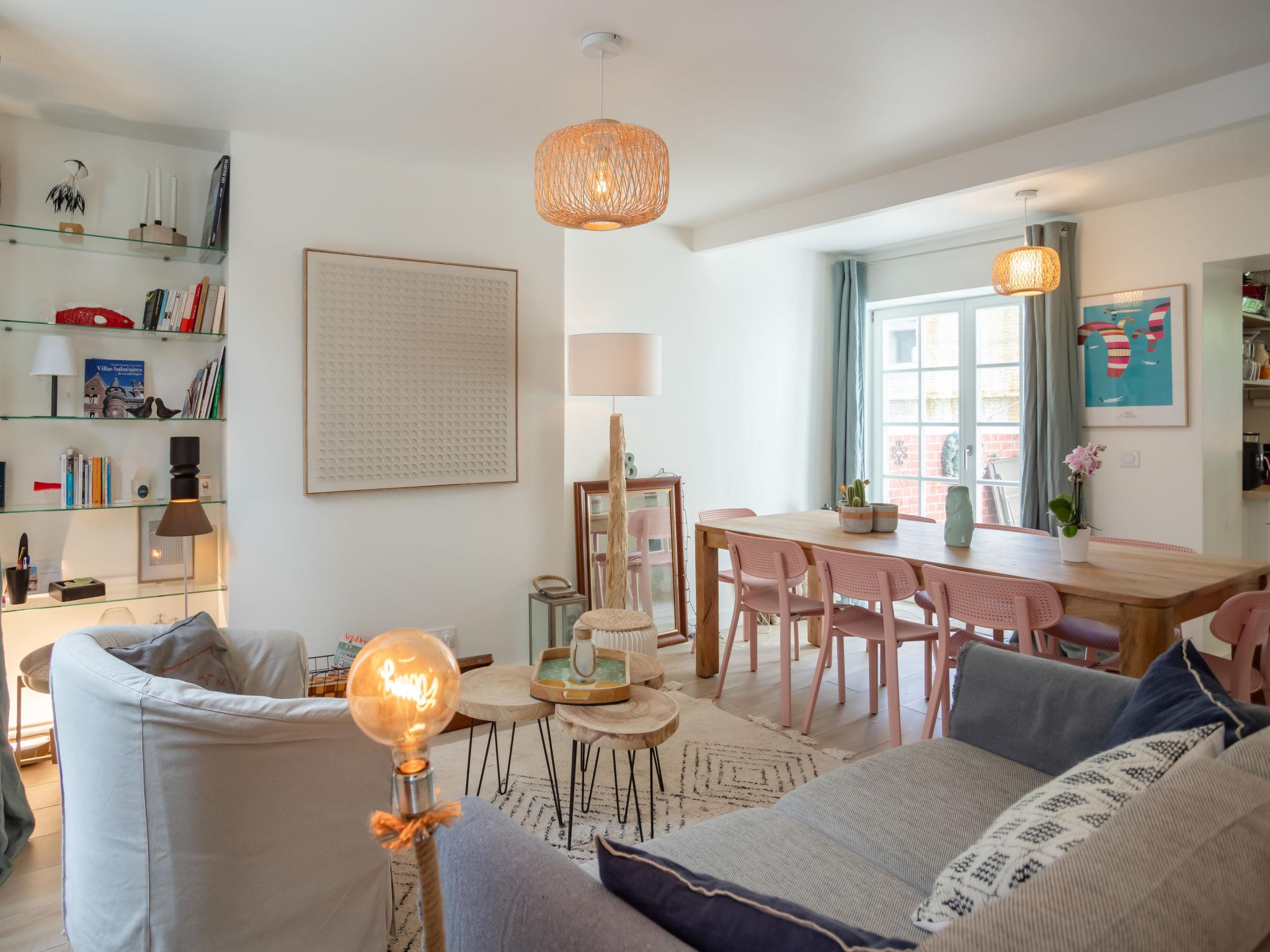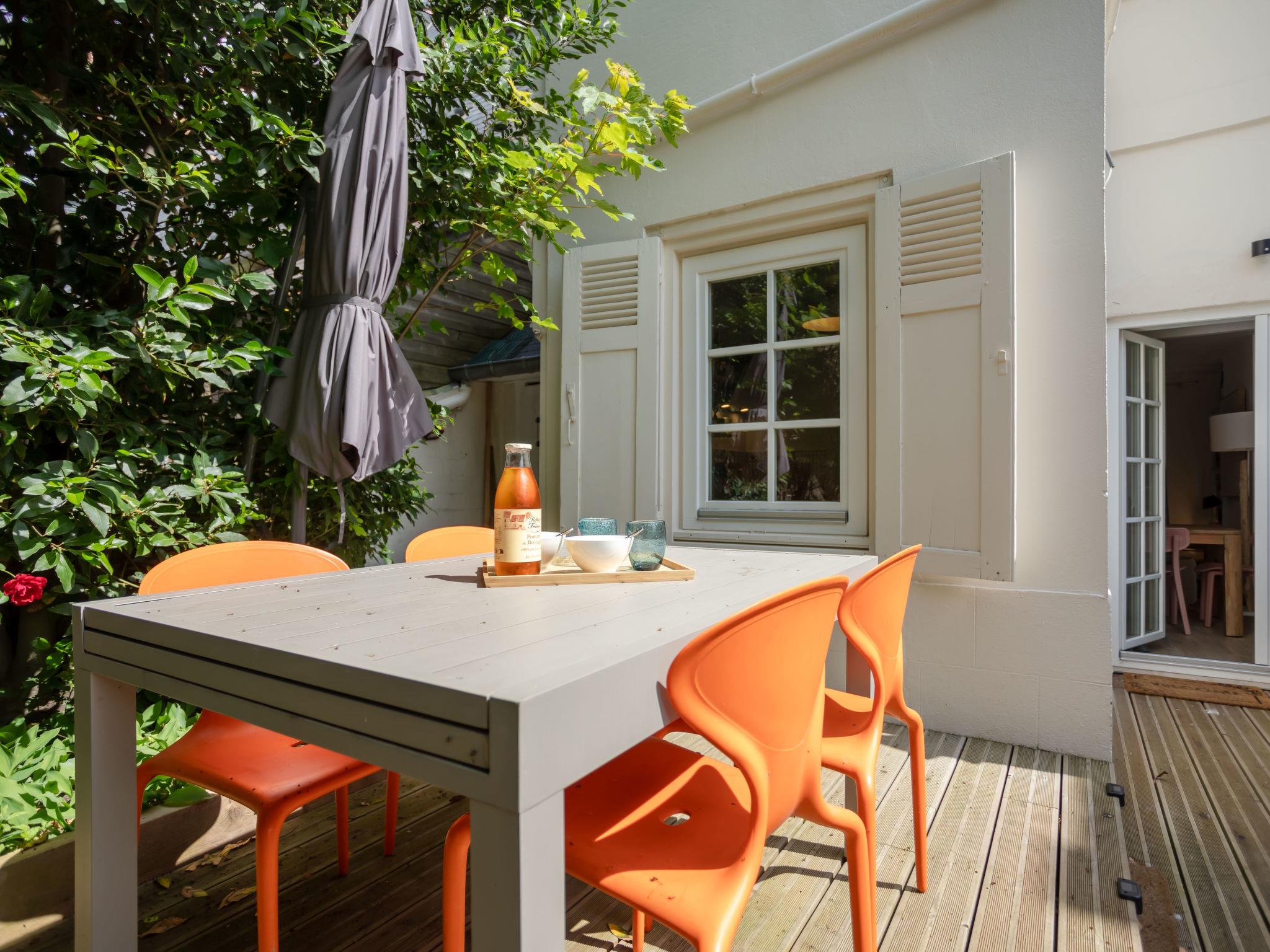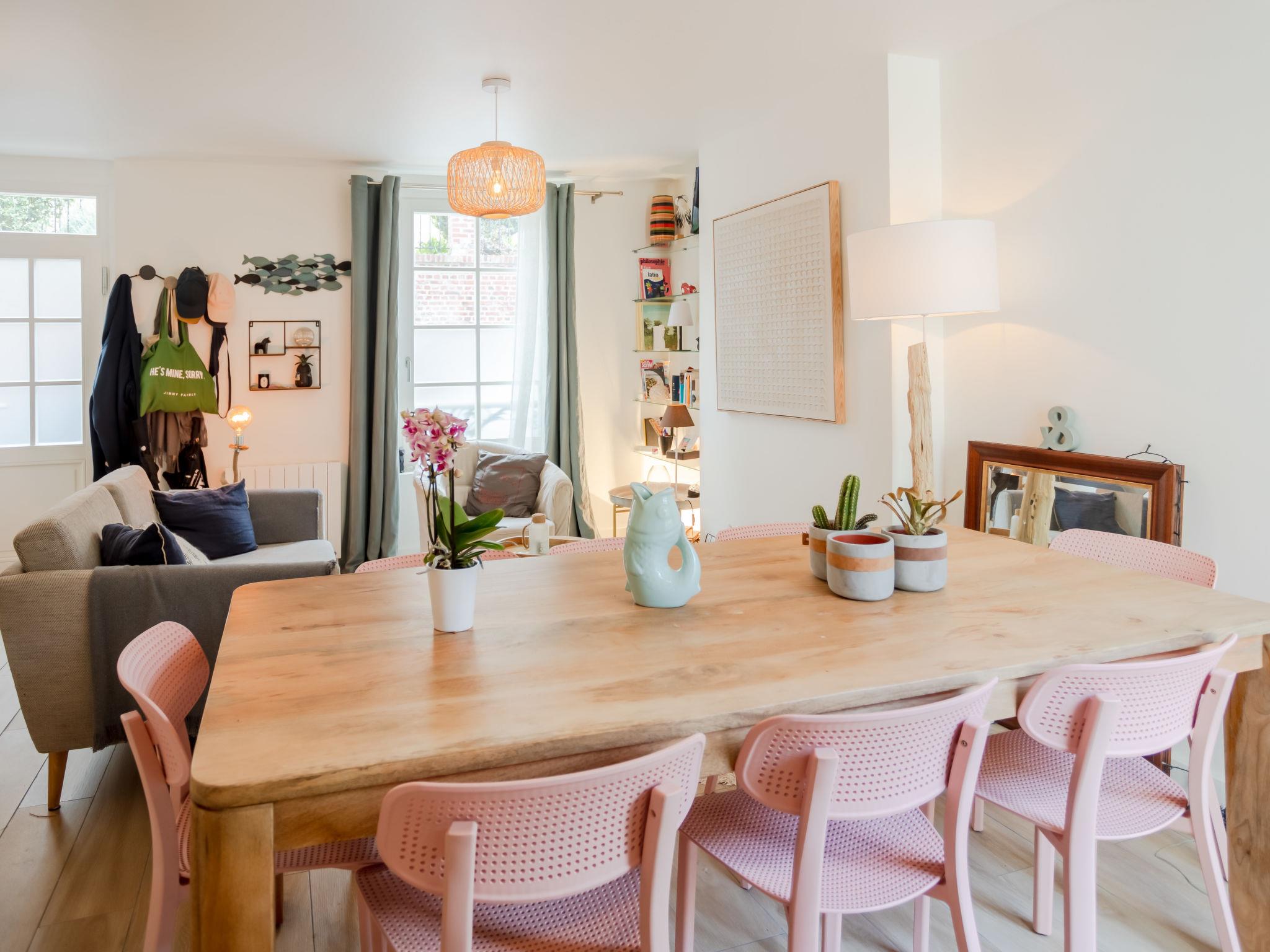 "La Trouvillaise", 3-room terraced house 60 m2 on 2 levels, south-east facing position. Fully renovated in 2022: living/dining room. Exit to the terrace, south facing position and west facing position. Kitchen (oven, dishwasher, 2 ceramic glass hob hotplates, toaster, kettle, electric coffee machine). Sep. WC. Upper floor: 1 room with 1 french bed (1 x 140 cm, length 190 cm). 1 room with 1 french bed (1 x 140 cm, length 190 cm). Shower/WC. Electric heating. Large terrace 20 m2, south facing position and west facing position. Terrace furniture. Facilities: baby cot (extra). Internet (WiFi, extra). Please note: apartment courtyard side. Non-smokers only, no parking. 1 small pet/ dog allowed. Smoke alarm. Offer by a private individual according to Art. 155, IV of CGI. 14715000104MS