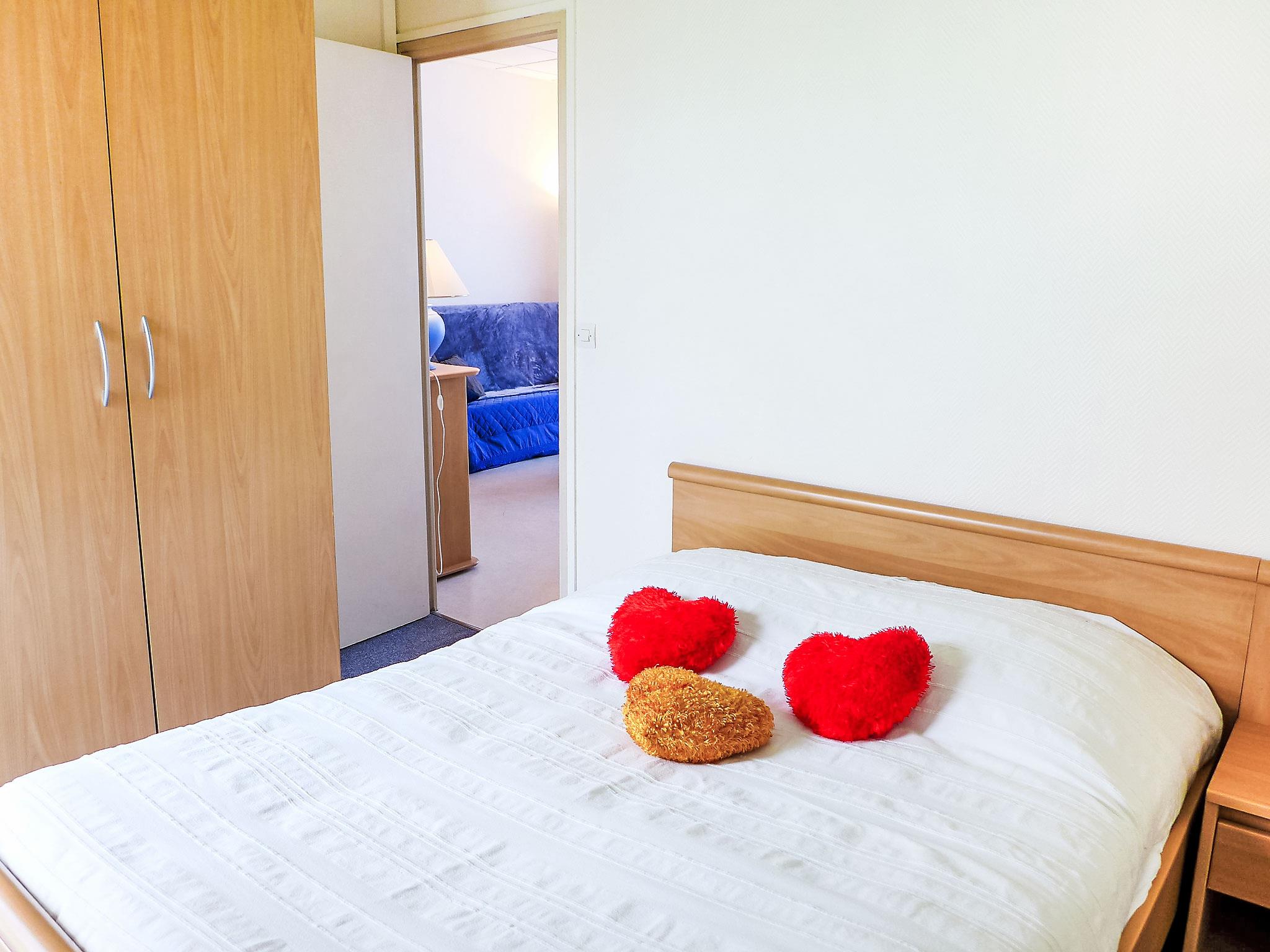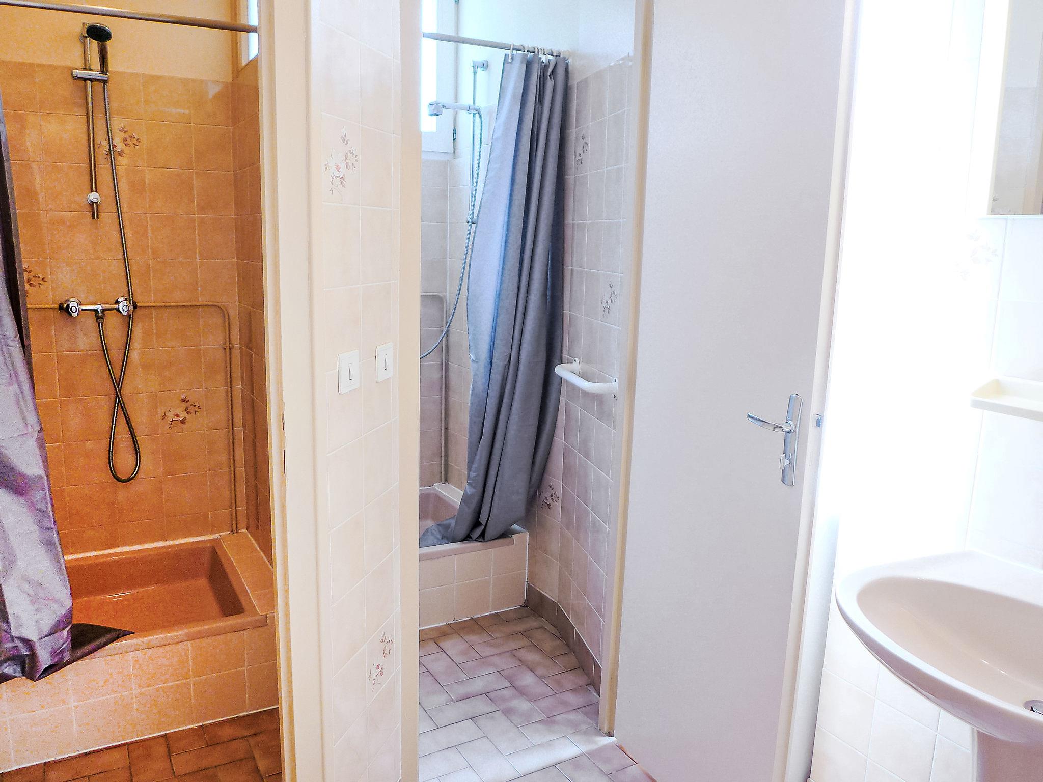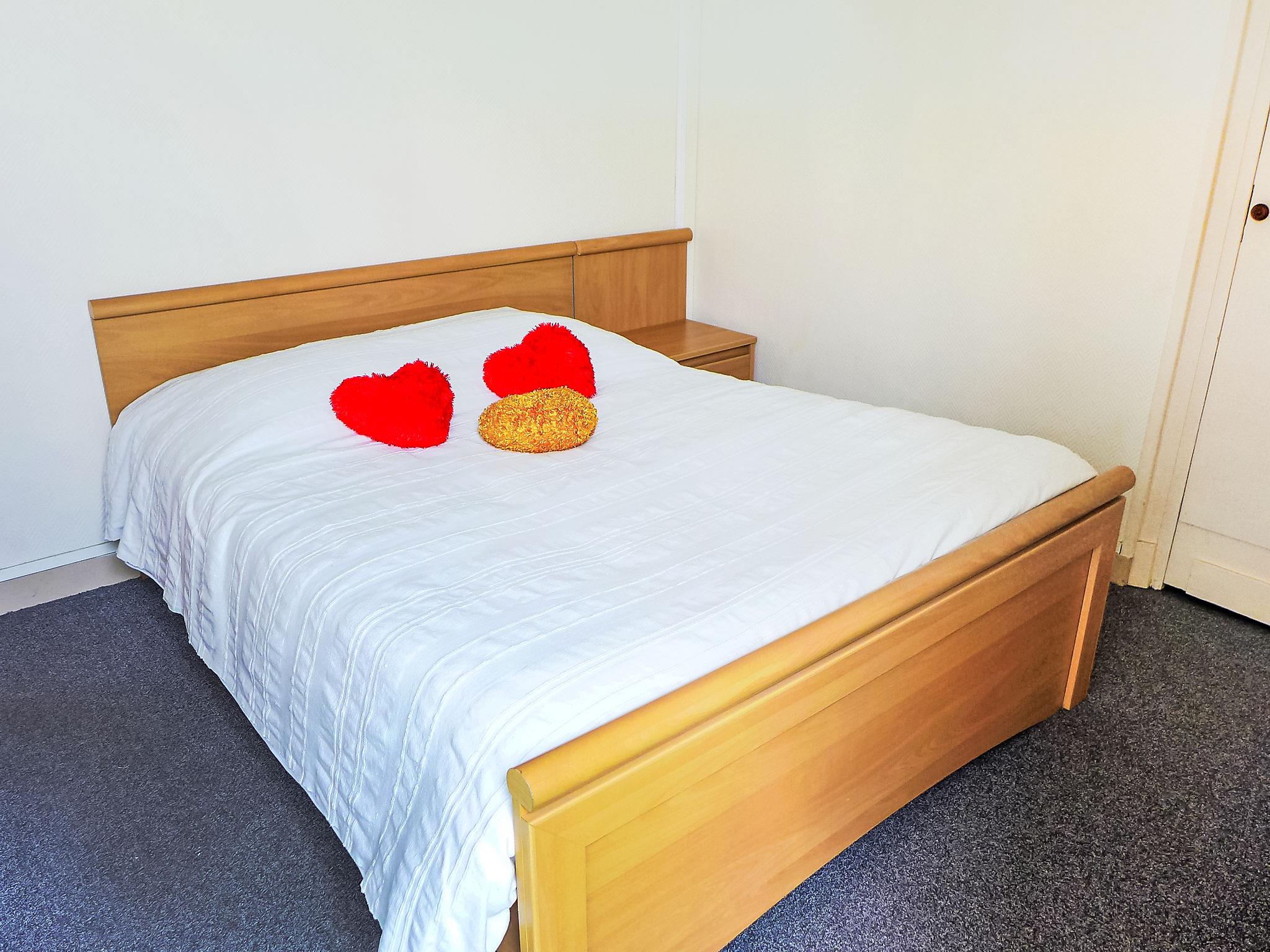 3-room apartment 57 m2, on the ground floor. Bright, simple and practical furnishings: living/dining room with 1 double sofabed (1 x 140 cm, length 190 cm), TV. 1 room with 2 beds (90 cm, length 190 cm). Exit to the garden. 1 room with 1 french bed (1 x 140 cm, length 190 cm). Exit to the veranda. Kitchenette (2 hot plates, oven, dishwasher, toaster, kettle, microwave, electric coffee machine). 2 showers, sep. WC. Electric heating. Terrace furniture. Facilities: washing machine, iron. Please note: non-smokers only. 1 small pet/ dog allowed. Smoke alarm. WIFI not possible.