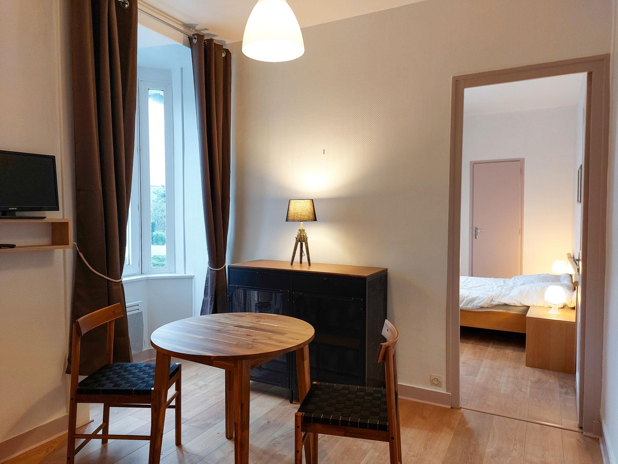 2-room apartment 25 m2 on 1st floor. Living/dining room with TV. 1 room with 1 french bed (1 x 140 cm, length 190 cm). Kitchenette (2 hot plates, mini-oven, toaster, kettle, microwave, electric coffee machine). Shower/WC. Electric heating. Facilities: iron. Parking. Please note: non-smokers only. Maximum 1 small pet/ dog allowed. Smoke alarm. WIFI not possible.