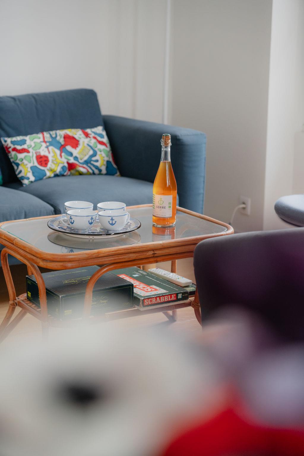 "La Floriette", 4-room house 90 m2, west facing position. Renovated in 2018, comfortable and tasteful furnishings: living/dining room with TV (flat screen). 1 room with 1 french bed (1 x 160 cm, length 200 cm), separate WC and shower. 1 room with 1 french bed (1 x 140 cm, length 190 cm). 1 room with 2 beds (90 cm, length 190 cm). Exit to the garden, to the terrace. Open kitchen (oven, dishwasher, 3 induction hot plates, toaster, kettle, microwave, freezer, electric coffee machine, Capsules for coffee machine (Nespresspo) extra). Shower, sep. WC. Gas heating. Terrace 15 m2, garden 200 m2, west facing position. Terrace furniture. Facilities: washing machine, children's high chair, baby cot for up to 2 year olds. Internet (WiFi, free). Please note: non-smokers only. Smoke alarm. Offer by a private individual according to Art. 155, IV of CGI.
