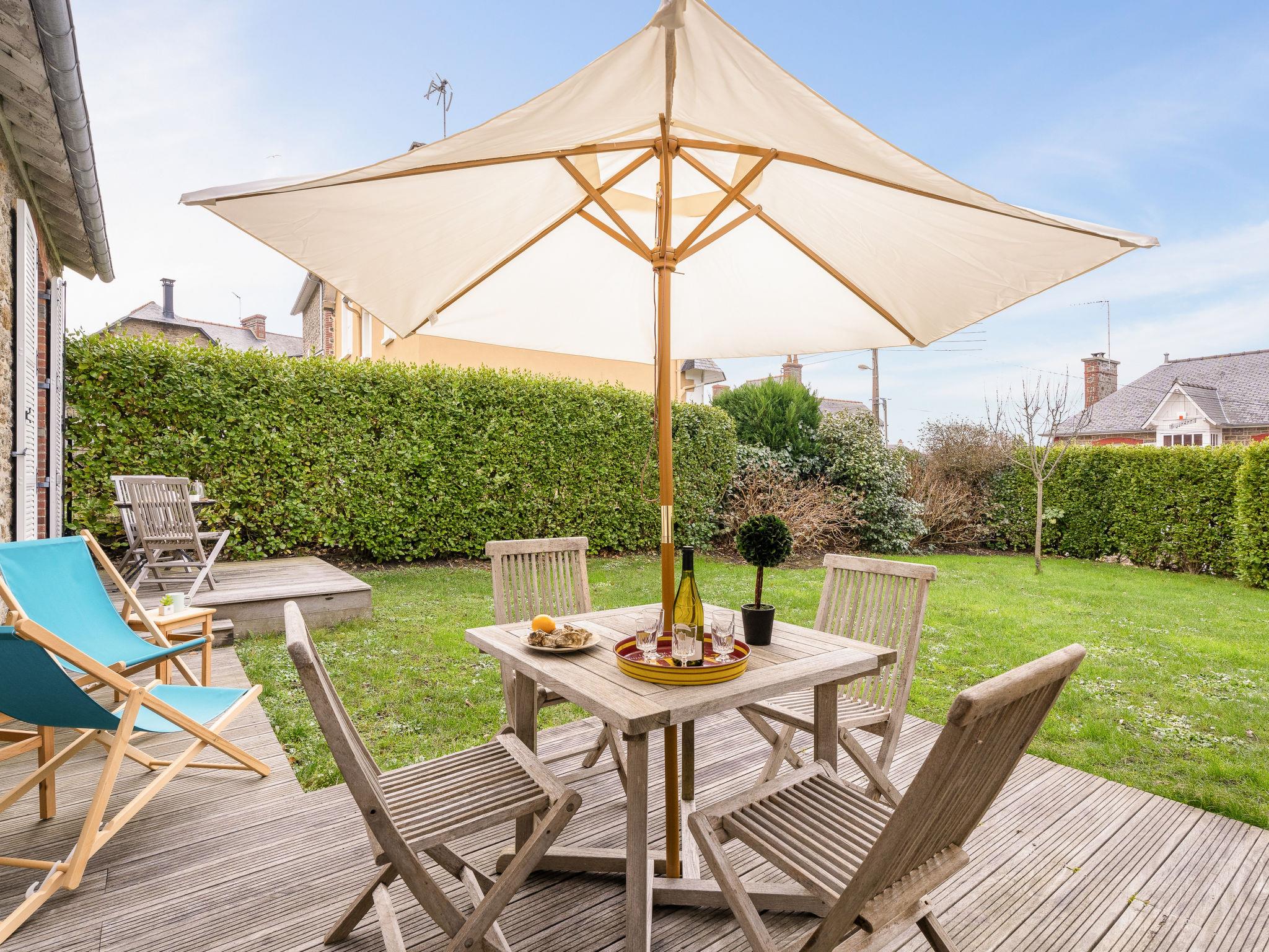 Single-family house "La Floriette". In the district of L'Eglise, 500 m from the sea, 500 m from the beach. Private: well-kept garden (fenced), public parking on the road. Shop 500 m, grocery, supermarket 700 m, shopping centre 2.7 km, restaurant 150 m, bakery 200 m, café 100 m, bicycle rental 700 m, bus stop "Eglise Notre Dame" 300 m, railway station "SNCF Saint Malo" 10 km, ferry "Gare Maritime du Naye" 12 km, sandy beach "Le Prieuré" 500 m, park "Port Breton" 1.3 km, outdoor swimming pool 900 m, thermal baths "Thalassa Dinard" 1.8 km. Sports harbour 800 m, golf course (18 hole) 6.5 km, sailing school 950 m, indoor tennis centre 1.2 km, minigolf 1.6 km, riding stable 1.2 km, sports centre 650 m, walking paths from the house, cycle lane 50 m. Nearby attractions: Marché de Dinard 750 m, Piscine d'eau de mer du Prieure 350 m, Saint Malo 12 km, Dinan 22 km, Cap Fréhel / Fort La latte 35 km, Le mont saint Michel 60 km. Hiking paths: Promenade du Clair de Lune 350 m. The keys‘ handover takes place by the agency Interhome in Dinard, 1 km.