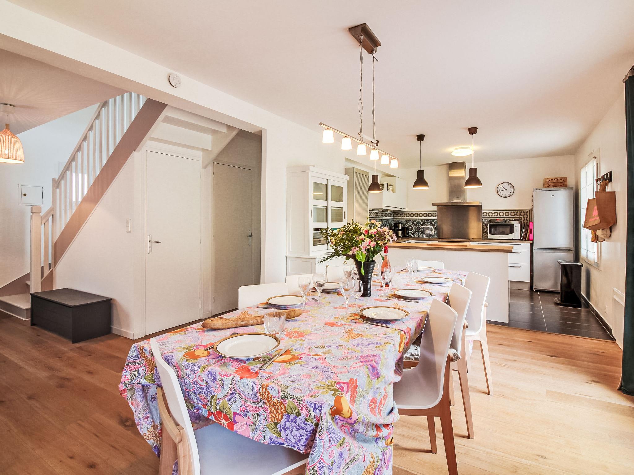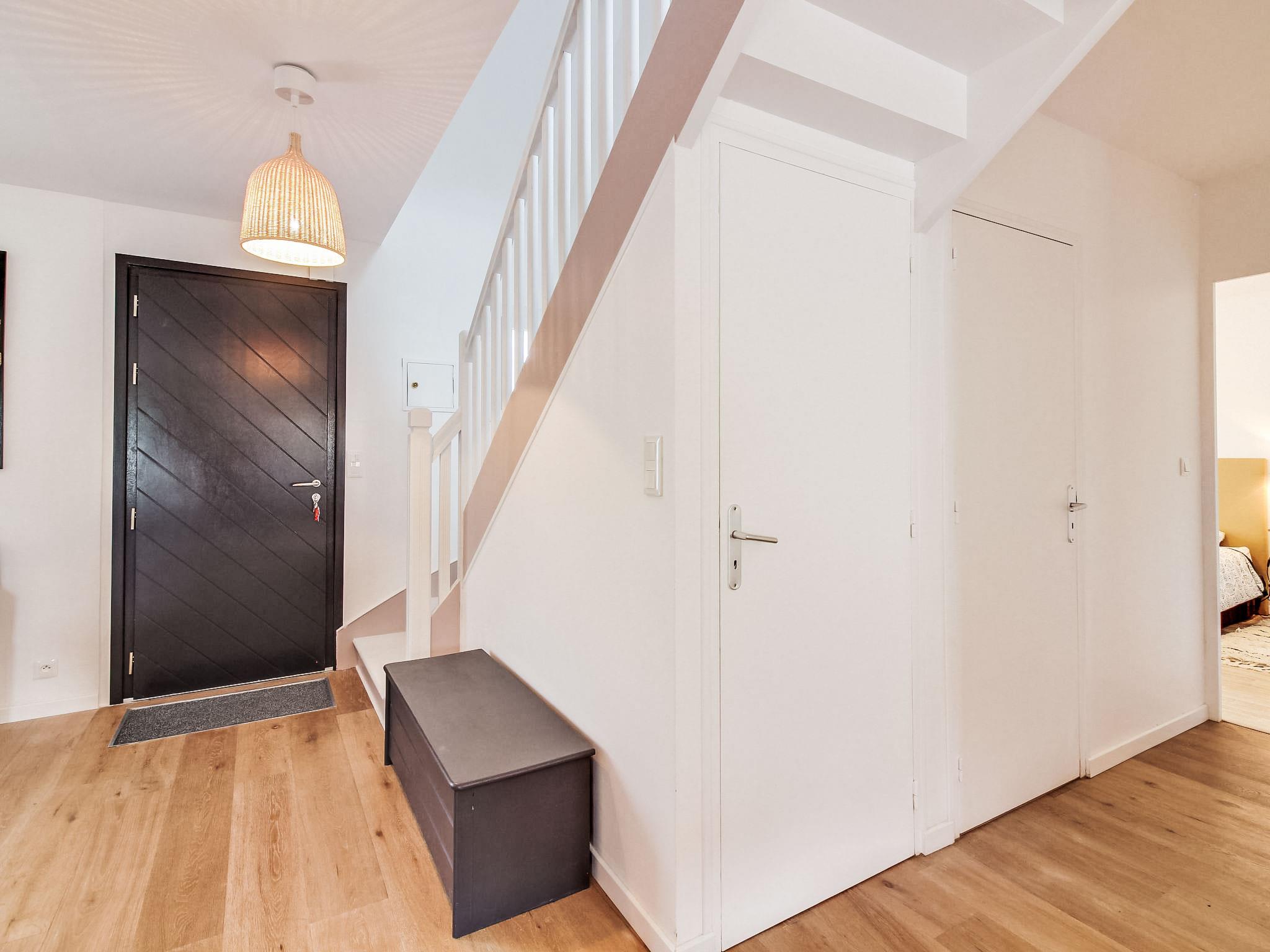 5-room house 115 m2 on 2 levels. Object suitable for 4 adults + 4 children. Practical and comfortable furnishings: large living/dining room with TV (flat screen), DVD. Exit to the garden, south facing position. 1 room with 1 french bed (1 x 160 cm, length 190 cm), shower/WC and double hand-basin. Large, open kitchen (oven, dishwasher, 3 induction hot plates, toaster, kettle, microwave, electric coffee machine). Exit to the garden. Sep. WC. Electric heating. Upper floor: 1 room with 1 french bed (1 x 140 cm, length 190 cm). 1 room with 1 bed (90 cm, length 190 cm). 1 room with 1 x 2 bunk beds (90 cm, length 190 cm), 1 pull-out bed. Bath/WC. Facilities: washing machine, dryer, hair dryer. Internet (WiFi). Please note: suitable for families. Non-smoking house. Smoke alarm.