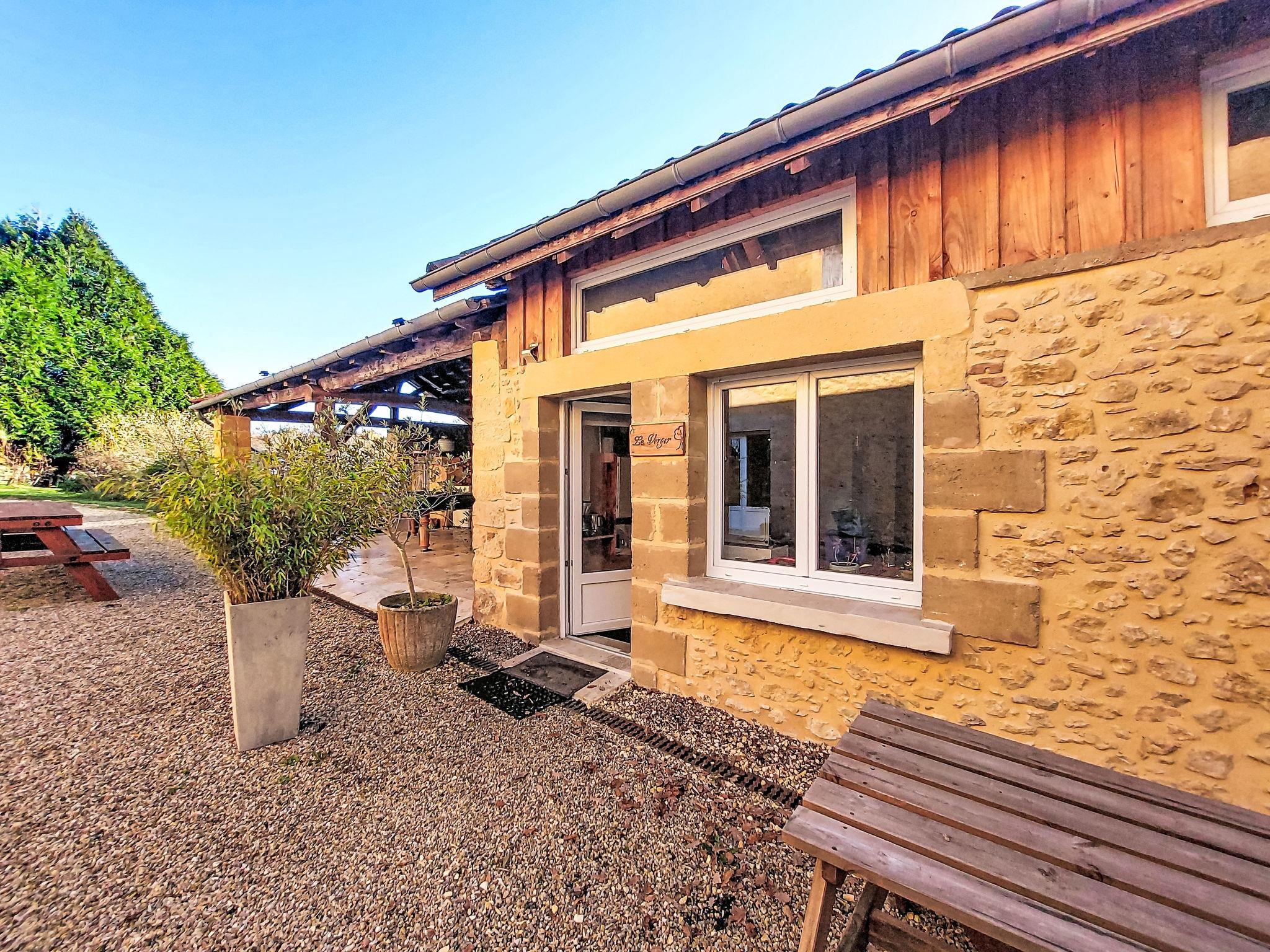 Holiday development "Le Domaine d'Empié", surrounded by trees and meadows. Outside the resort, in a quiet position, in a cul-de-sac. For shared use: property 3 ha, swimming pool (8 x 4 m, seasonal availability: 01.Jun. - 30.Sep.). Boccia, badminton, terrace, garden furniture, barbecue (swing). In the house: billiard table, washing machine (extra) (for shared use). Linen change weekly. Towel change weekly. Parking on the premises. Grocery 9.3 km, supermarket 10 m, restaurant 5.4 km, bakery 9.5 km, bus stop 18 km, railway station "Belves" 9.2 km, shingle beach "Du Céou" 14 km, thermal baths 28 km. Golf course (18 hole) 10 km, sailing school 41 km, tennis 14 km, riding stable 25 km. Nearby attractions: Sarlat 28 km, Lascaux II 37 km, Domme 14 km, Beynac-et-Cazenac 13 km, La Roque-Gageac 13 km, Bergerac 62 km. Please note: car recommended. Baby equipment on request. The owner lives on the same property. The owner has a dog.