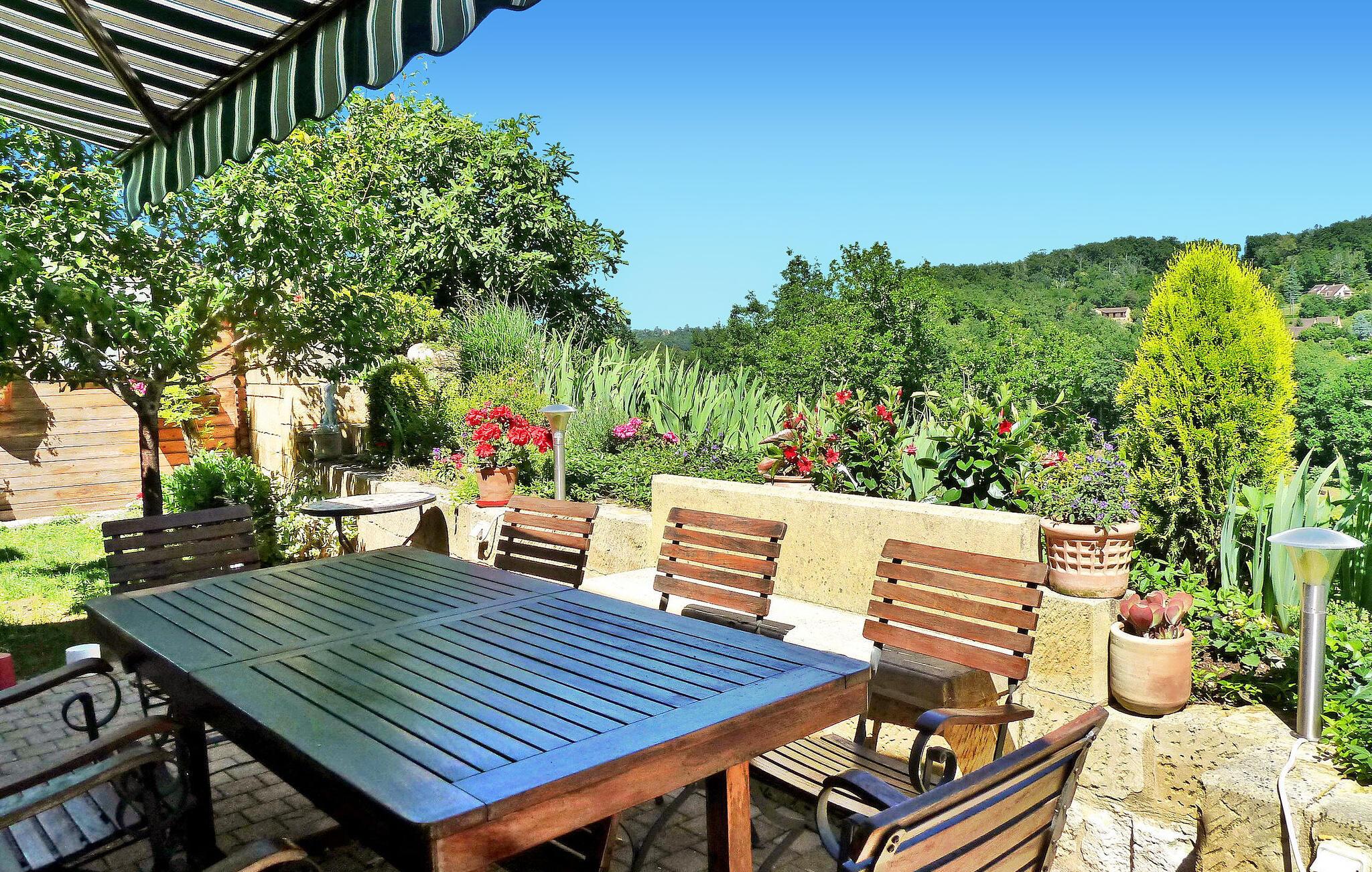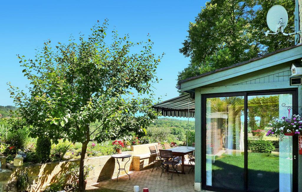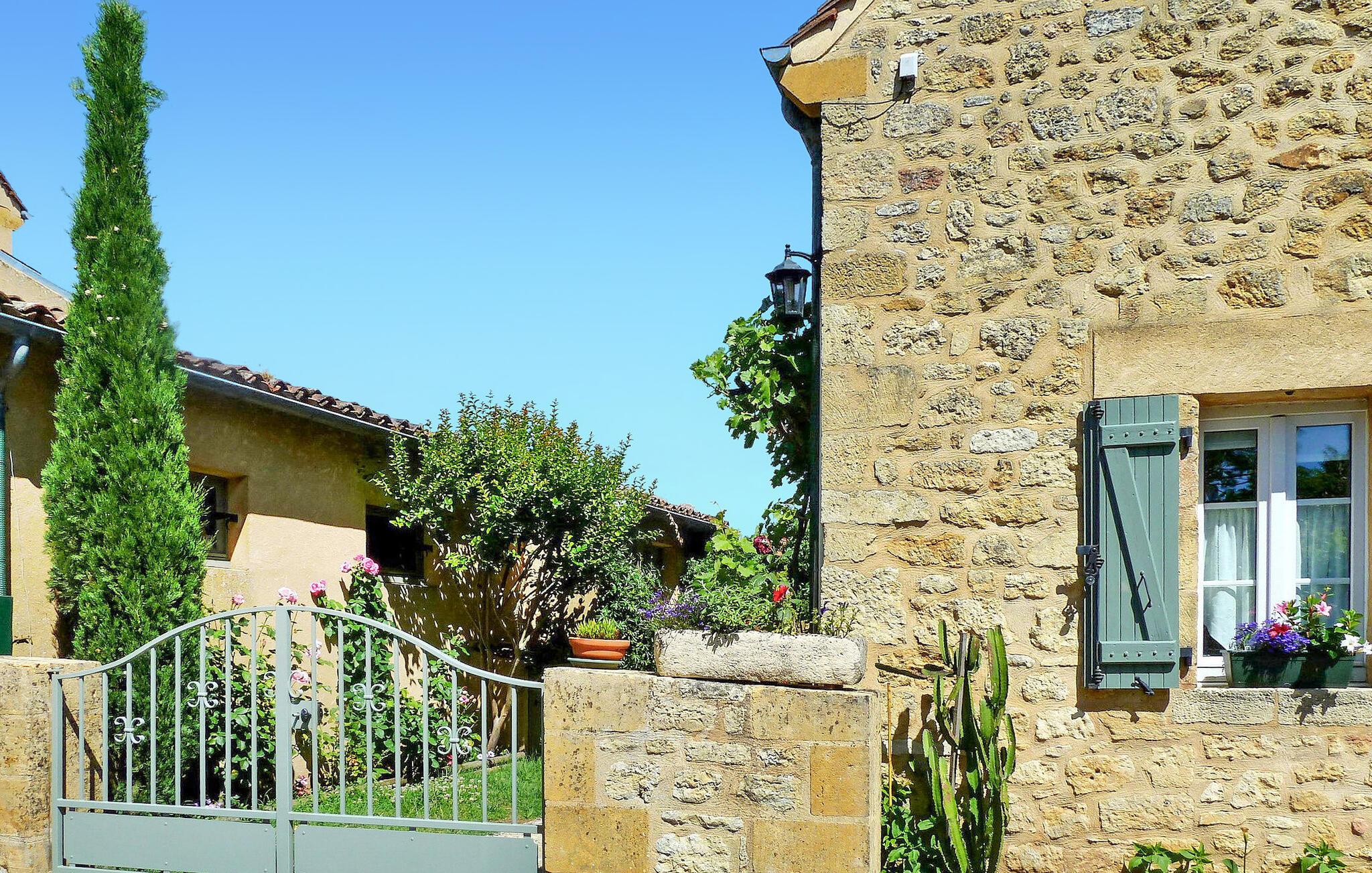 Dette stenhus ligger i Domme, en middelalderby lige uden for det livlige turistcentrum. Huset har aircondition og en terrasse med en fantastisk udsigt, og den nærliggende Dordogne-flod er perfekt til kanosejlads og svømning. Ejendommens stueetage omfatter et veludstyret køkken og indbydende stue/spisestue med hjørnepejs, et komfortabelt opholdsområde med fladskærms-tv og et soveværelse med eget badeværelse. Karnapper fører til den udendørs terrasse, der byder på fængslende udsigter. På første sal er de resterende soveværelser. Udenfor byder ejendommen på en charmerende have prydet med træer, blomster og en velplejet græsplæne sammen med liggestole til afslapning. Den brolagte terrasse har udendørs møbler og panoramaudsigt. Huset ligger i middelalderbyen Domme, ikke langt fra landsbyens centrum. Butikker, butikker og restauranter ligger i gåafstand. Domme: Royal Bastide fra det 13. århundrede med den mest berømte udsigt over Périgord, med udsigt over Dordogne-flodens dal. Dordogne-floden med dens kanoer ligger cirka 3/4 km væk. Bemærk venligst, parkering er tilgængelig på gaden, men ikke inde i ejendommen. Alle soveværelser og stuen har aircondition for ekstra komfort.