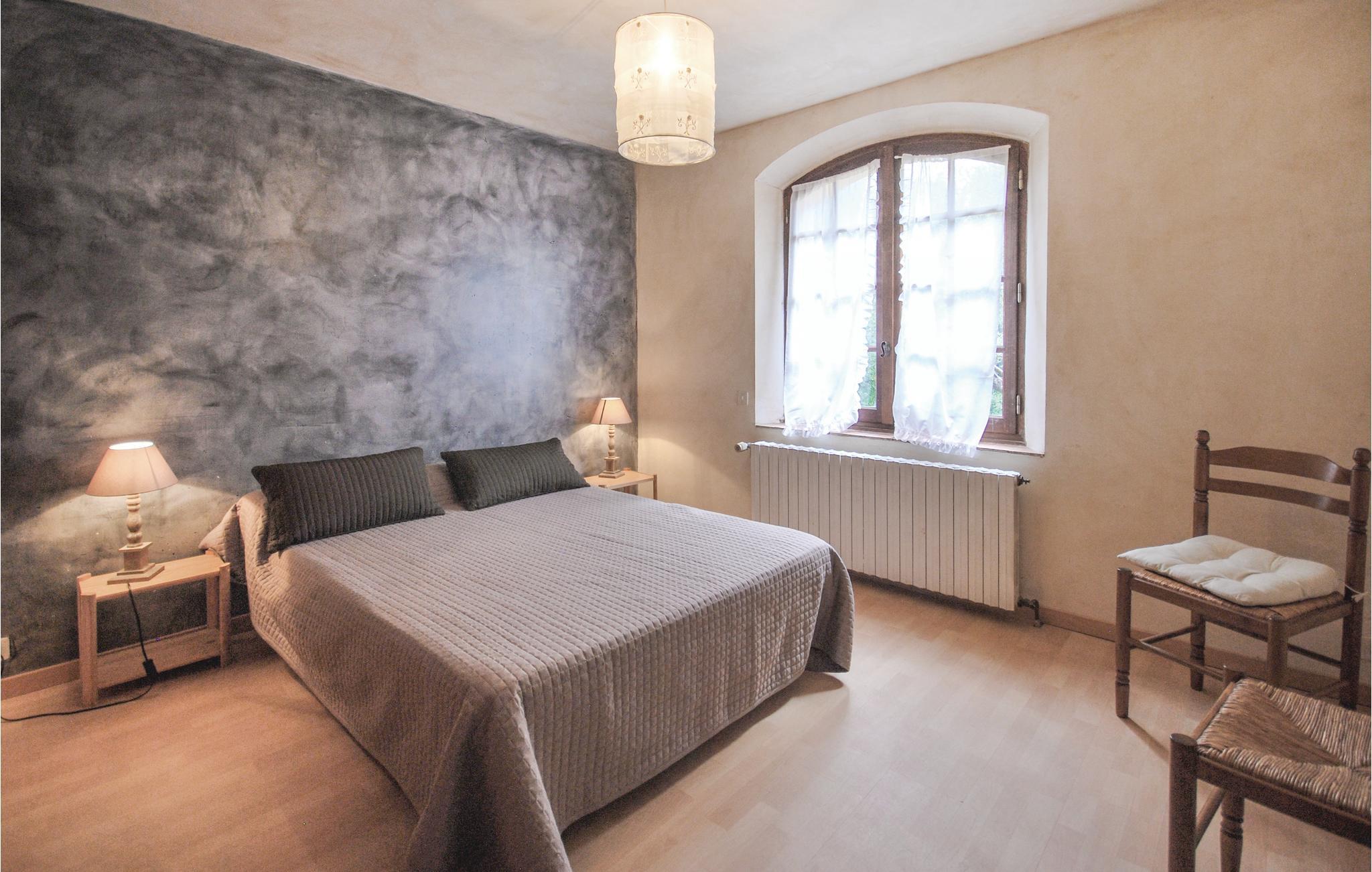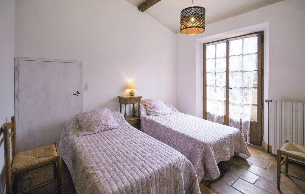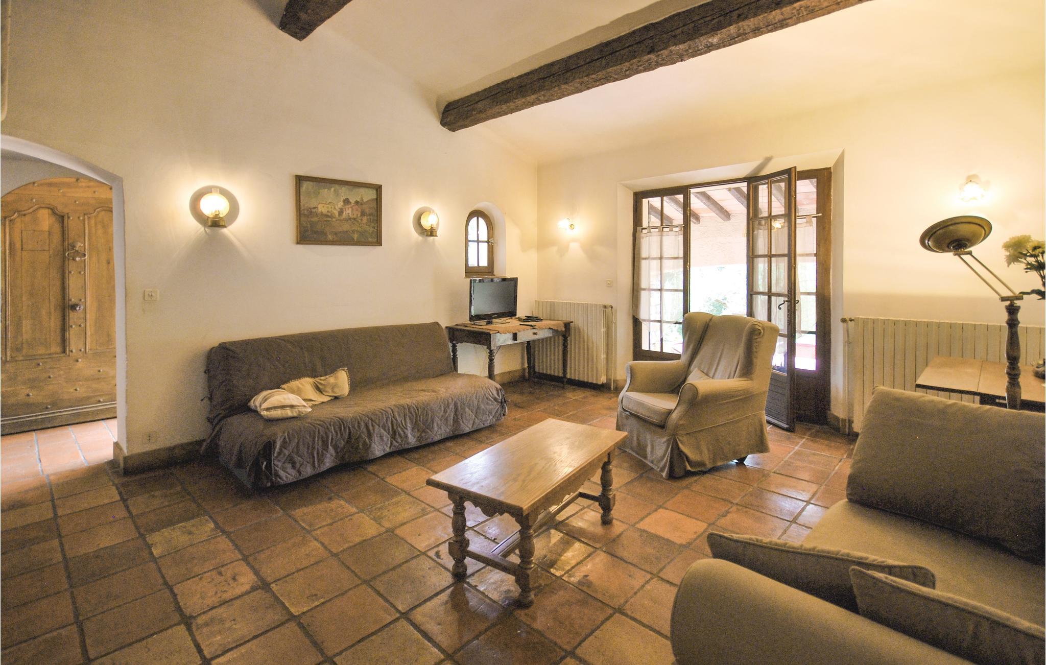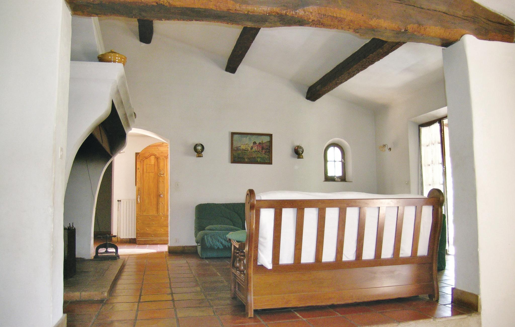 Dette stenhus ligger på en terrasseformet anlagt grund omgivet af træer. Stuen med sin store kamin byder på en enestående atmosfære, som man kun finder i denne bygning. Det 3. soverum i øverste etage råder over eget bad og en lille terrasse, hvor I kan sole jer. Stuen og spisestuen har direkte udgang til en overdækket terrasse, hvorfra I kan nyde den herlige udsigt til cikadernes sang. Her er I på landet i fred og ro og alligevel ikke langt fra byen og dens tilbud.