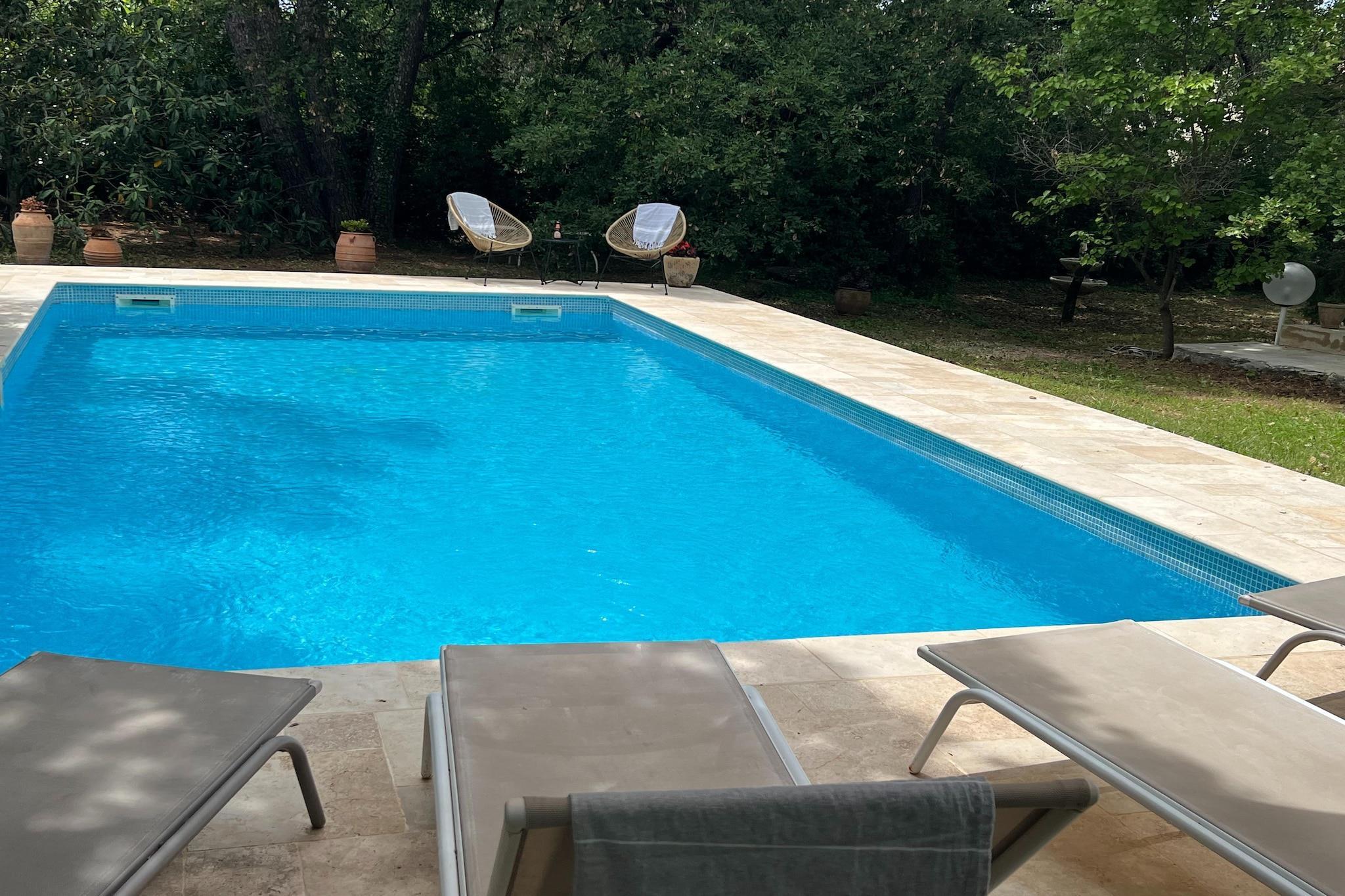 Dette traditionelle en-etagers familiehus i Draguignan byder på en varm og indbydende atmosfære med smagfuld indretning og klassiske klinkegulve. Beliggende i en rummelig, fuldt indhegnet have fyldt med skyggefulde hjørner, er det det perfekte tilflugtssted til afslapning og udendørsliv. Den store have sikrer privatliv og sikkerhed, hvilket gør den ideel for familier og kæledyrsejere - op til to hunde er velkomne her. Køkkenet er udstyret med komfur med to kogeplader og køleskab, og det åbner direkte ud til en terrasse, der giver nem adgang til alfresco-måltider. Der er tre komfortable soveværelser med dobbeltsenge, hver udstyret med en ventilator for at holde dig kølig på varmere dage. I nærheden finder du et lille brusebad samt et stort badeværelse, der byder på bekvemmelighed for familielivet. Udenfor giver flere terrasser med havemøbler flere steder at slappe af og nyde de fredelige omgivelser. Højdepunktet er den store swimmingpool, omgivet af liggestole, der inviterer dig til at slappe af og nyde solen. Uanset om du slapper af ved poolen, spiser på terrassen eller nyder den frodige have, er dette hjem designet til at tilbyde et behageligt og fredfyldt ophold i hjertet af Provence.