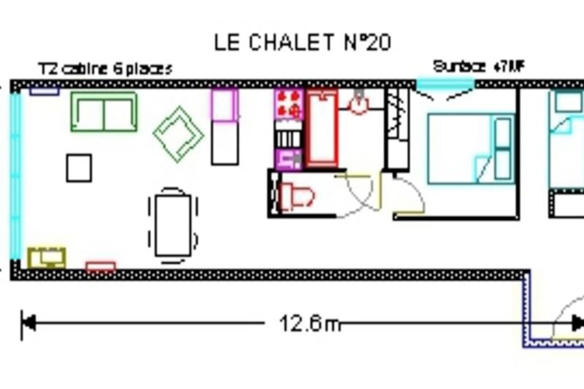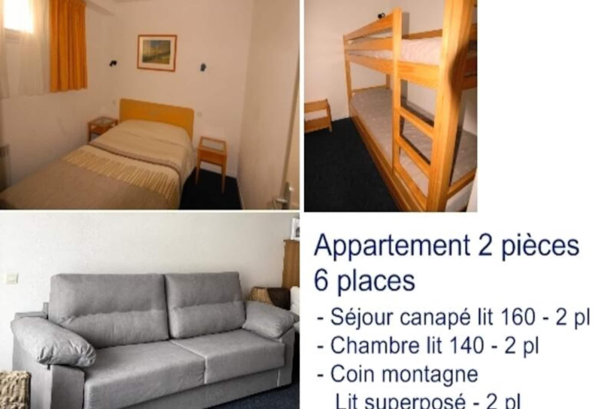 Residence "Le Chalet" – Komfort og afslapning i hjertet af skisportsstedet Beliggende på 12 Route du Col d'Aubisque (nummer 14 på skisportsstedets kort) har residensen en central beliggenhed, kun 150 meter fra butikker og pisterne. Den tilbyder kvalitetsfaciliteter til et afslappende ophold: en opvarmet indendørs pool med spabad, sauna, fitnesscenter, Wi-Fi-adgang og et privat skiskab med støvletørrer. Til dine måltider kan du nyde dine måltider i restauranten på stedet, Le Schuss. Residens LE CHALET med swimmingpool, 2-værelses lejlighed til 6 personer, 3. sal, udsigt til pisten, 47 m², sydvestvendt, opvarmet skiskab, elektrisk opvarmning. Entré med en sovealkove med 2 køjesenge. Badeværelse med håndvask, badekar, hårtørrer og separat toilet. Stue med en dobbelt sovesofa og TV. Køkken: 4-brænder keramisk kogeplade, ovn, køleskab, opvaskemaskine, mikrobølgeovn, filterkaffemaskine, brødrister, foodprocessor. Soveværelse med dobbeltseng (140 cm). IKKE-RYGER. Sengelinned medfølger. Gratis WIFI. Sportsfaciliteterne (swimmingpool, spabad, sauna og fitnesscenter) er åbne om vinteren fra juleferien indtil resortet lukker, og om sommeren fra 1. juli til 15. september. Tillægsgebyrer gælder: turistskat. Kæledyr er velkomne mod et gebyr. Valgfrie tjenester: måltidsplaner (morgenmad, aftensmad, halvpension), håndklæder, daglig og slutrengøring, tidlig indtjekning. Vaskeriservice tilgængelig i receptionen mod et gebyr. Vintertilbud: Rabatter for alle vores gæster på leje af skiudstyr (SKILOC), og på skilifter (SKIPASS) med det særlige SKIPLUS-tilbud, der kombinerer begge tjenester. Depositum (i euro) - 250 Opvarmning - 1
