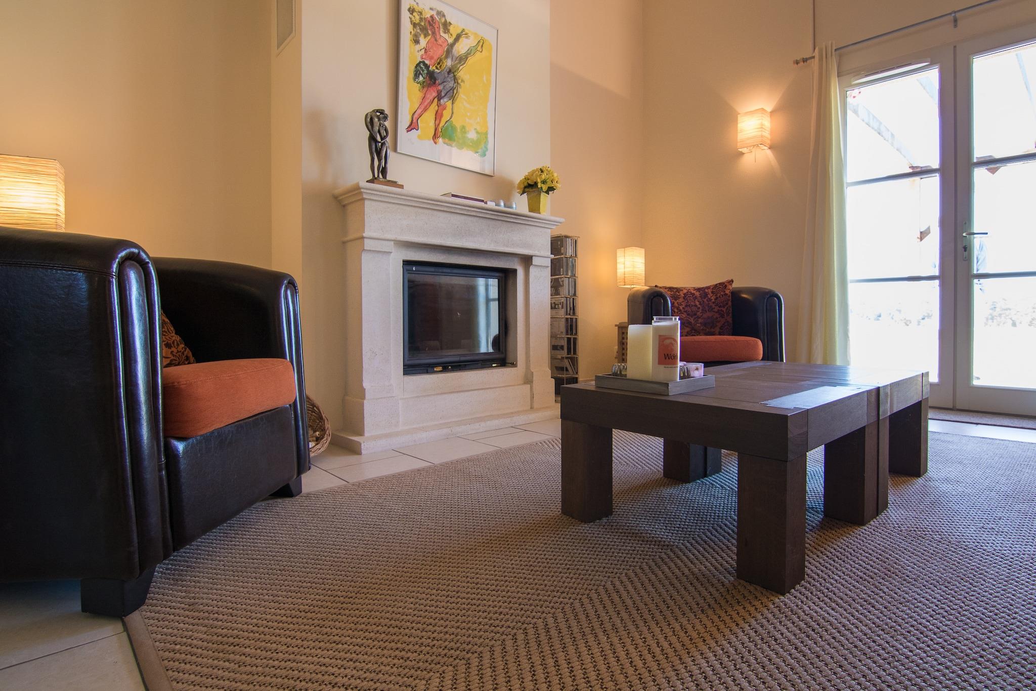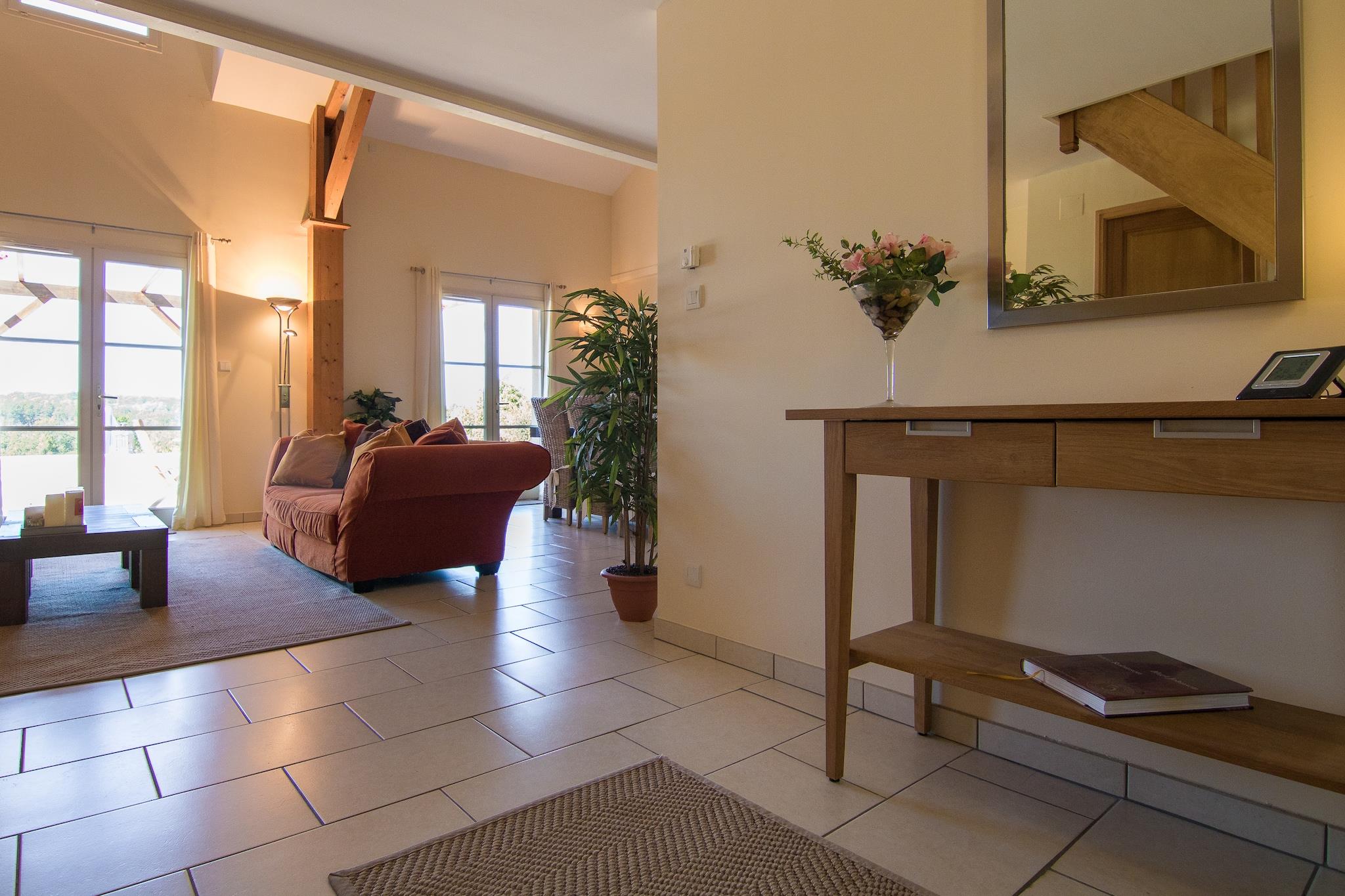 Denne luksus villa er fuldt udstyret og meget rummelig. Forestil dig: Efter morgenmaden går du i et par minutter til det smukke kursus. De 18 huller er beliggende i det kuperede område af buske, søer og enge. Den afslappede atmosfære kan også findes i klubhuset, hvor du kan nyde den højt anerkendte restaurant, der drives af et lidenskabeligt hollandsk par.