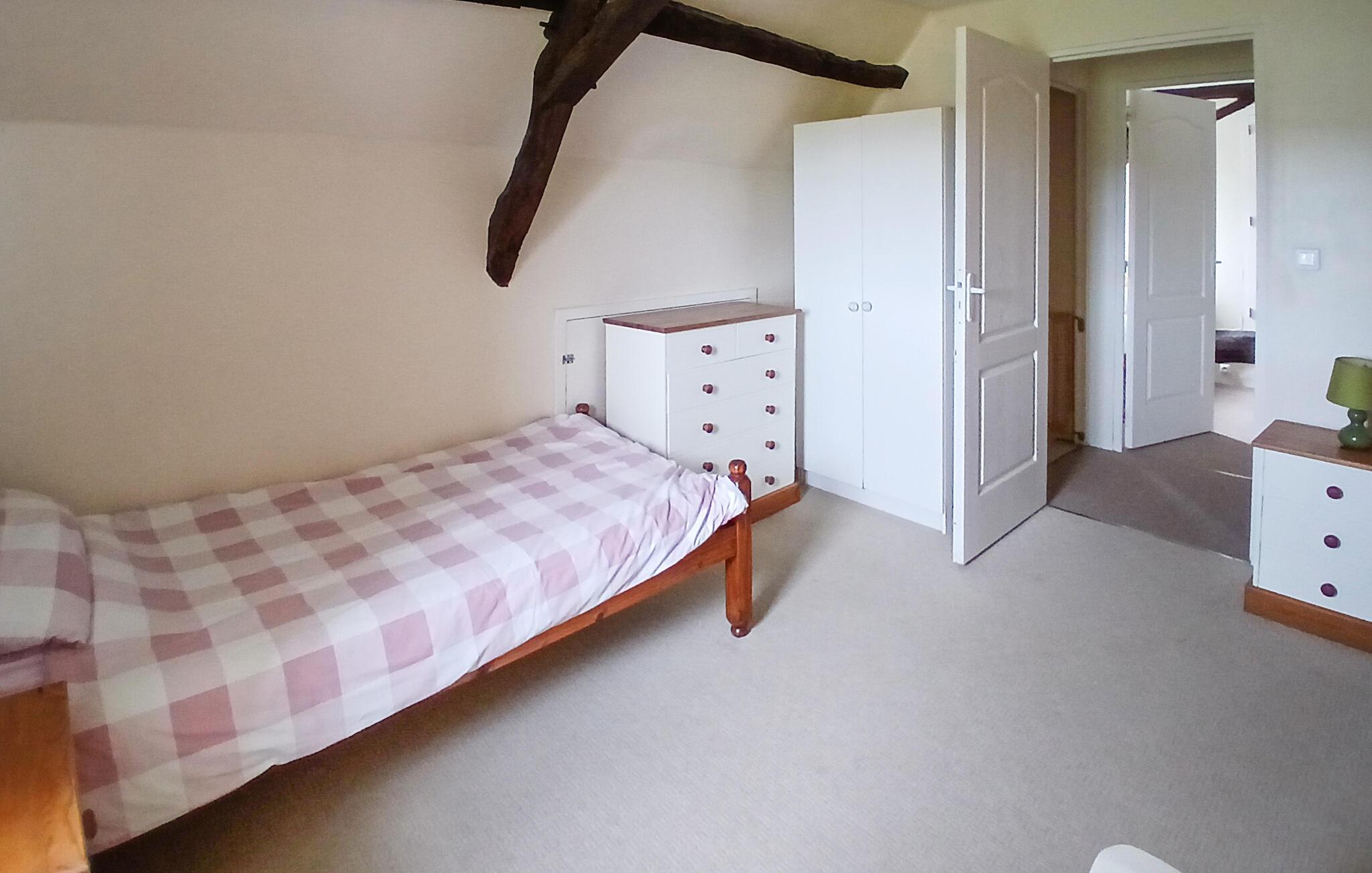 Glæd jer til jeres næste ferie i dette traditionelle feriehus i Frankrig. Beliggende i et malerisk landskab tilbyder dette tidligere bondehus en behagelig pause fra en hektisk hverdag. Nyd den fredelige atmosfære, og udforsk regionens skove og marker. Indenfor møder I en rustik og komfortabel indretning. Opholdsstuen indbyder til afslapning med sine hyggelige sofaer og den store brændeovn. Varme farvetoner og kærlige detaljer skaber en behagelig stemning. I det rummelige køkken med moderne udstyr kan I tilberede fælles måltider og nyde dem ved det store spisebord.